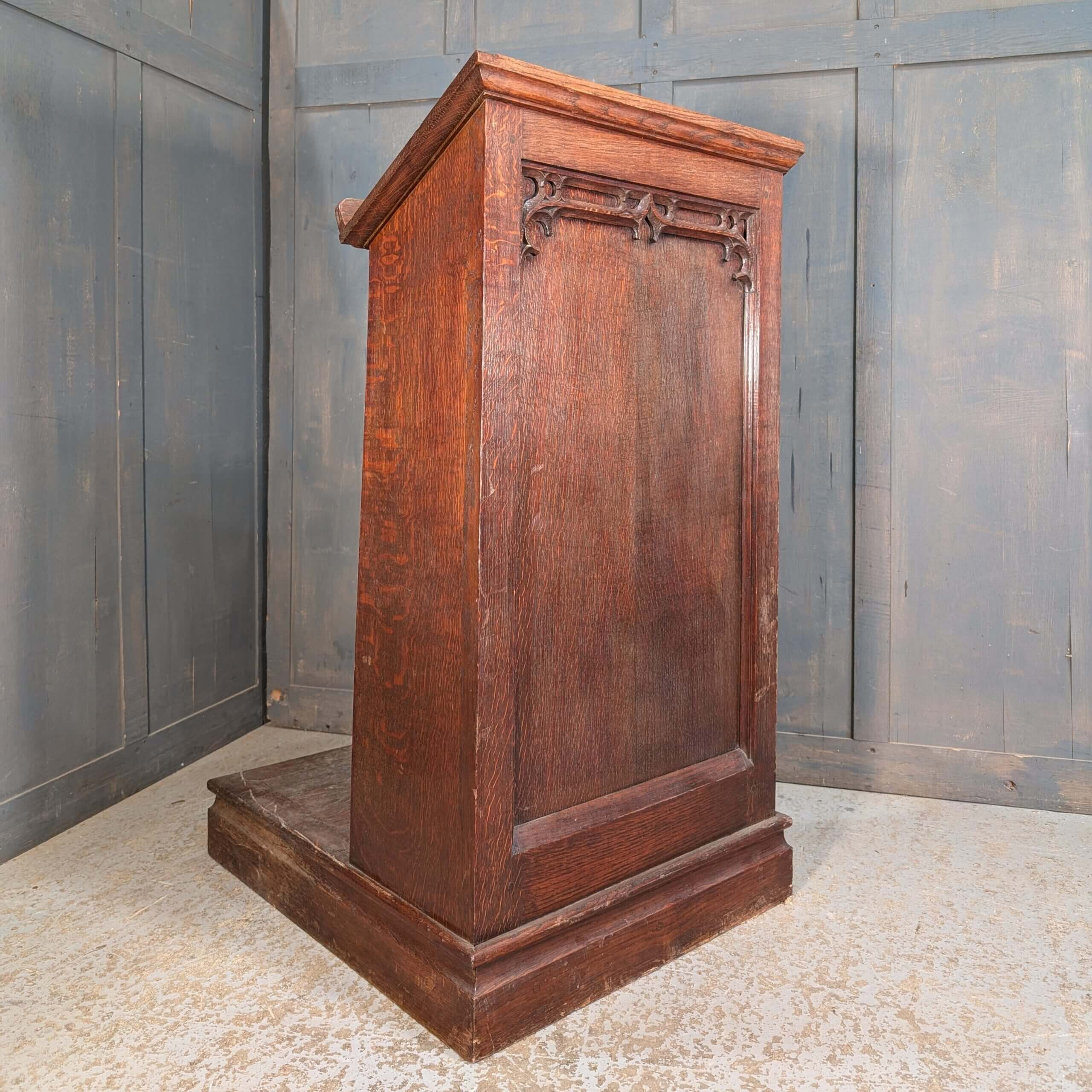 Our product shown on this page Simple Gothic Oak Ambo Lectern Reading Desk from Ashford with Platform (SOLD) is currently available for hire.