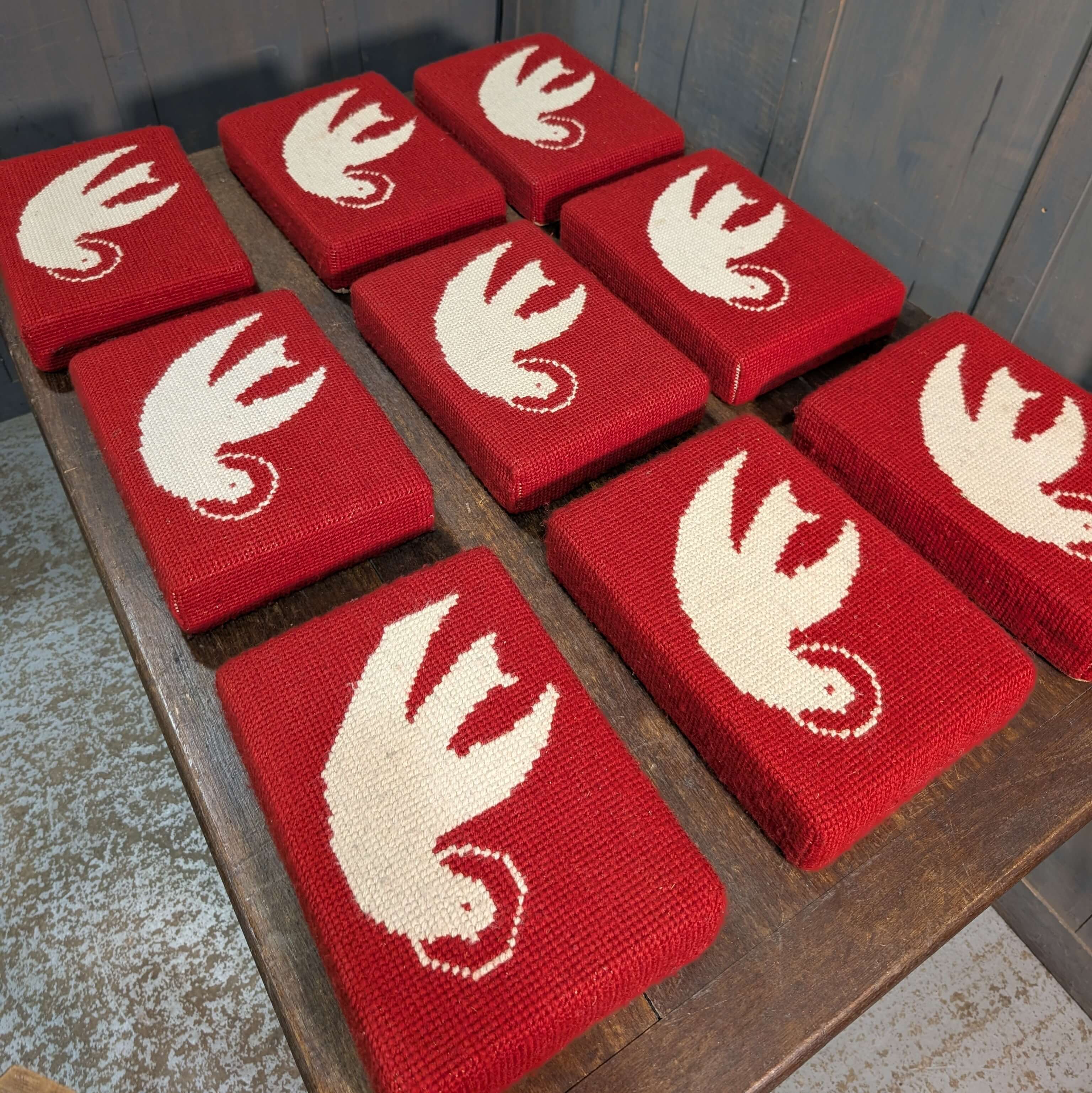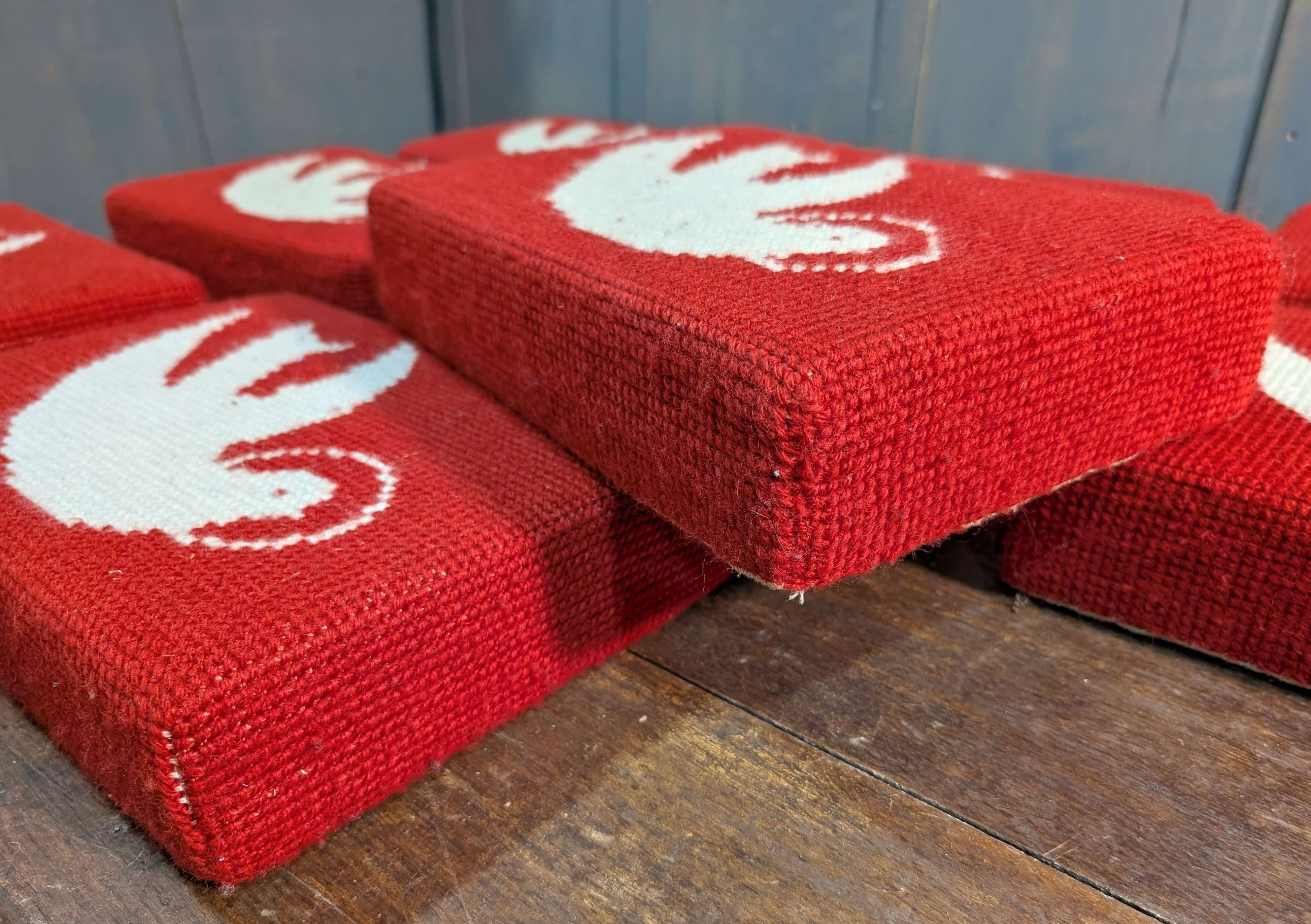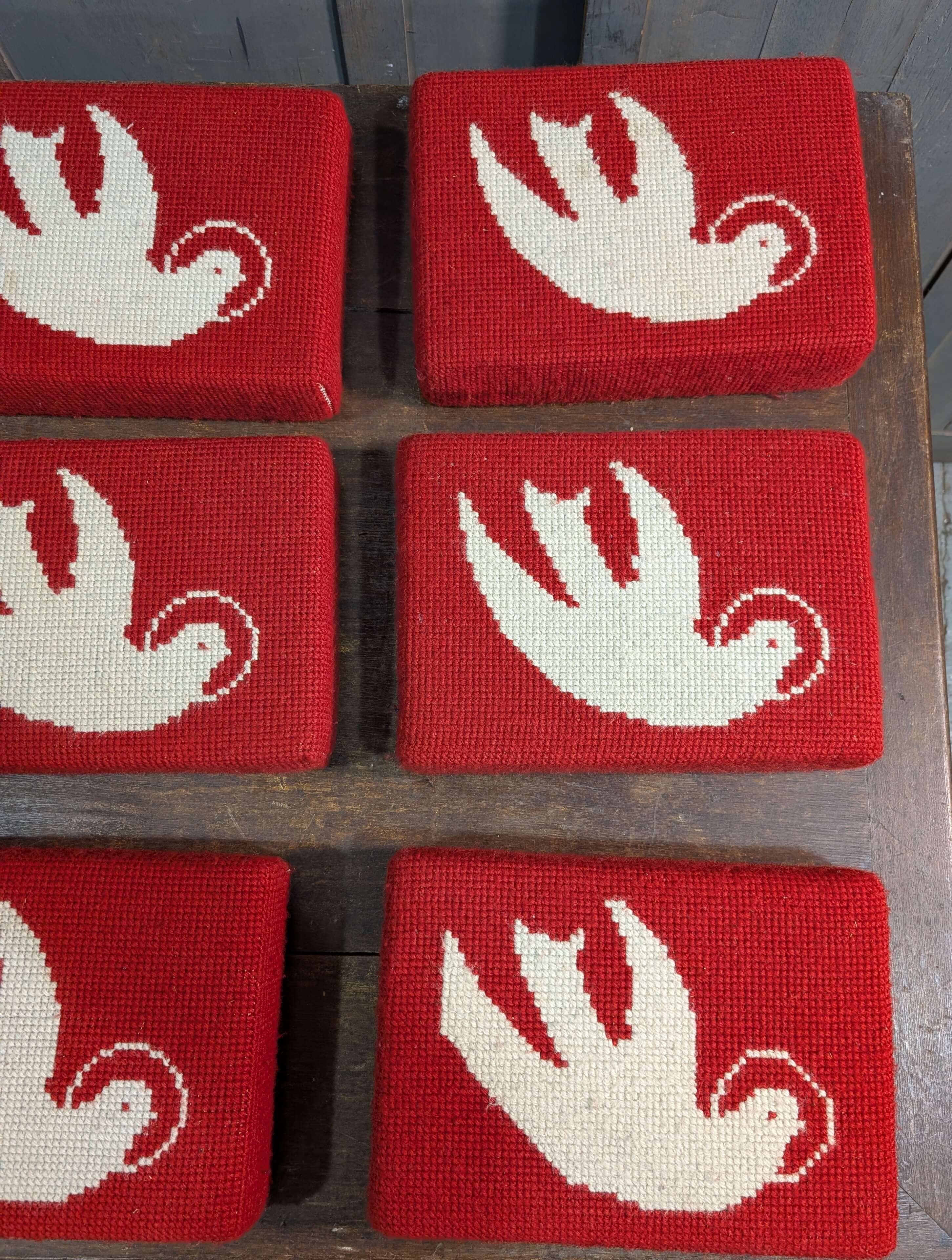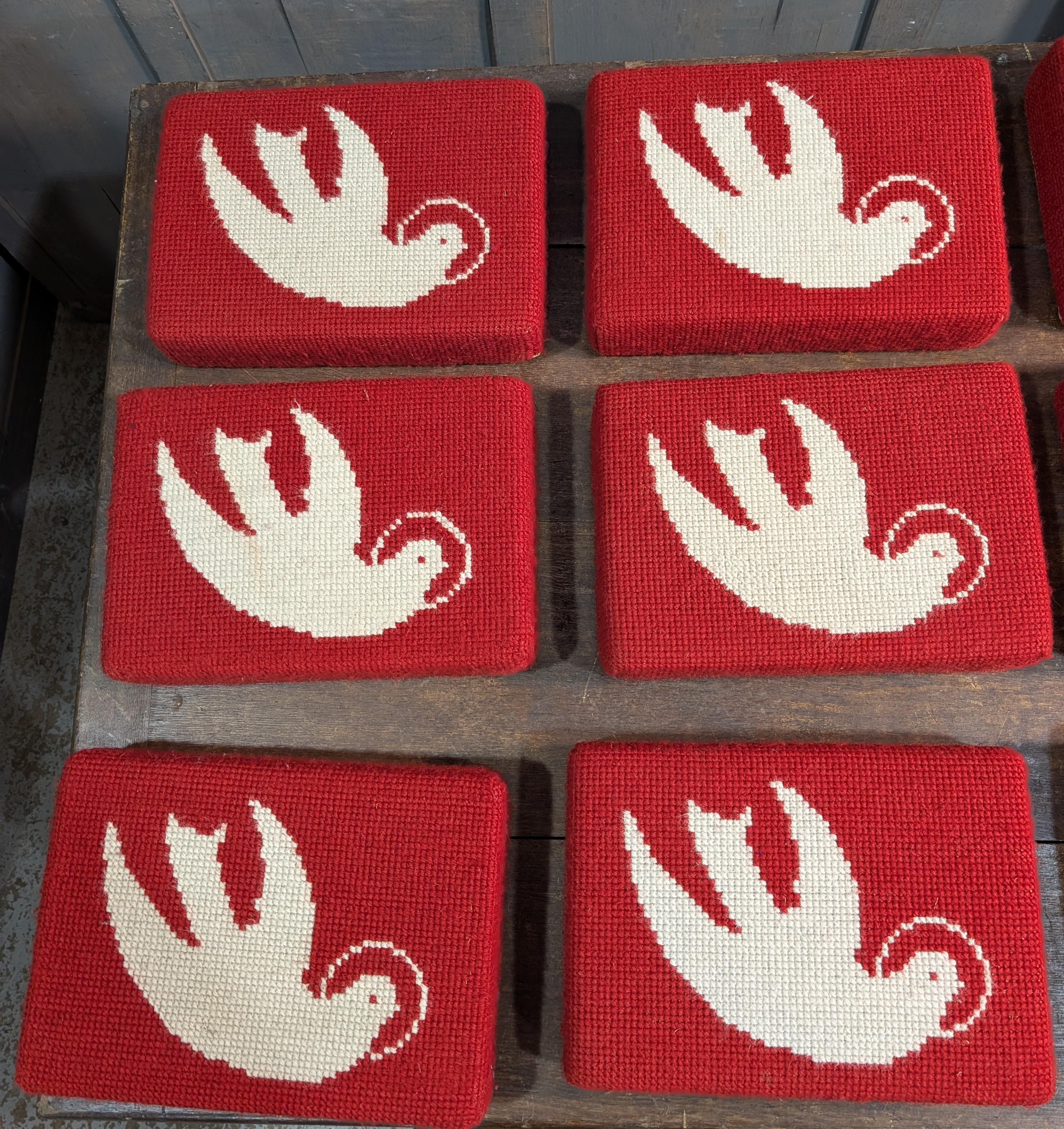 Our product shown on this page Simple & Stylish Embroidered Red & White ‘Dove’ Church Hassocks Cushions Kneelers Set of 9 is currently available for hire.