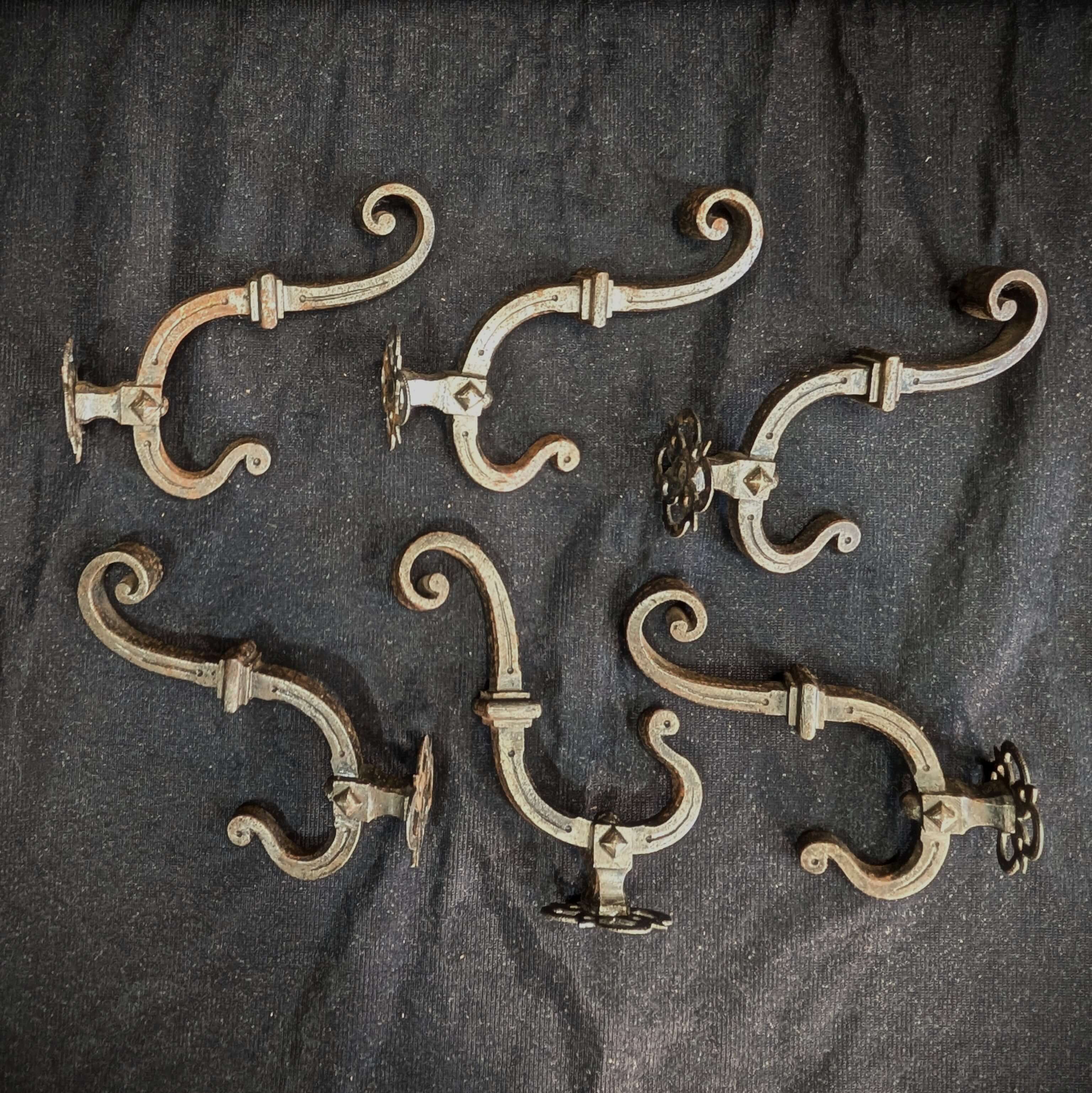 Six Fantastic Victorian Gothic Iron Coat Hooks (SOLD)