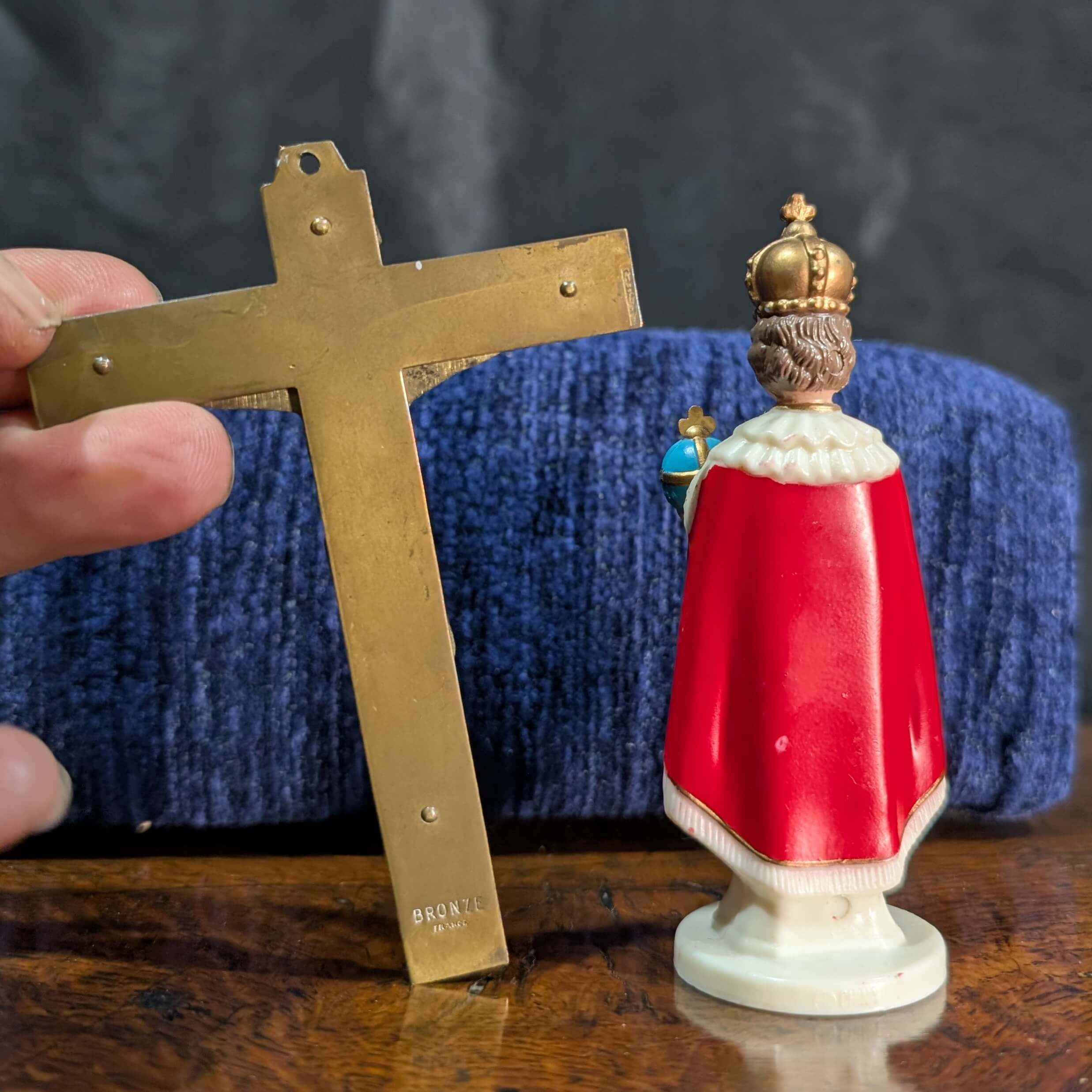 Our product shown on this page Small Bronze French Crucifix & Plastic Child of Prague -SOLD- is currently available for hire.