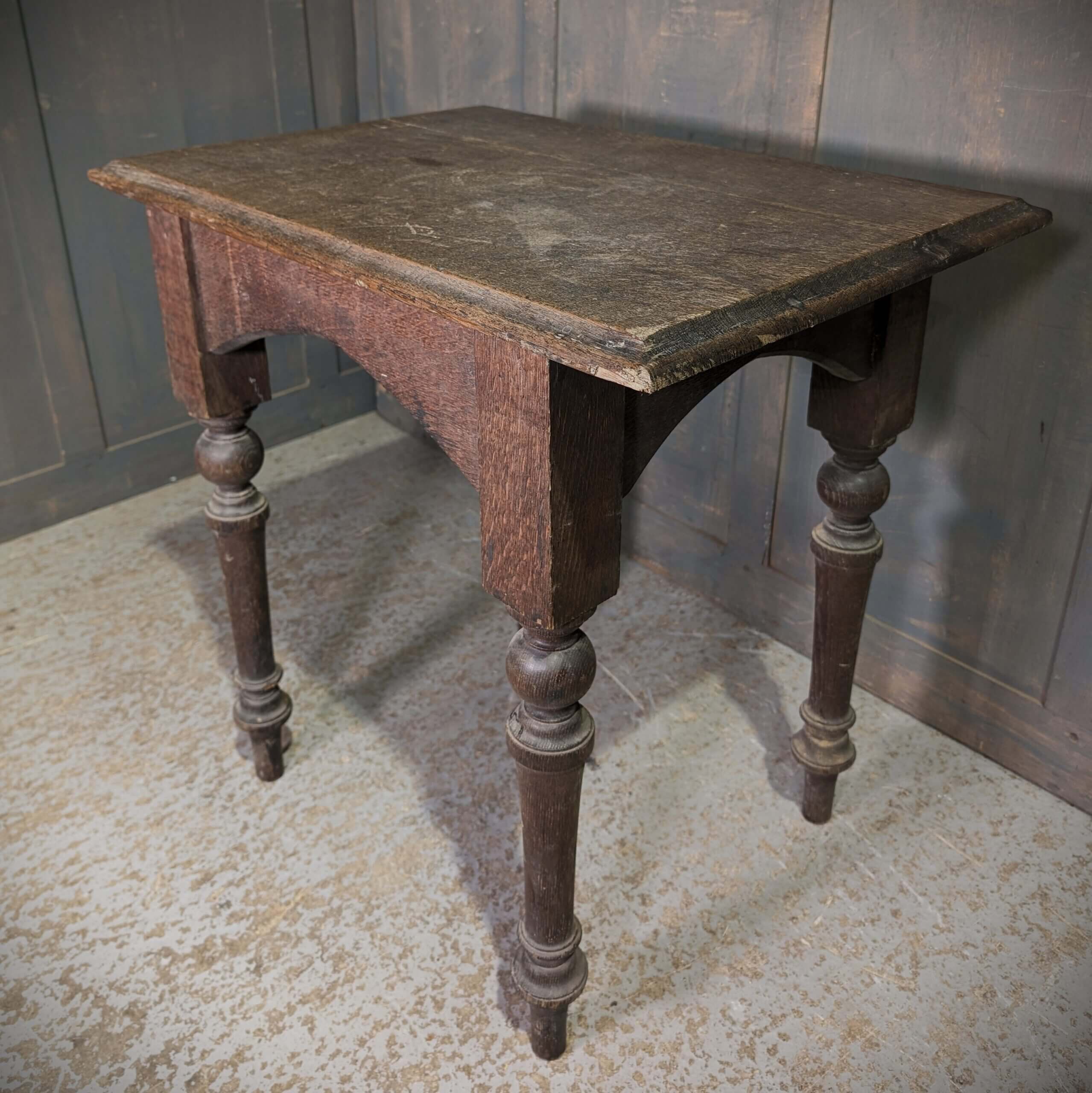 Our product shown on this page Small Gently Faded Antique Oak Church Credence Table with Baluster Legs (SOLD) is currently available for hire.