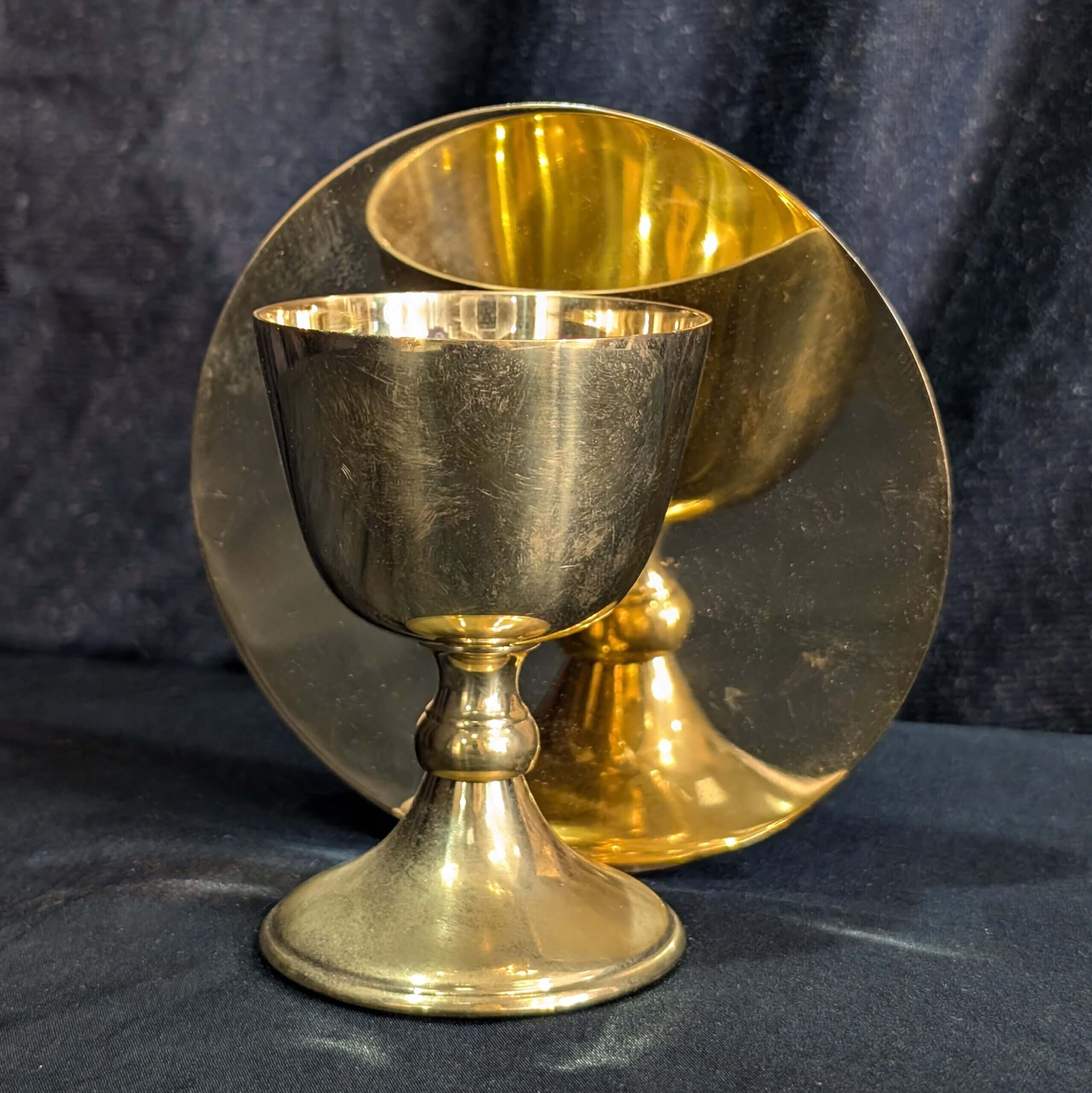 Our product shown on this page Small Gilt Brass Chalice with Gilt & Silver Plate Paten (SOLD) is currently available for hire.