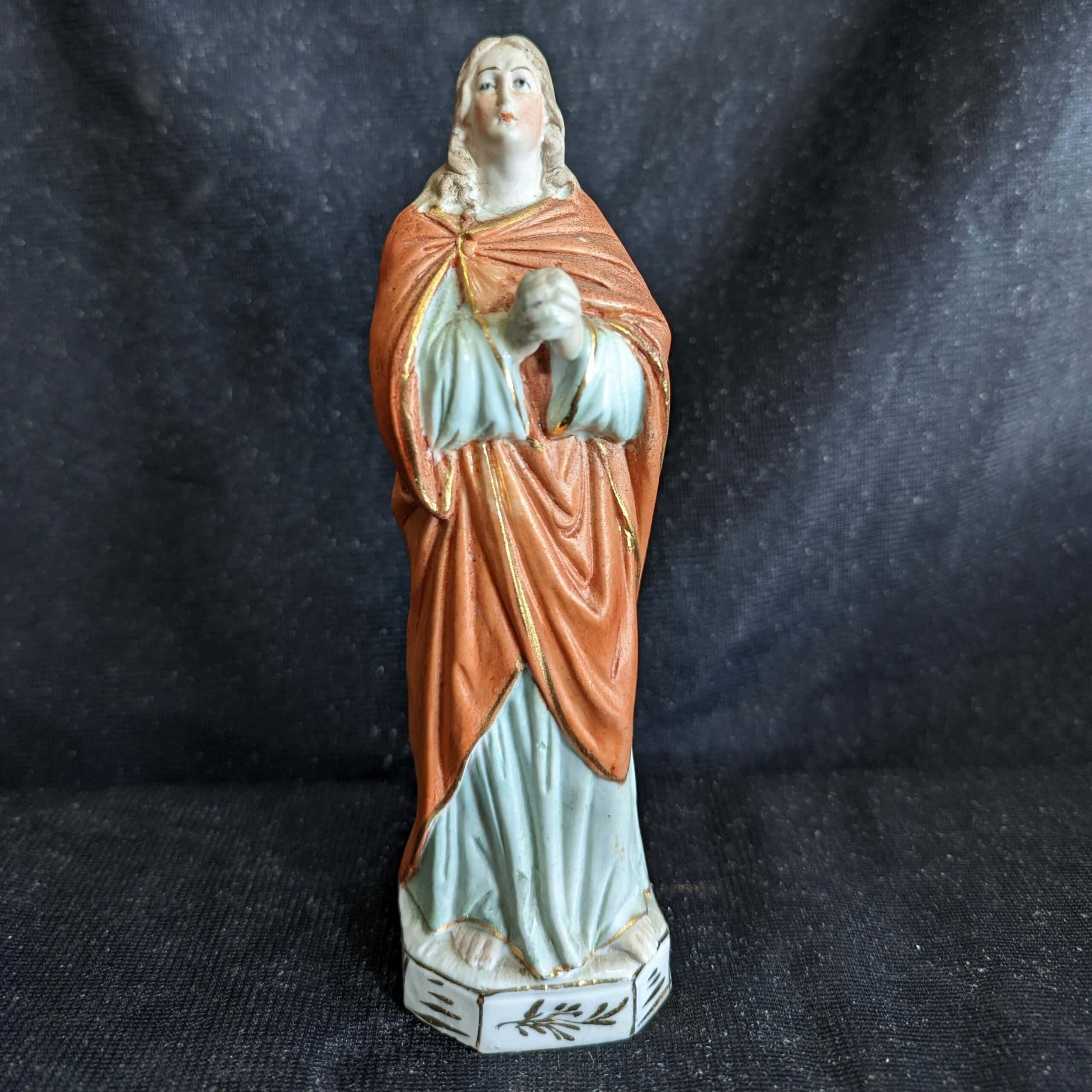 Our product shown on this page Small Handpainted French Bisque China Religious Statue of Mary Magdalene (SOLD) is currently available for hire.