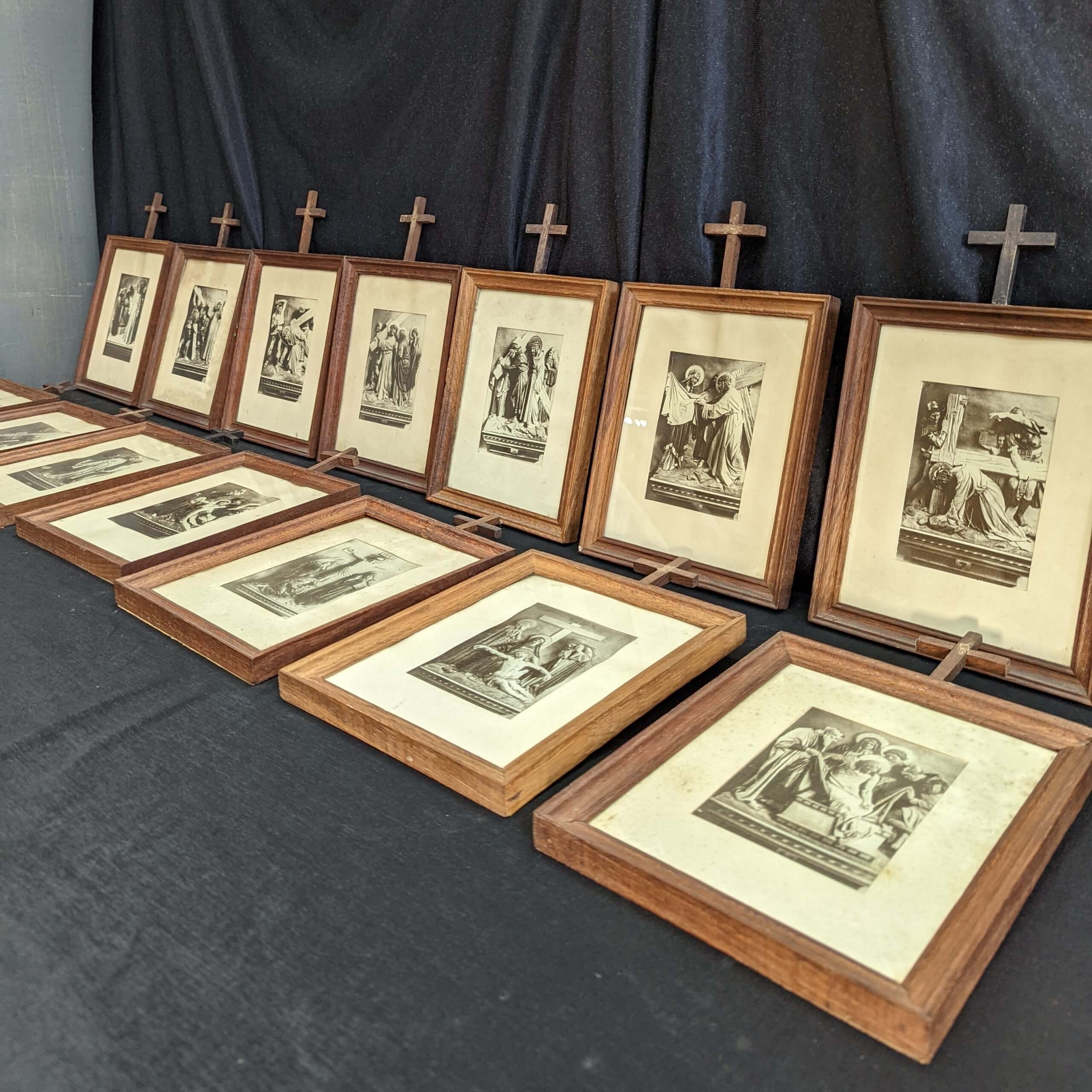 Our product shown on this page Small Set of Antique Oak Framed Stations of the Cross from Clonliffe Seminary Ireland (SOLD) is currently available for hire.