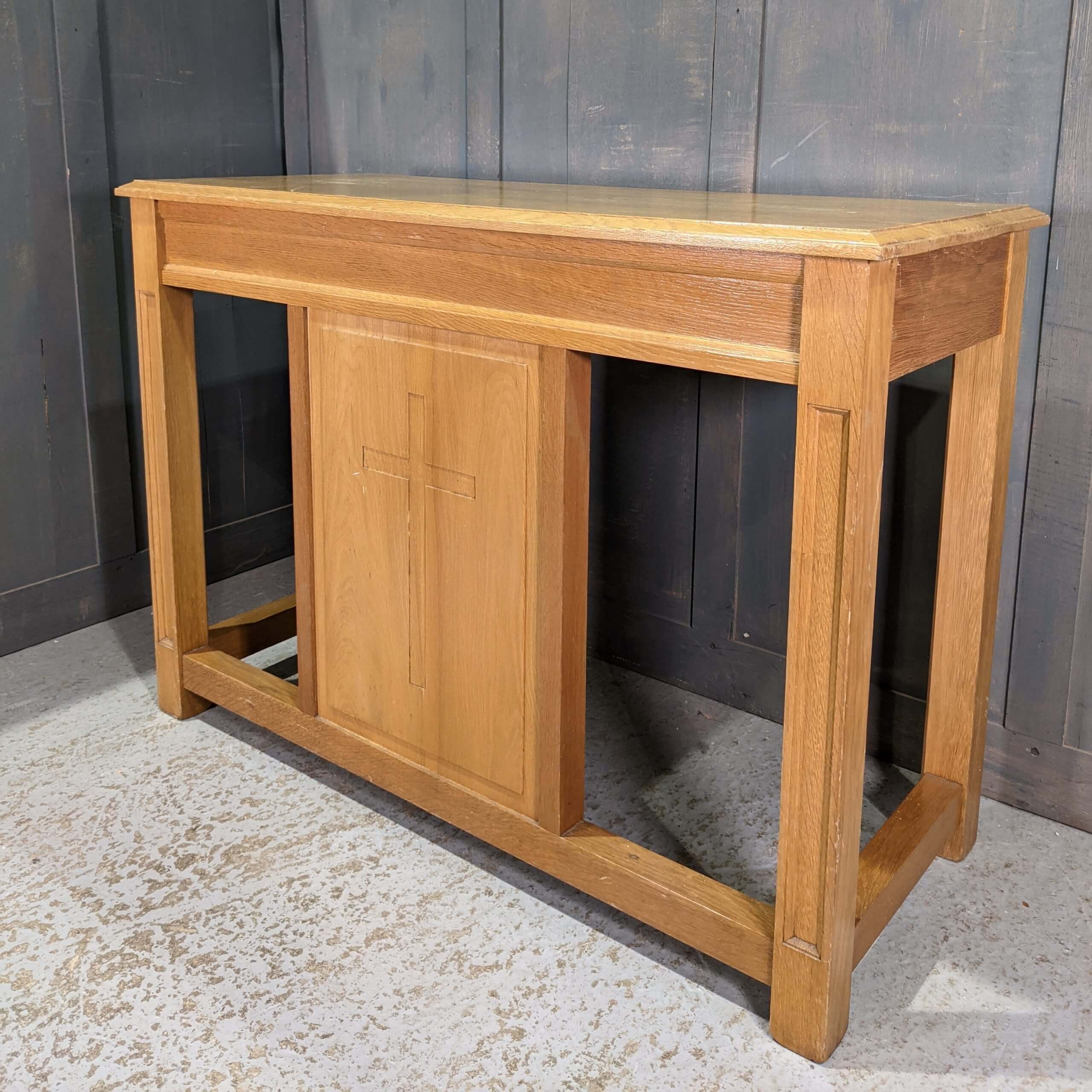 Our product shown on this page Small Solid Oak 1960’s Church Altar Table with Cross (SOLD) is currently available for hire.