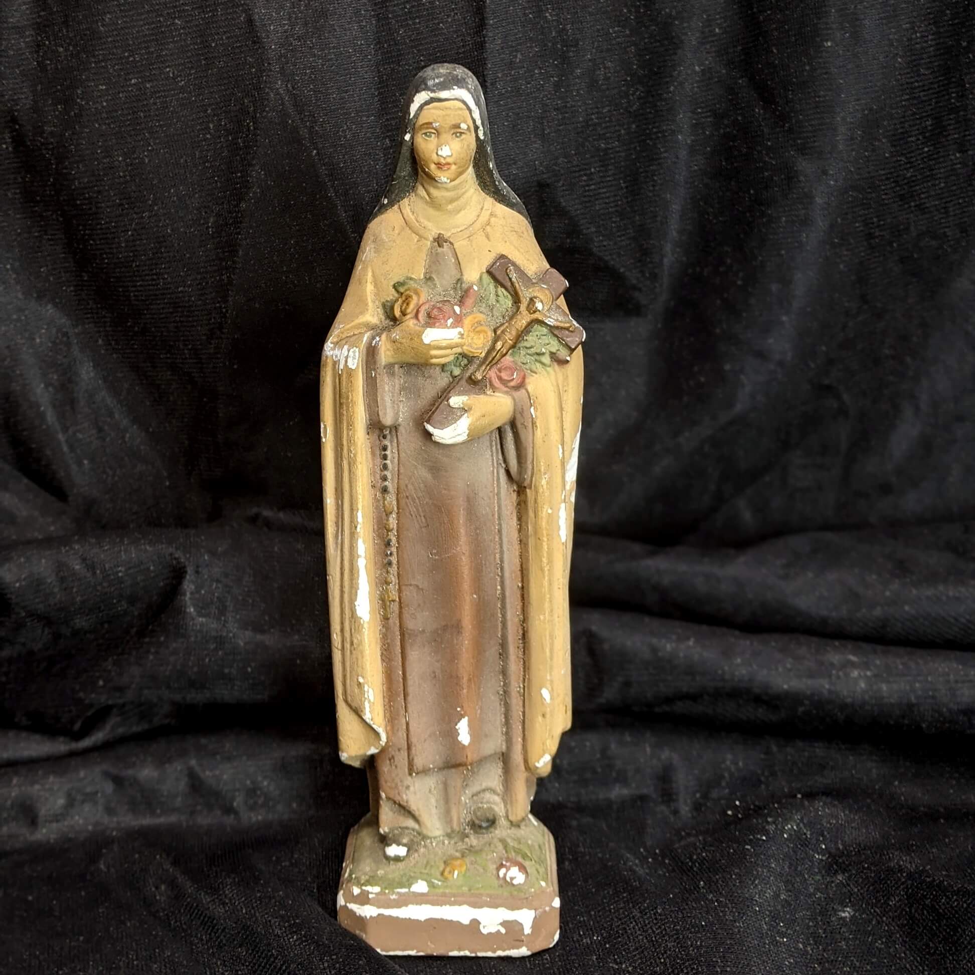 Our product shown on this page Small Vintage Plaster Religious Statue of St Teresa Lisieux (SOLD) is currently available for hire.