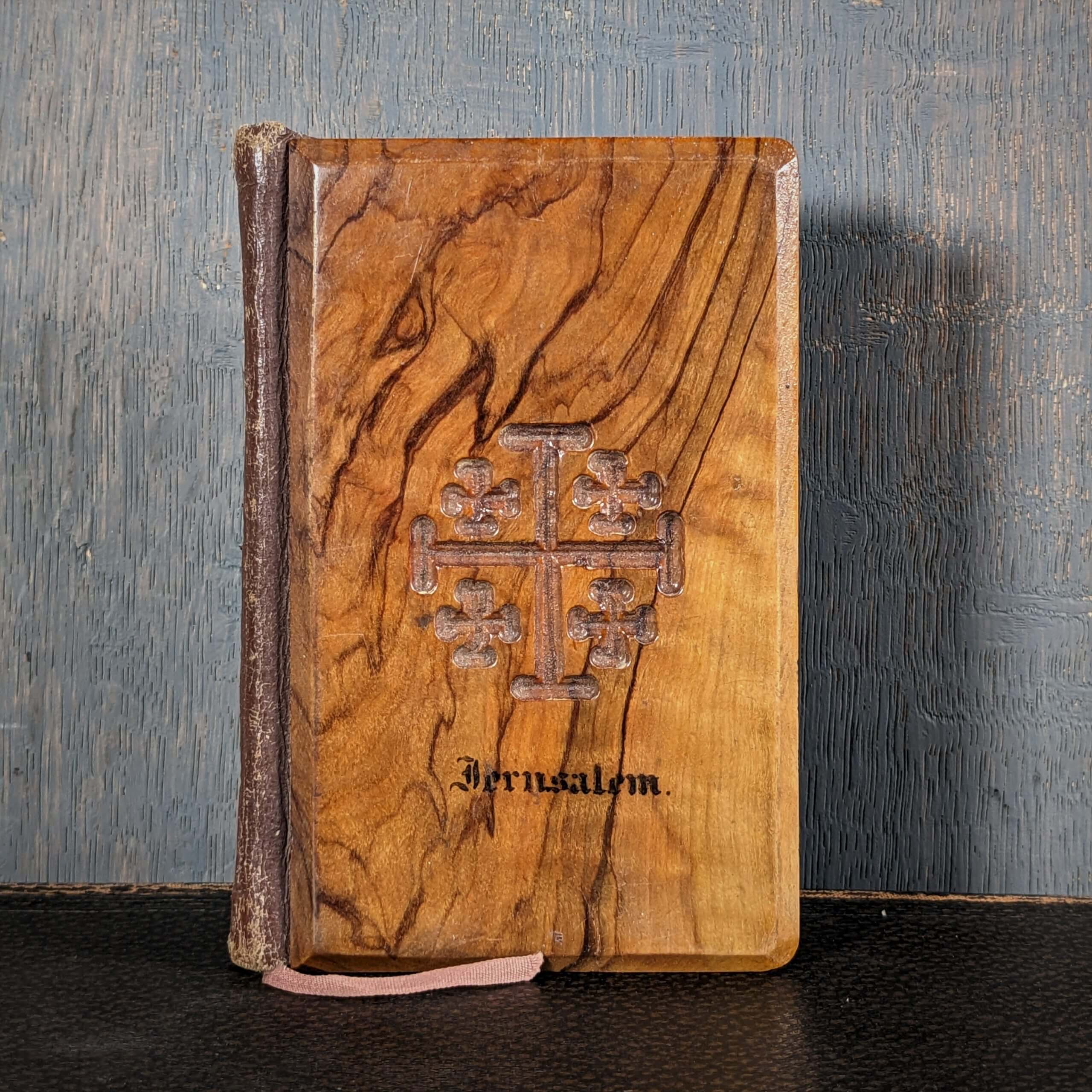 Our product shown on this page Small Vintage Souvenir of Jerusalem Prayer Book Bound with Olive Wood (SOLD) is currently available for hire.