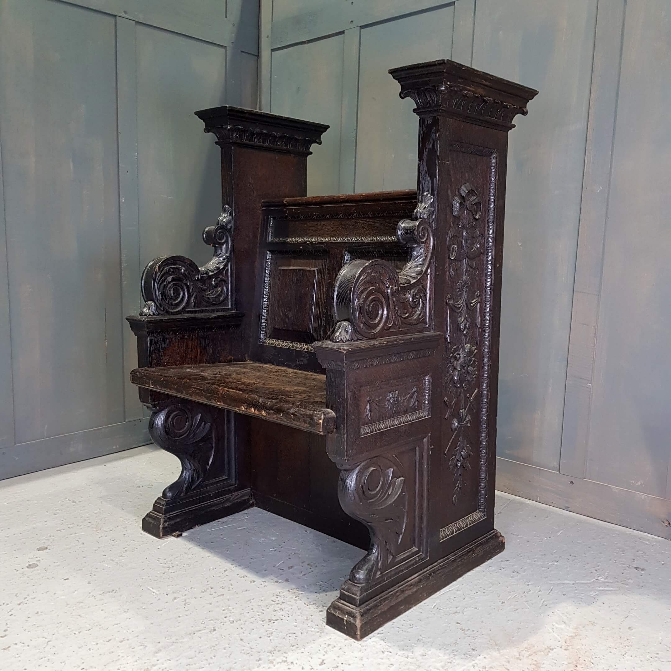 Made in 1890 to supplement the choir area of this 1796 church.  A grand single seater, full of theatre, this would have been for the use of the main celebrant.