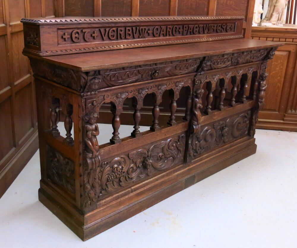 Our product shown on this page Spectacular Hand Carved Elizabethan Style Altar with Gradine (SOLD) is currently available for hire.