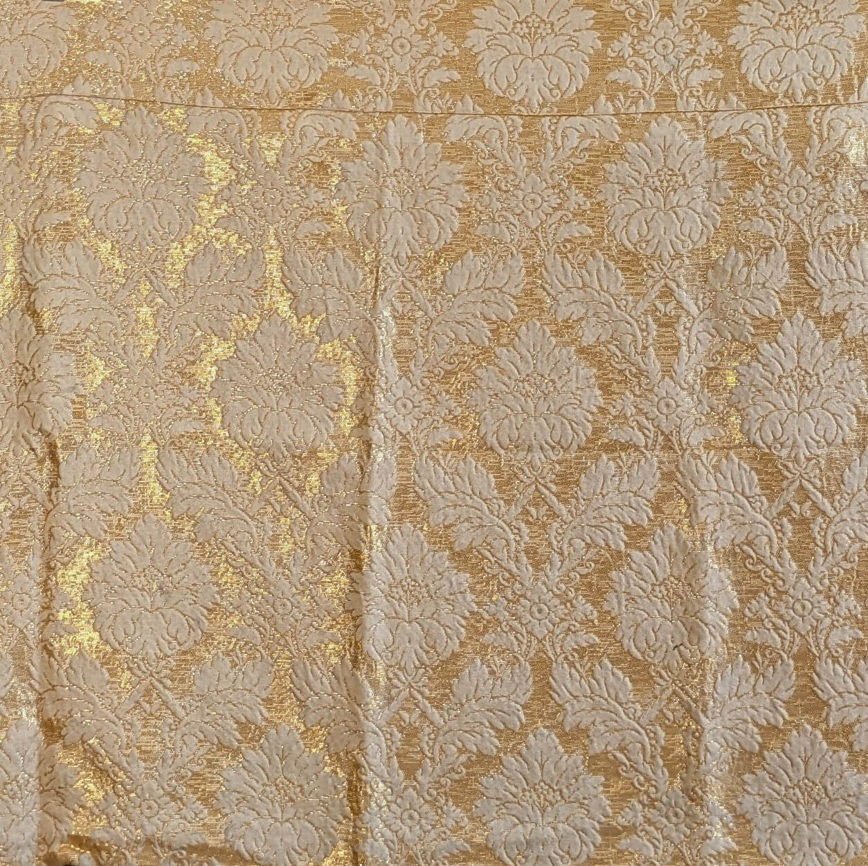 Our product shown on this page Spectacular Pomegranate Damask Gold & Cream Deconstructed Huge Church Altar Frontal (SOLD) is currently available for hire.