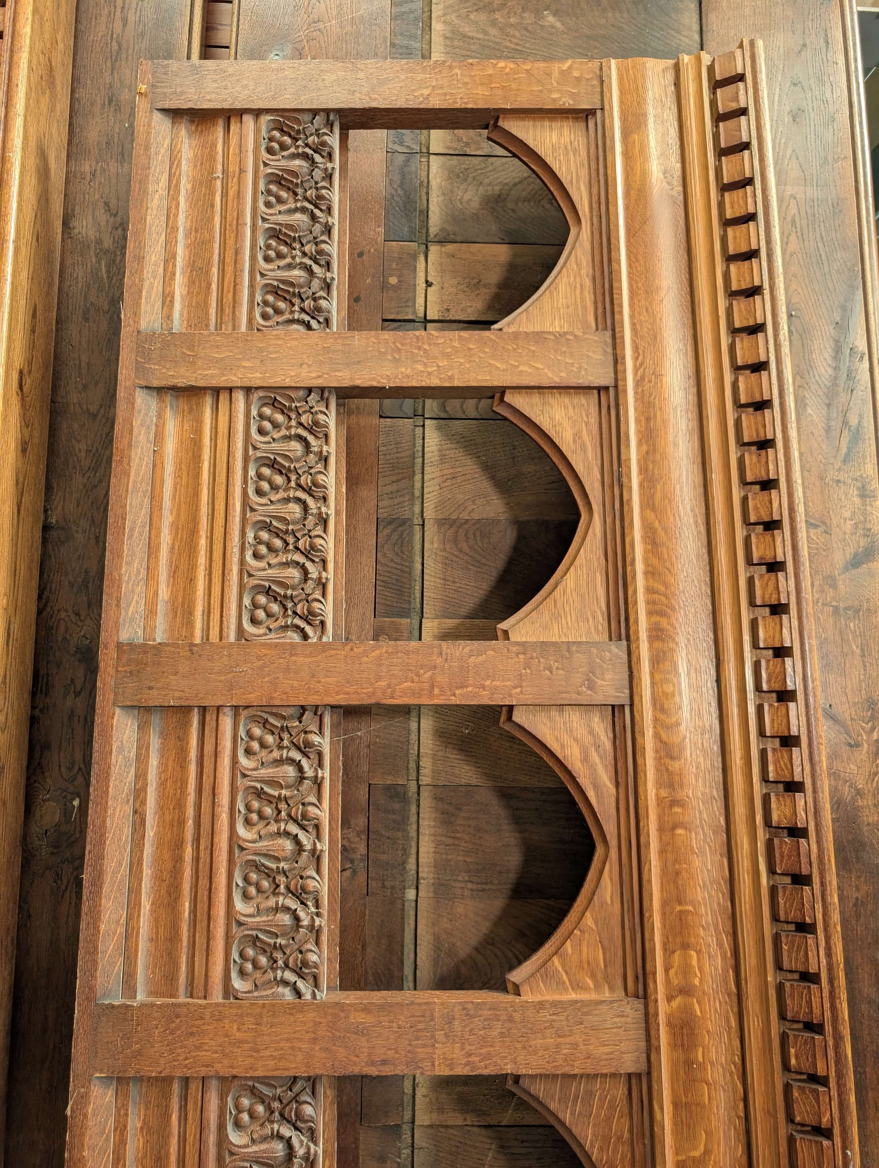 Our product shown on this page St Andrew’s United Church New Brighton Two Long Carved Antique Gothic Oak Choir Panels 6.5m is currently available for hire.