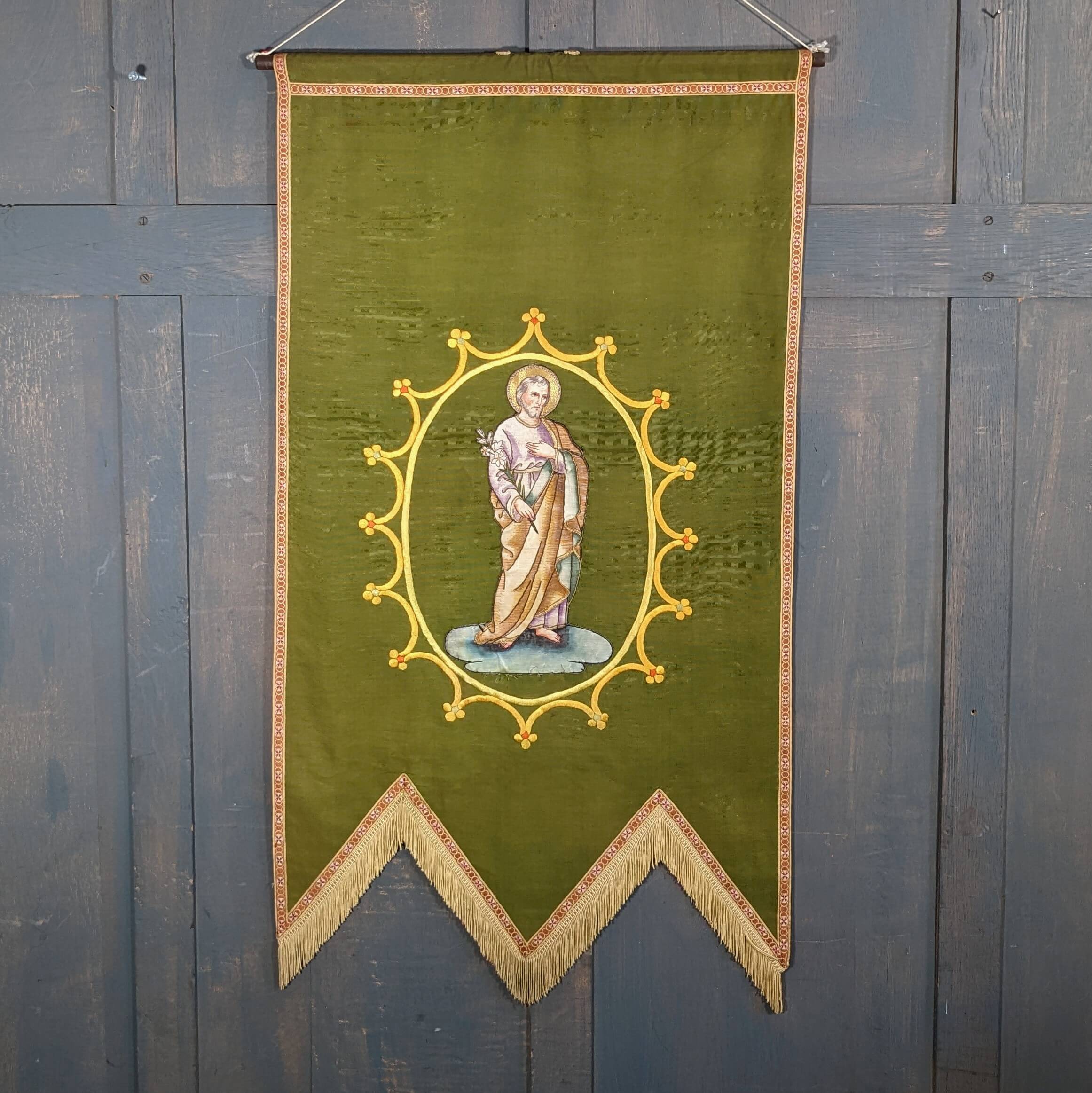 Our product shown on this page St Anthony of Padua Silk & Bullion Applique Green Cotton Banner Hanging (SOLD) is currently available for hire.