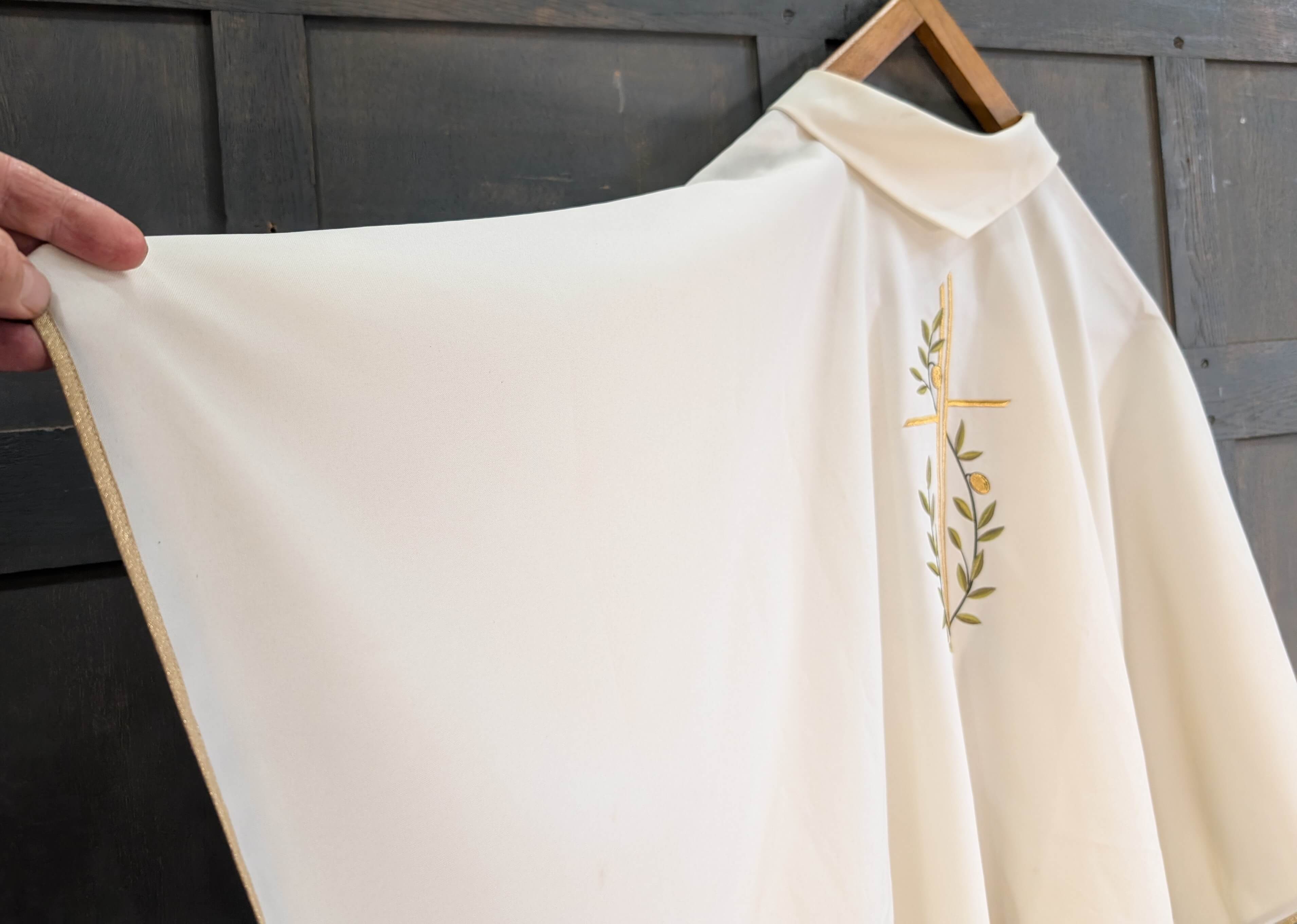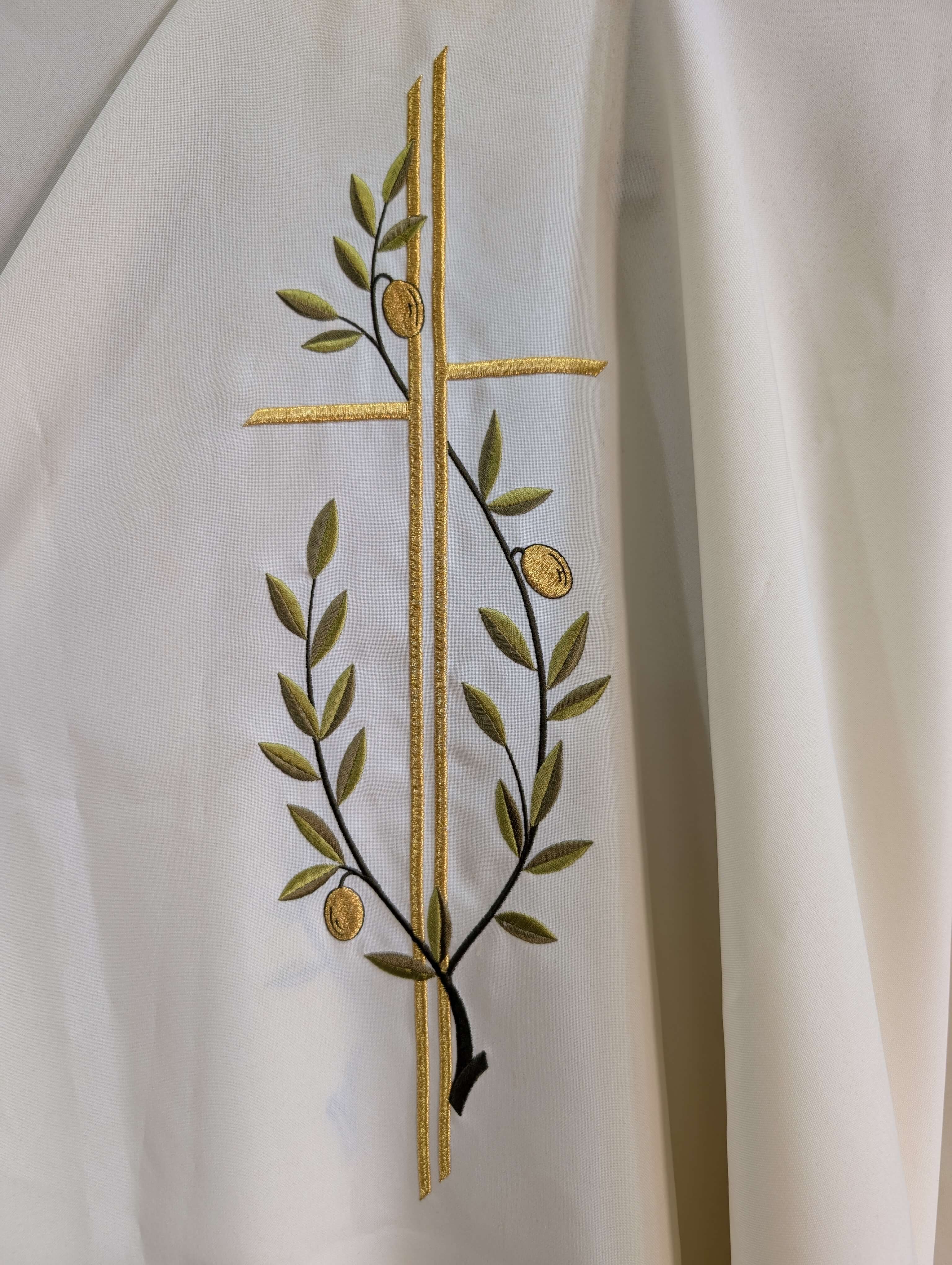 Our product shown on this page Stylish Italian Alb with Embroidered Gold Cross & Olive Tree is currently available for hire.