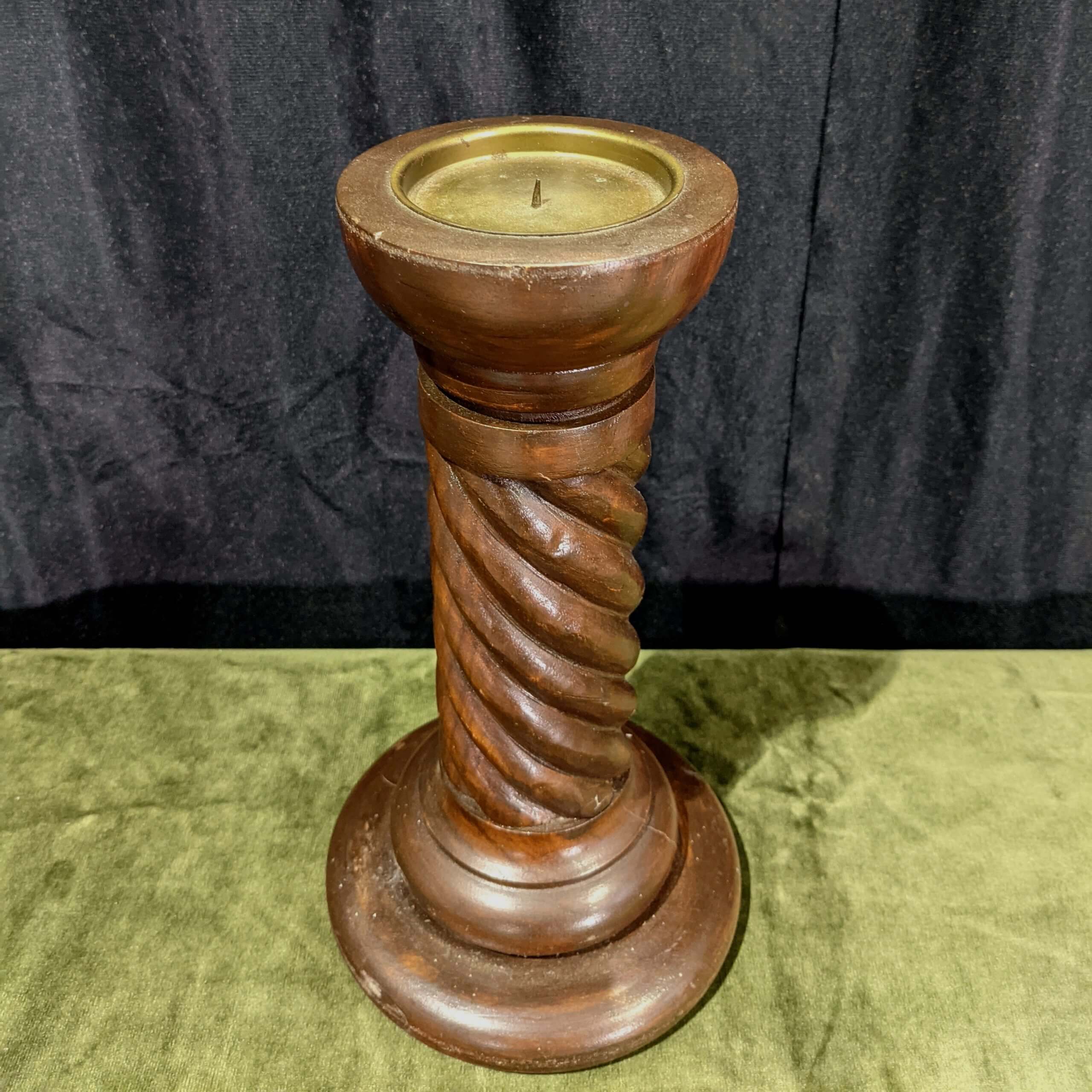 Our product shown on this page Substantial & Chunky Squat Teak Repro Candlestick with Brass Pricket Tray (SOLD) is currently available for hire.