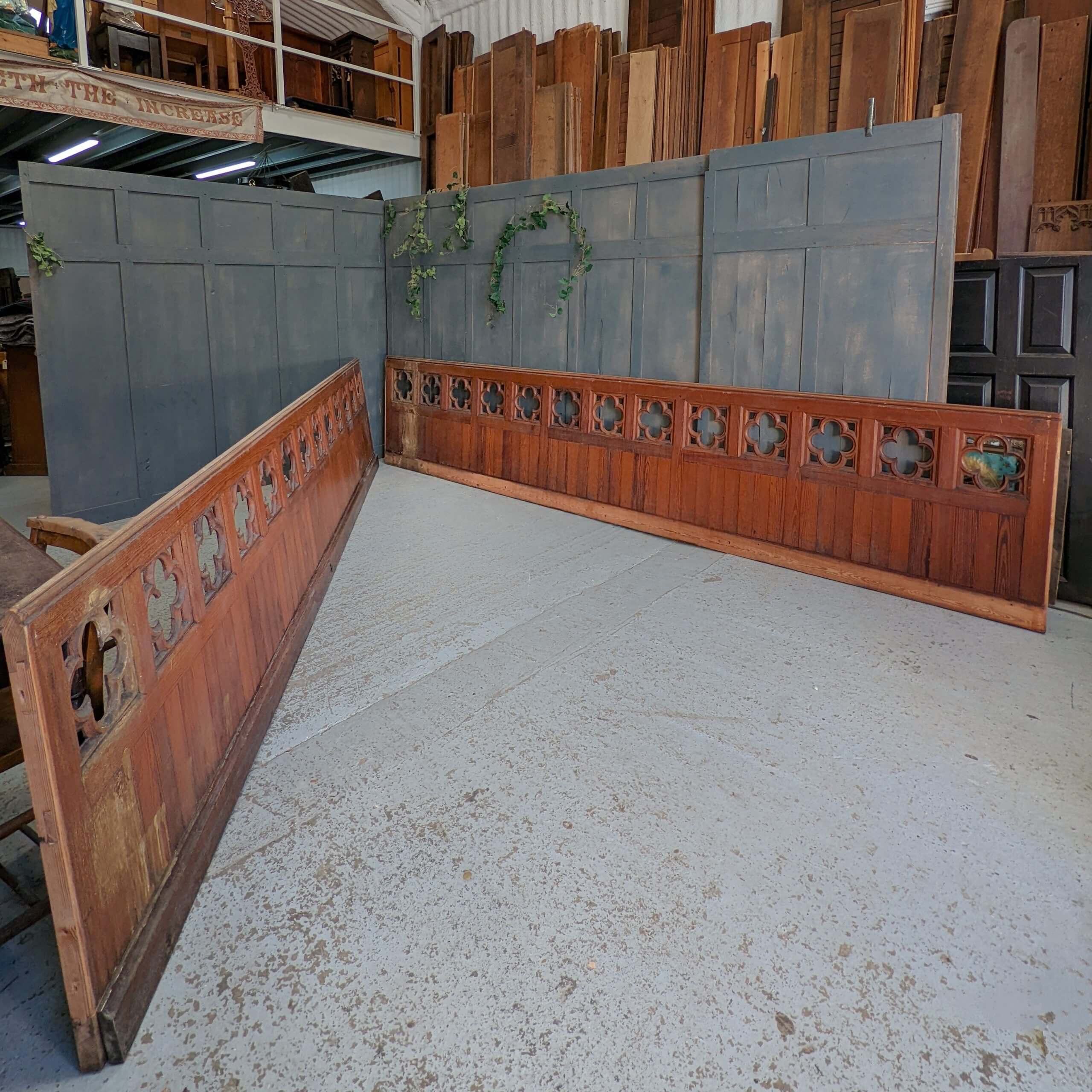 Our product shown on this page Swansea Quatrefoiled Victorian Pitch Pine Church Fronts Panels Panelling (SOLD) is currently available for hire.