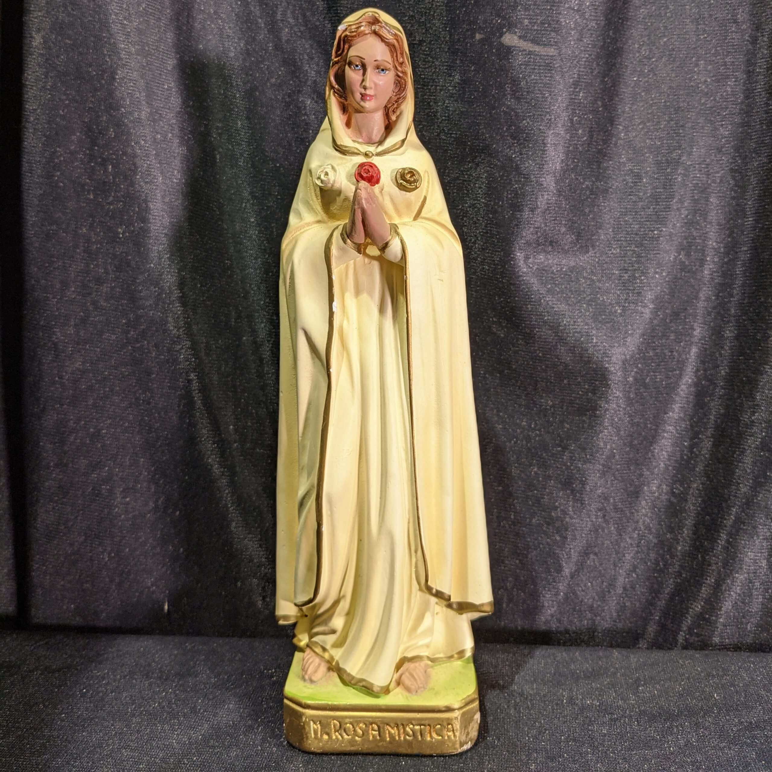 Our product shown on this page Table Size Lovely Italian Religious Statue in Plaster of Our Lady ‘Rosa Mystica’ (SOLD) is currently available for hire.