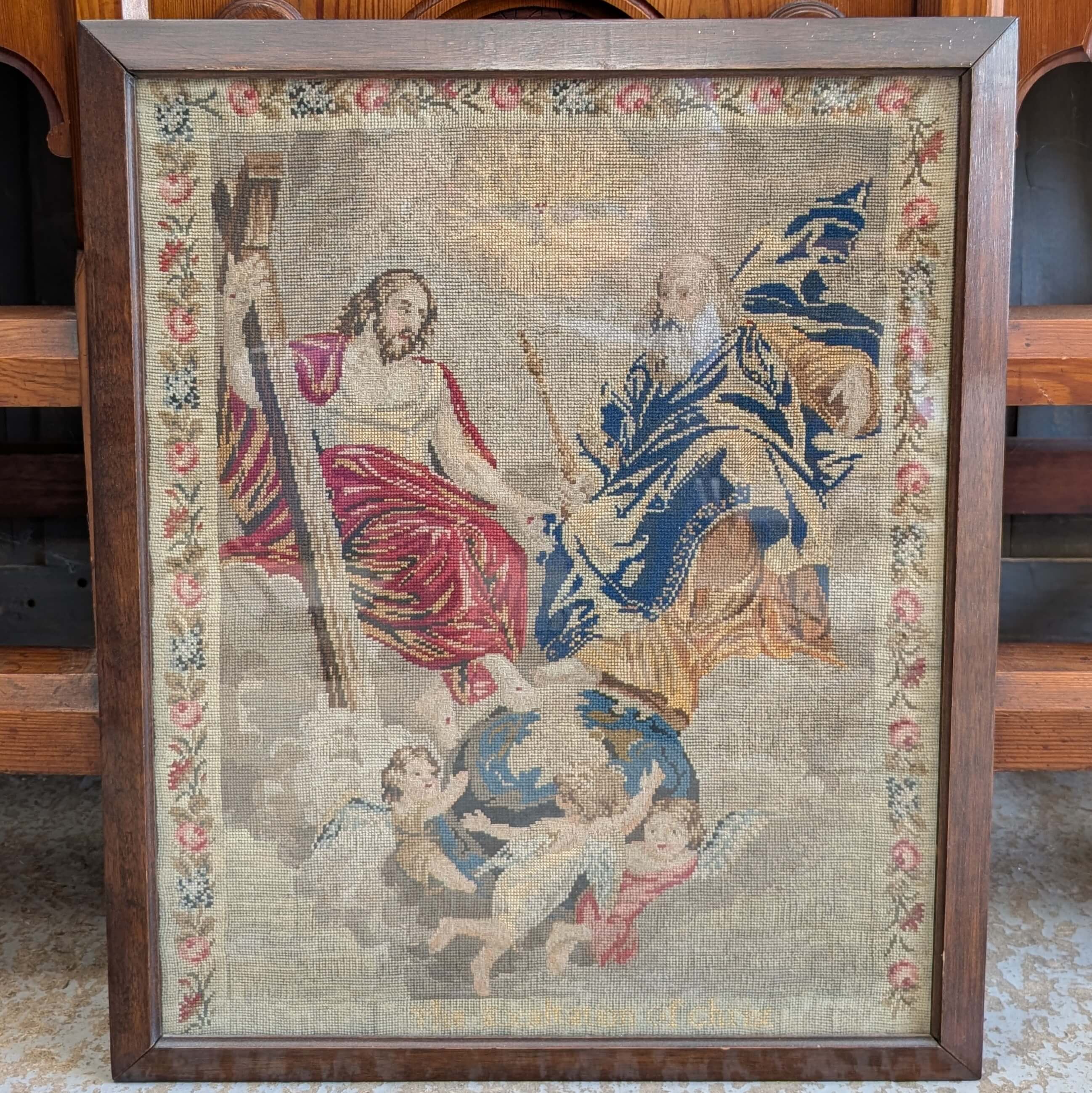 Our product shown on this page The Exaltation of Christ – Mid Victorian Woolwork (SOLD) is currently available for hire.