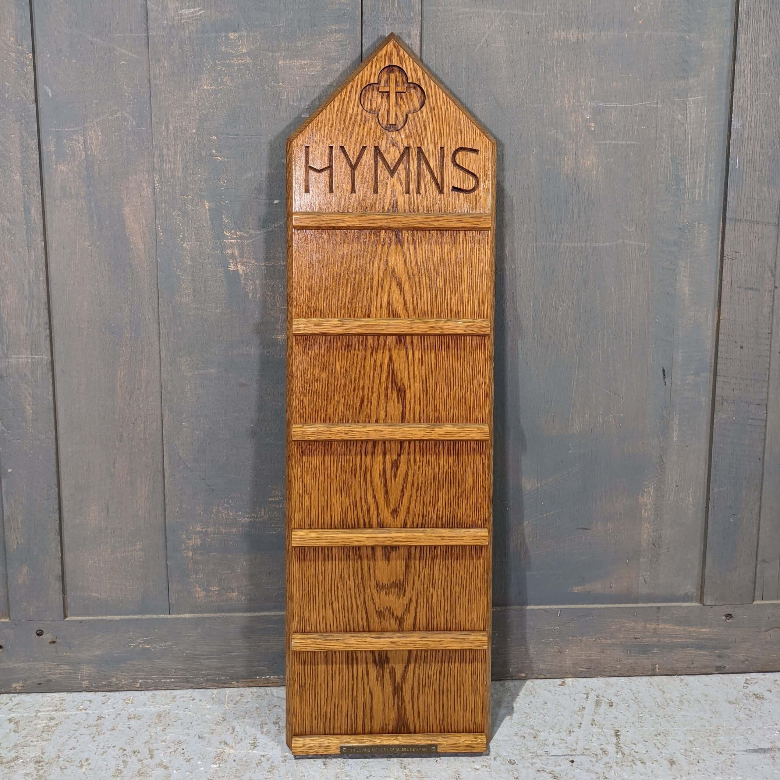 Our product shown on this page The Mabel Newman Vintage Oak Carved Hymn Board (SOLD) is currently available for hire.