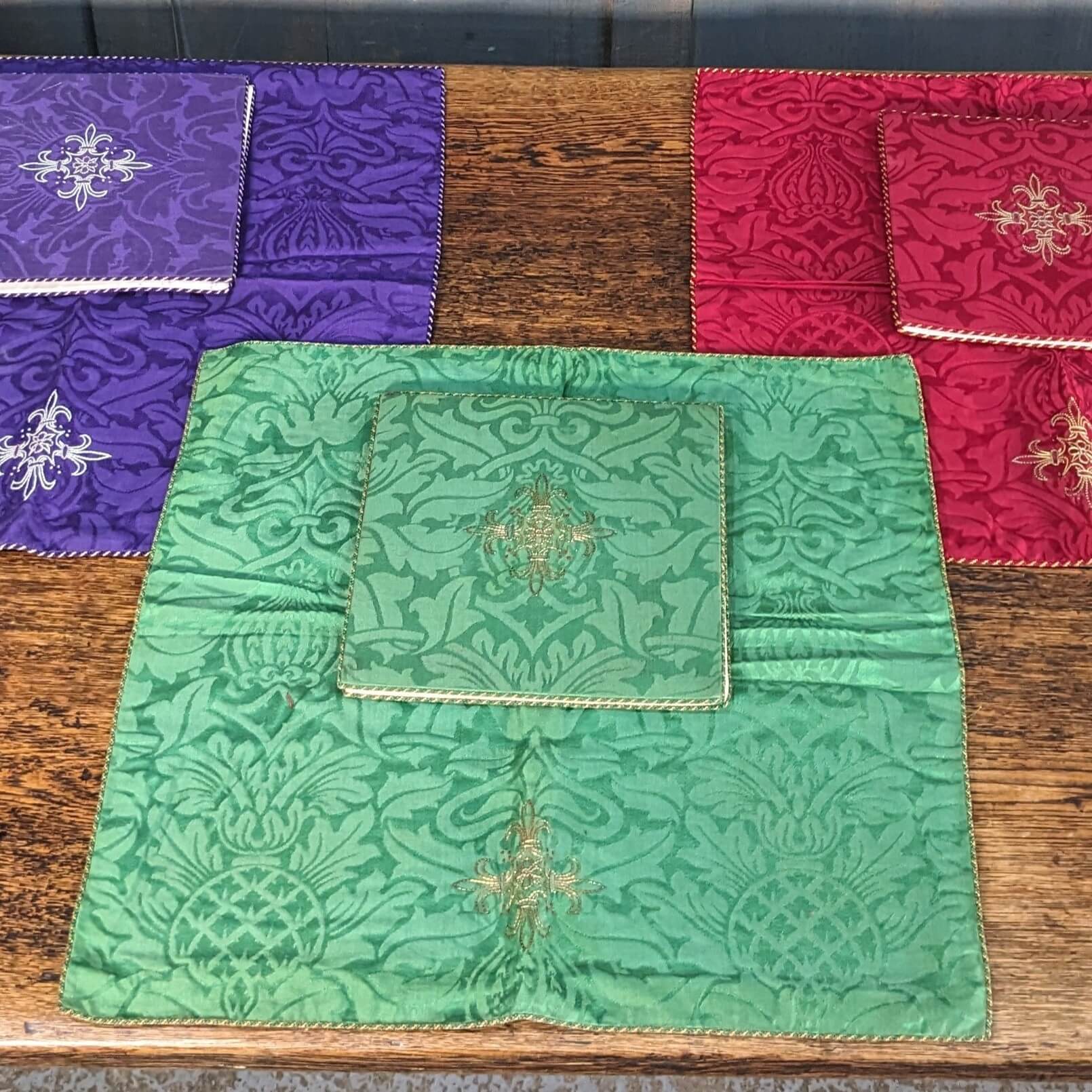 Our product shown on this page Three Attractive Vintage Burses with Matching Chalice Veils (Purple Red & Green) (SOLD) is currently available for hire.