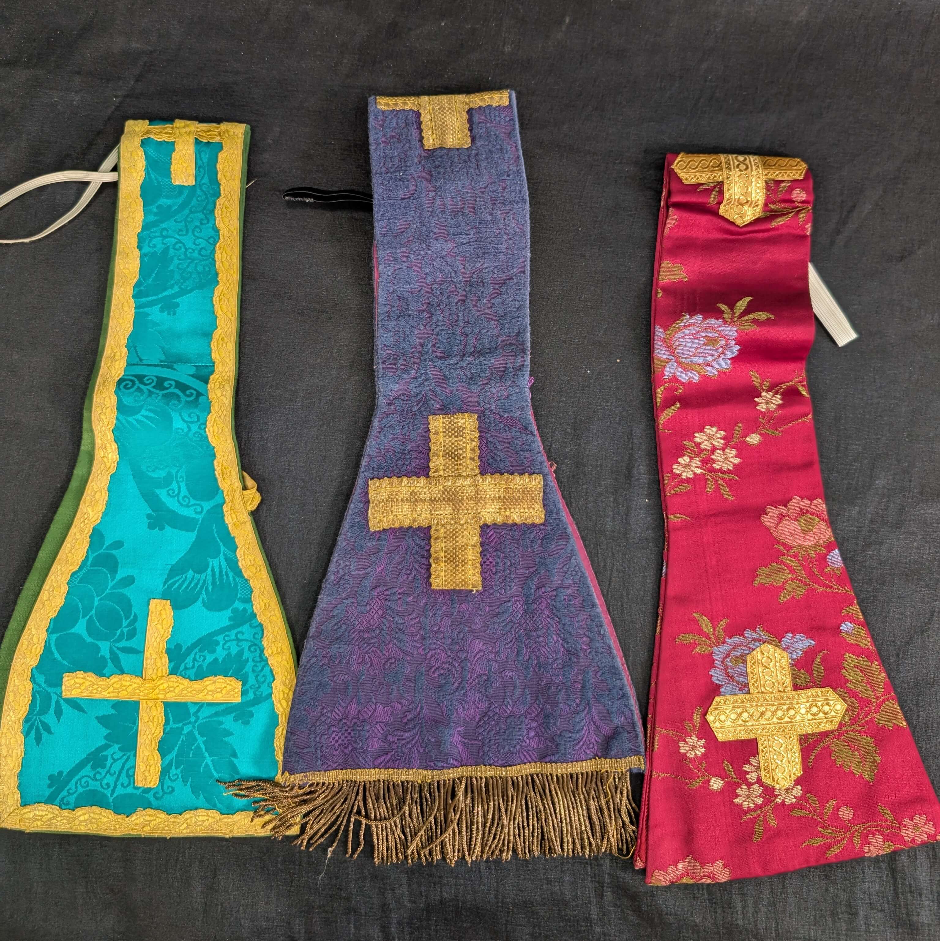 Our product shown on this page Three Colourful Gothic Maniples is currently available for hire.