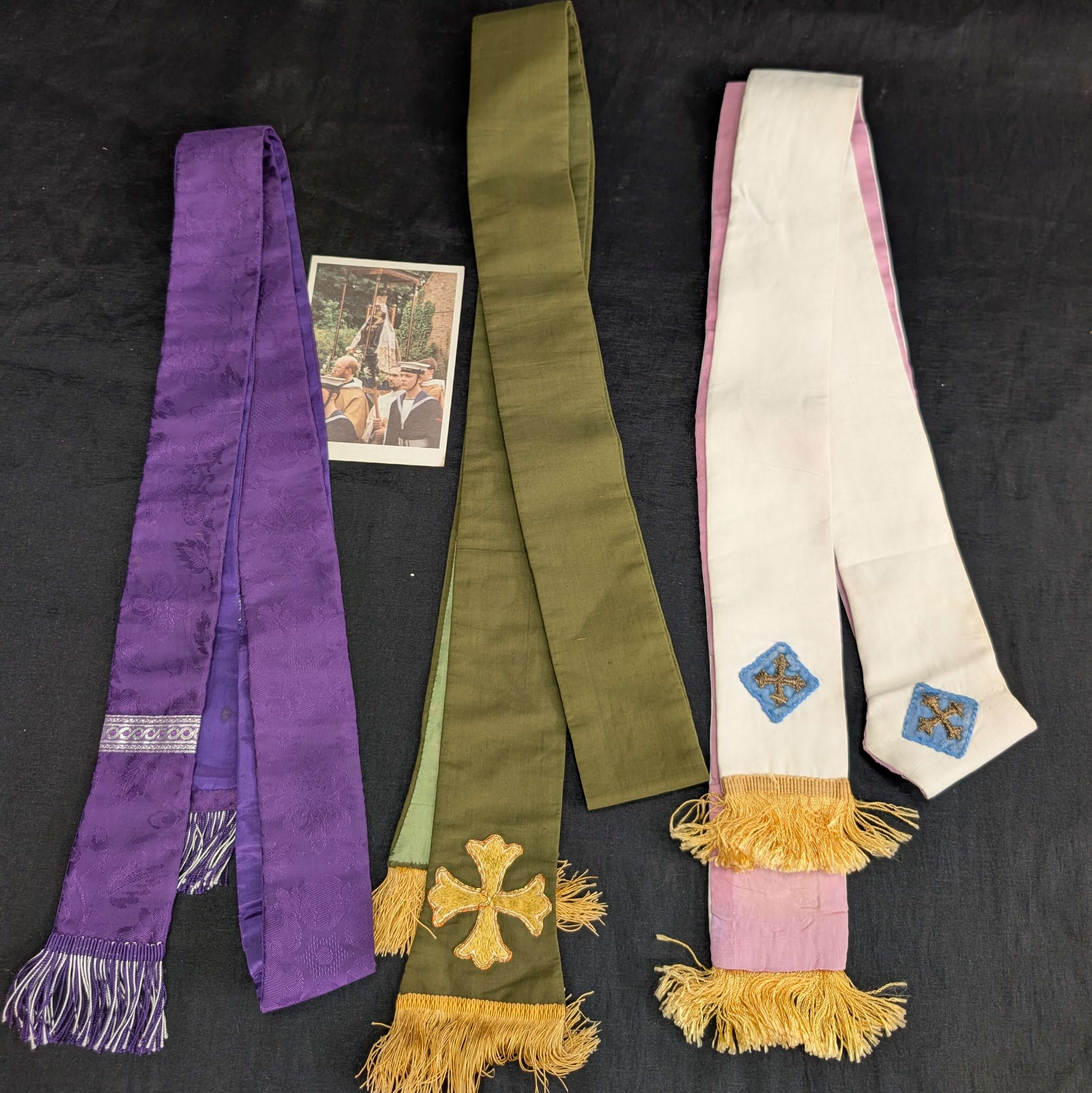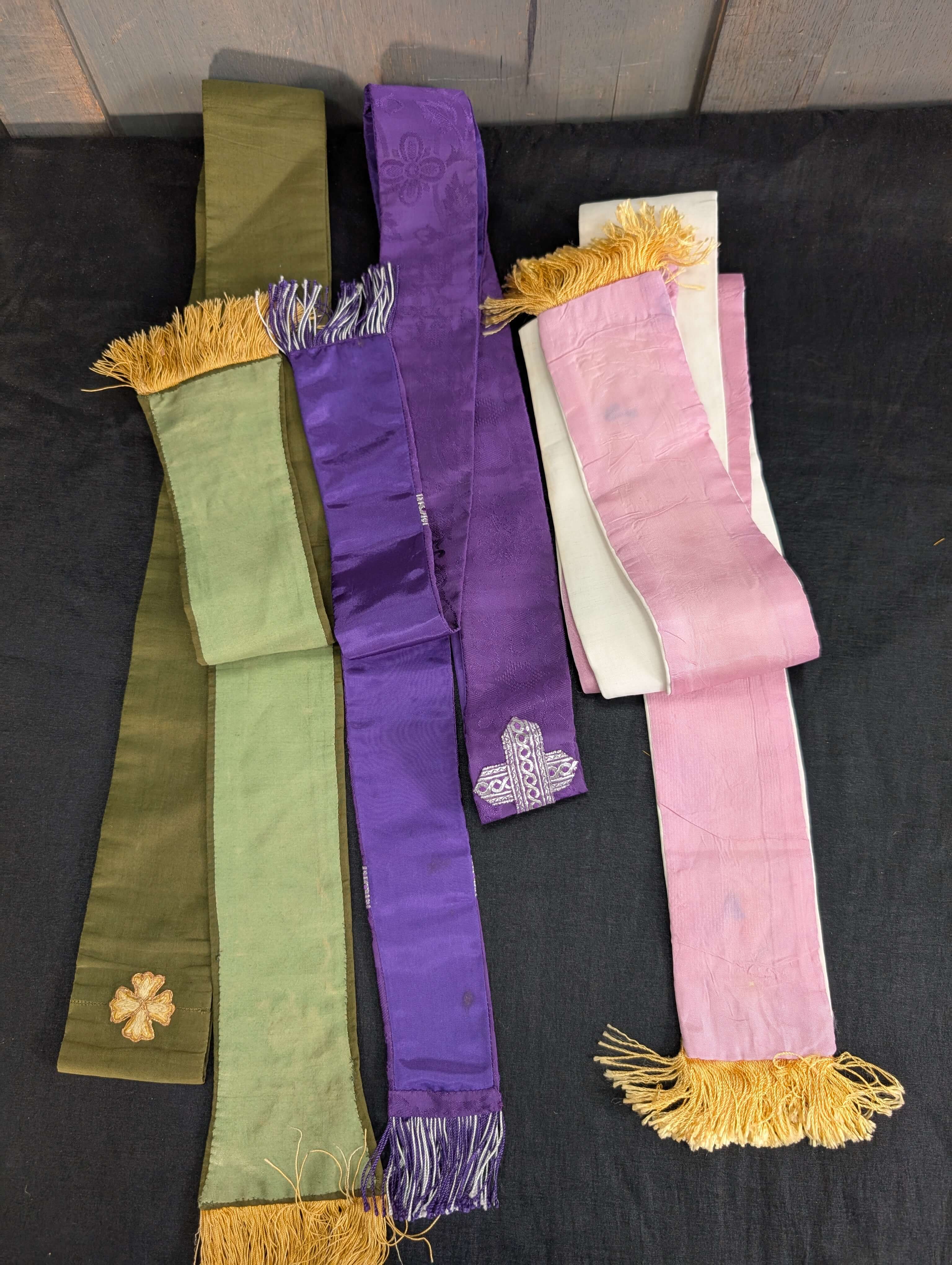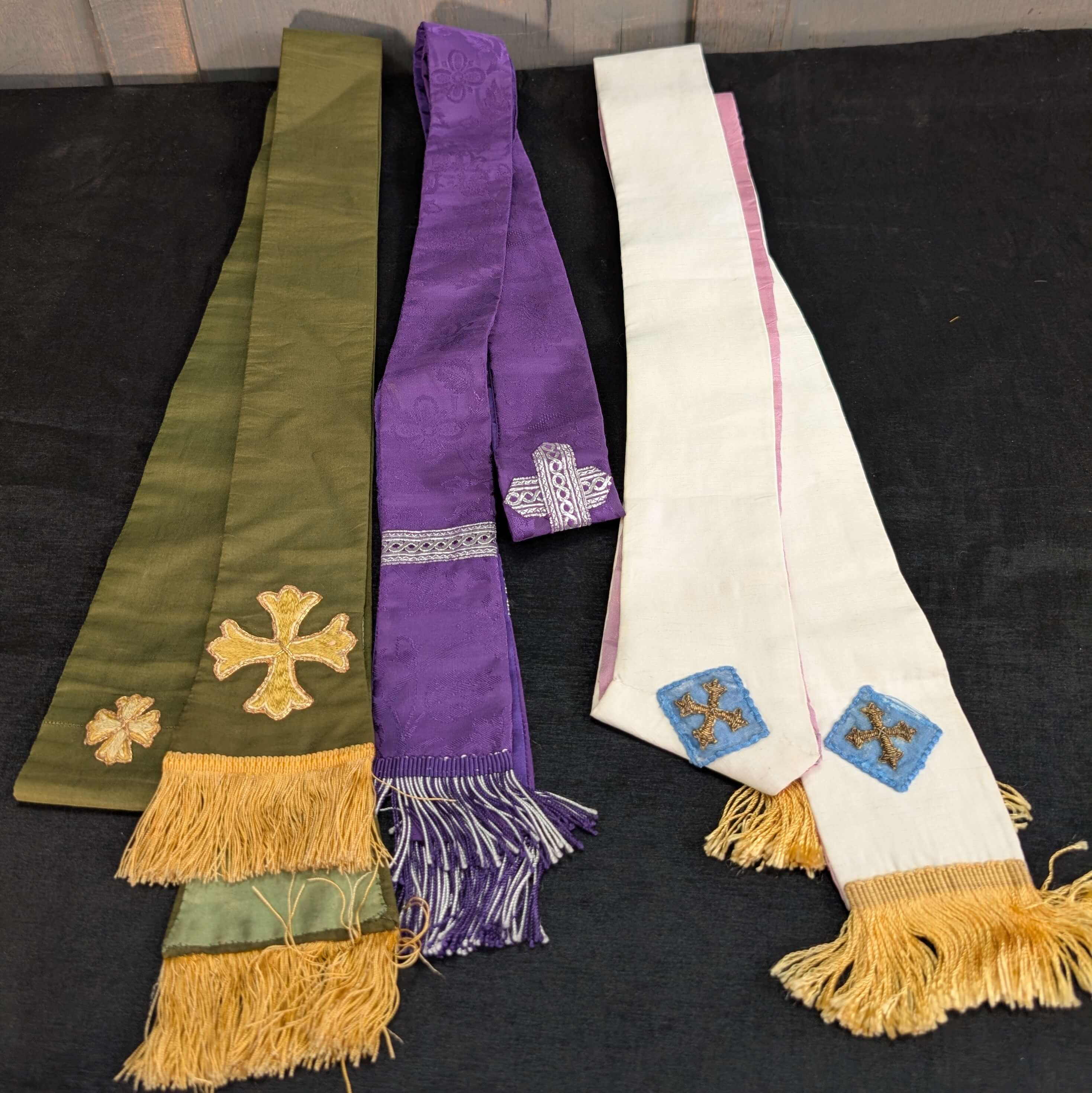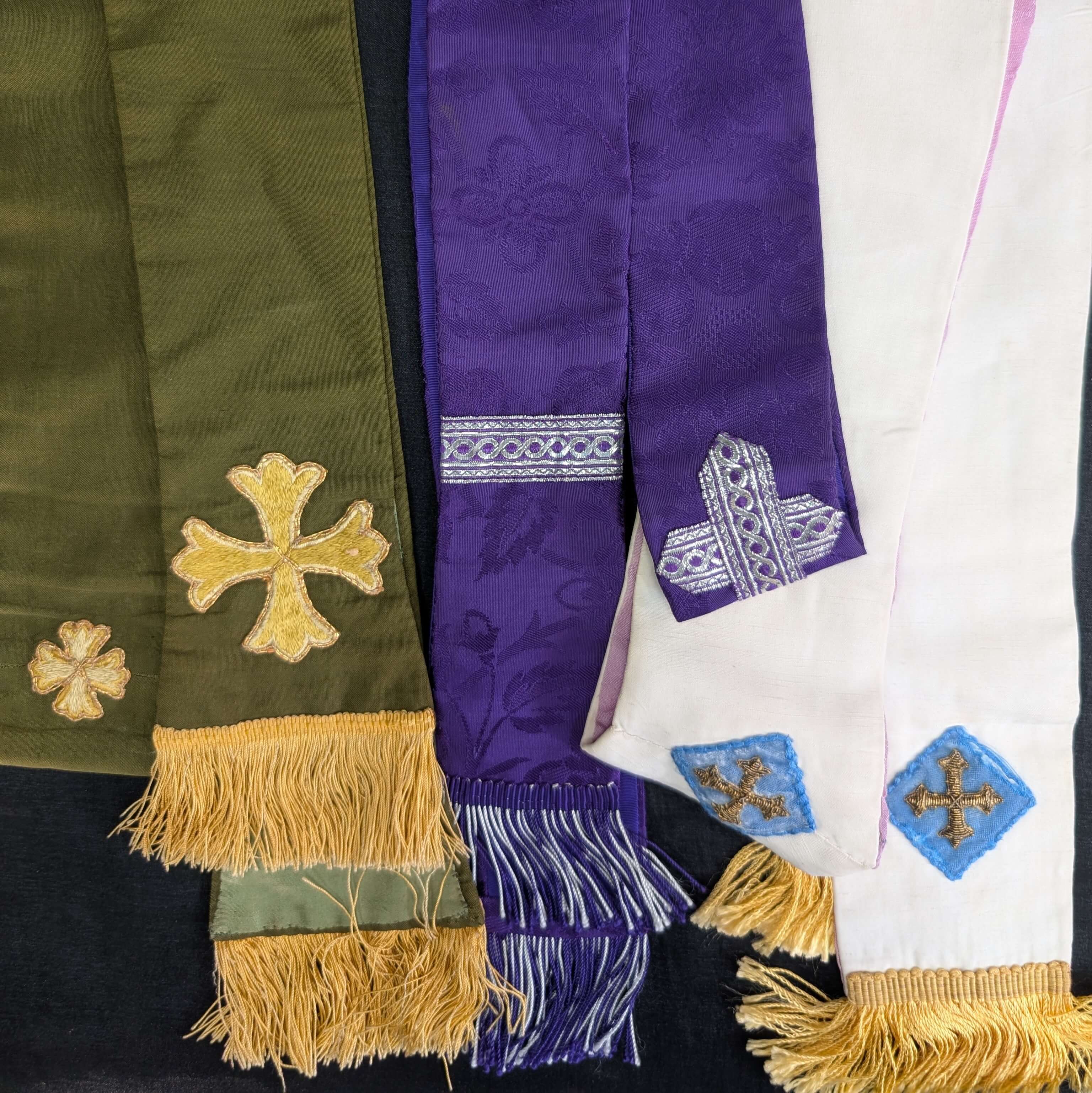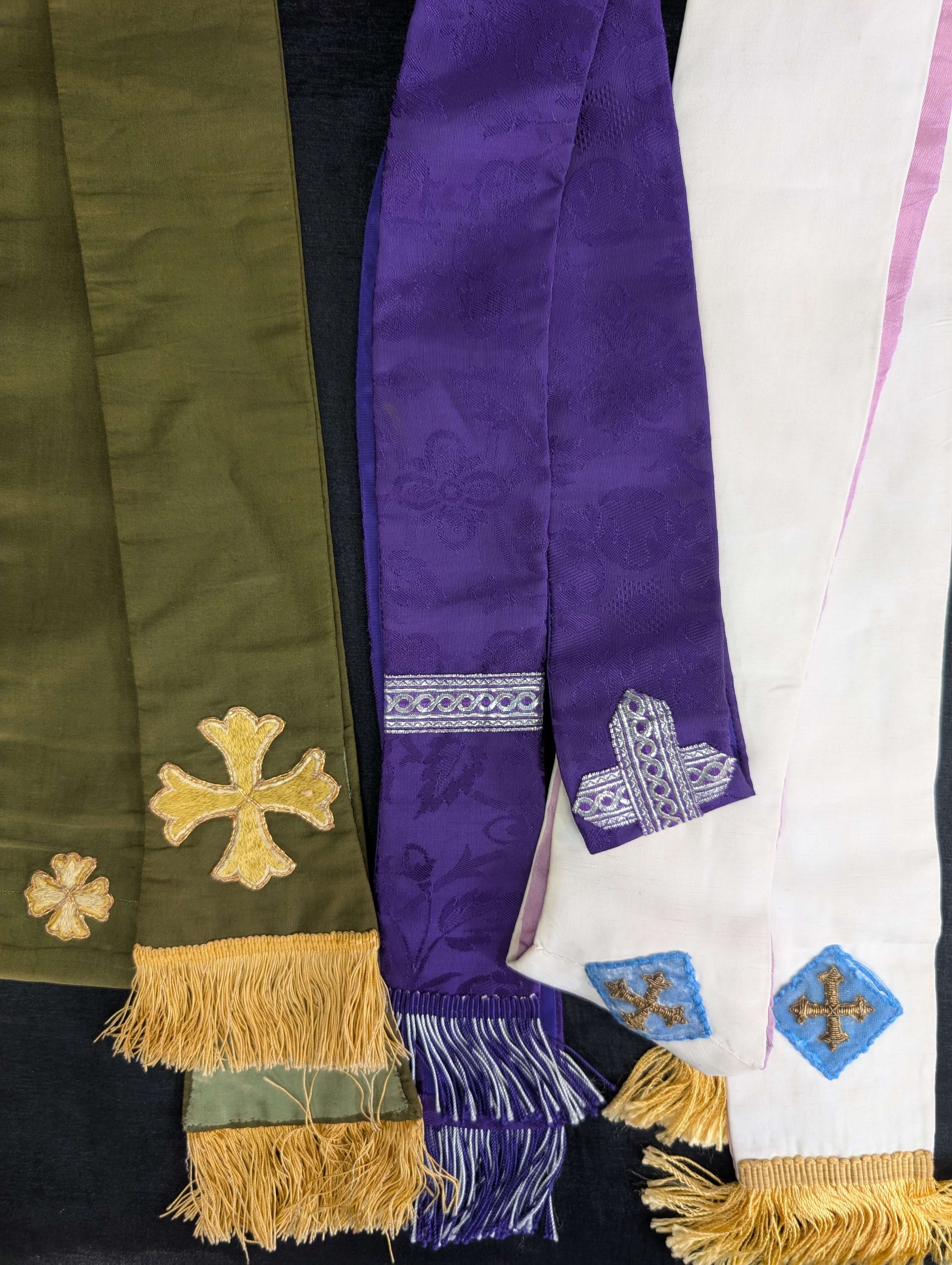 Our product shown on this page Three Stoles Purple, Green and White with Crosses is currently available for hire.