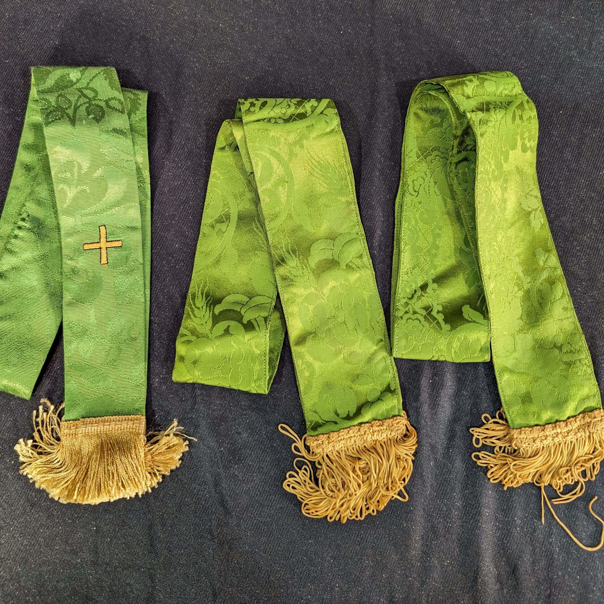 Our product shown on this page Three Very Clean Green Silk Damask Bible Bookmarks (SOLD) is currently available for hire.