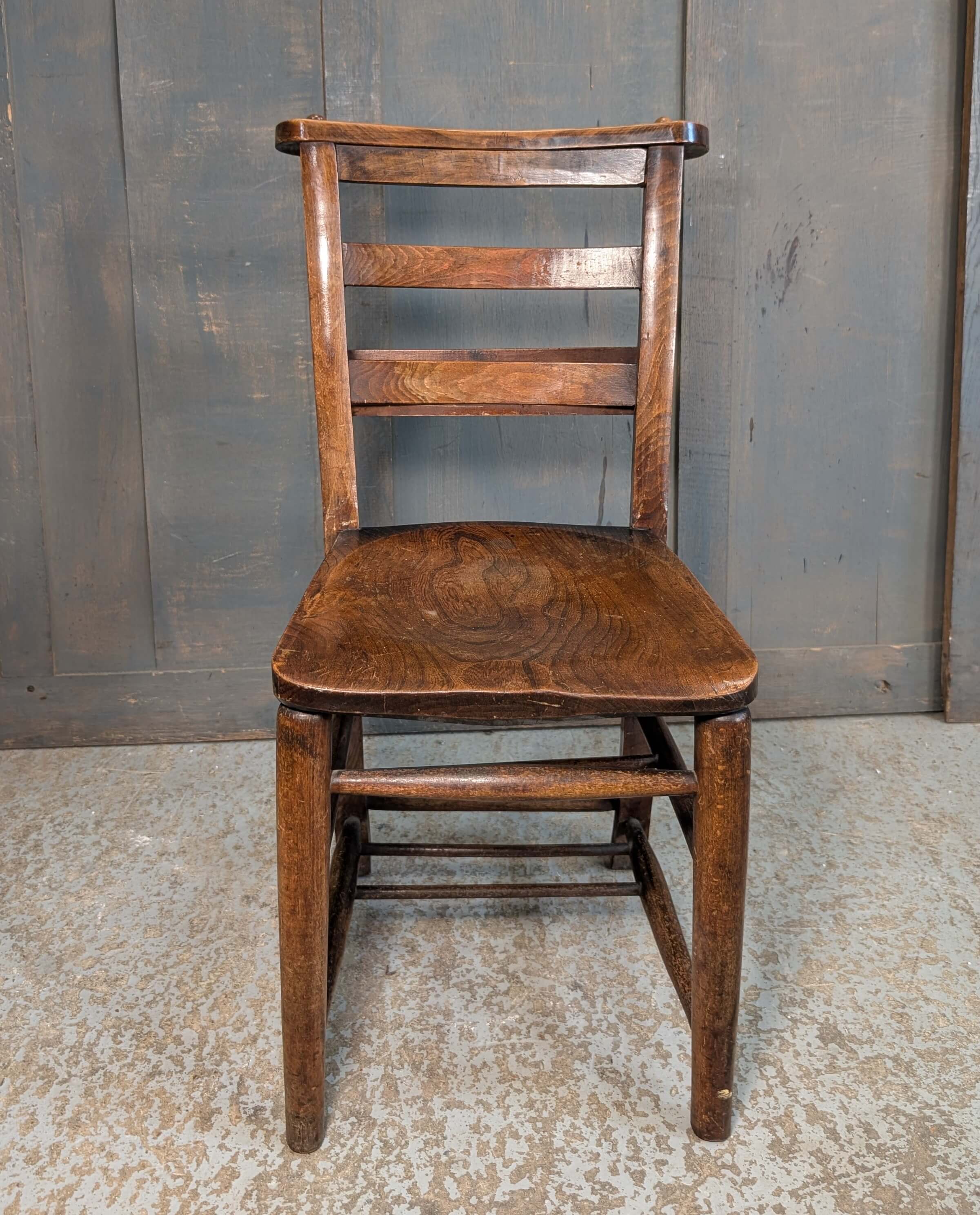 Top Notch 1903 Antique Elm & Beech Double Ladder Back Church Chapel Chairs