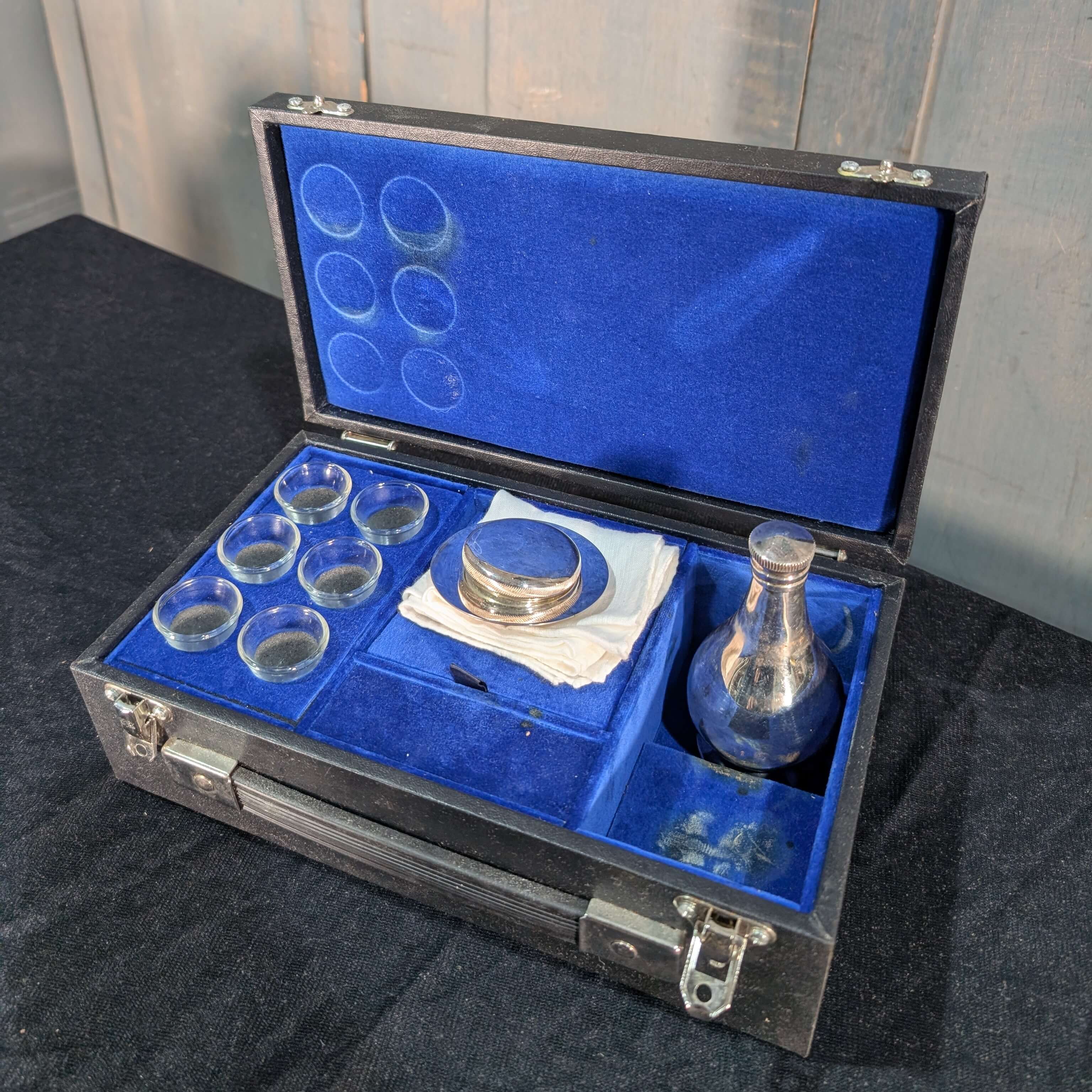 Our product shown on this page Travelling Communion Set with Six Glasses Wine Flask & Small PYX (SOLD) is currently available for hire.