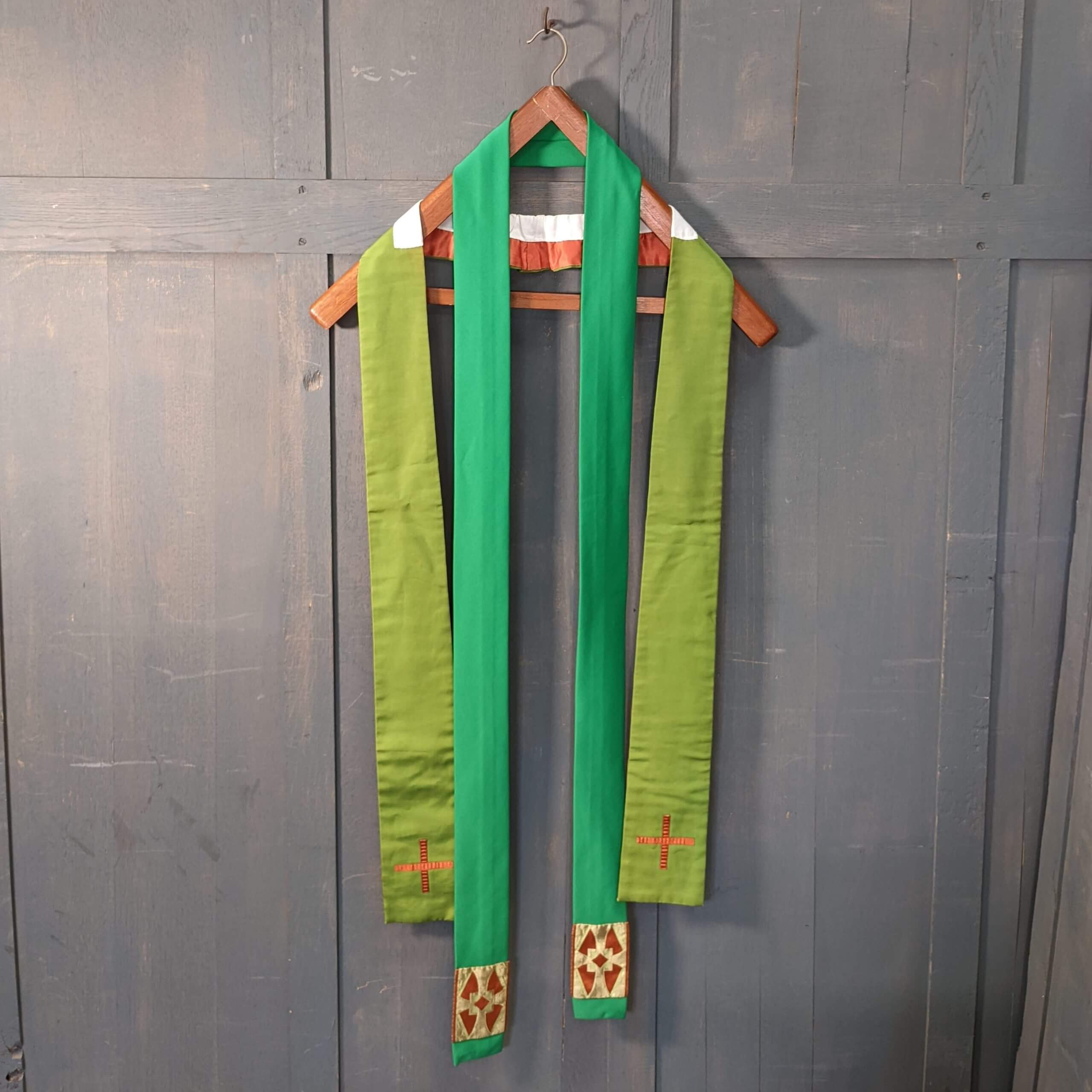 Two 1960’s Vintage Green Stoles with Crosses Simple & Stylised (SOLD)