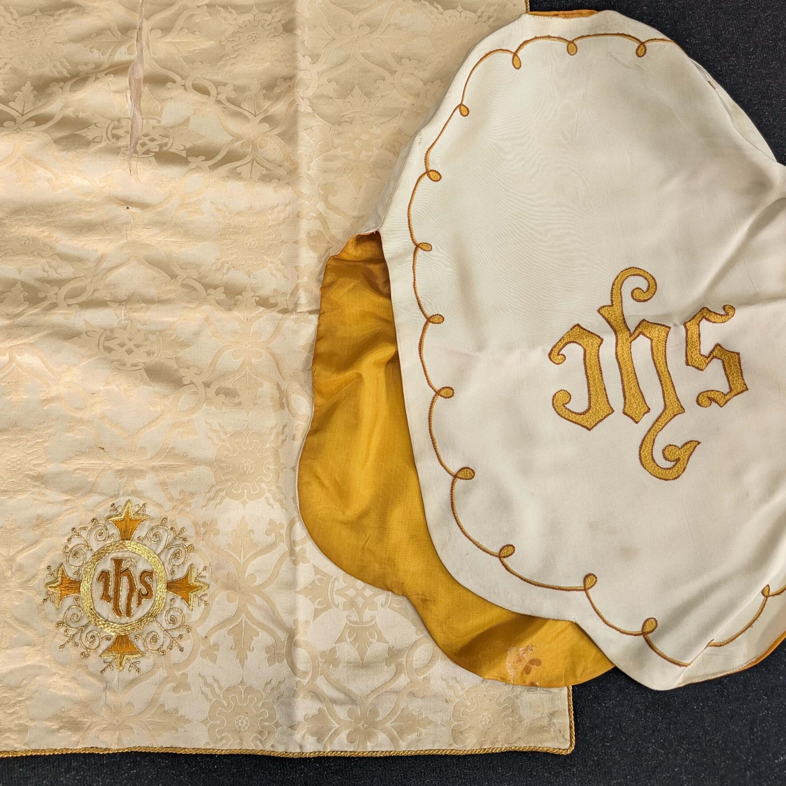Our product shown on this page Two Nice Example of Vintage Ecclesiastical Embroidery For Upcycling (SOLD) is currently available for hire.