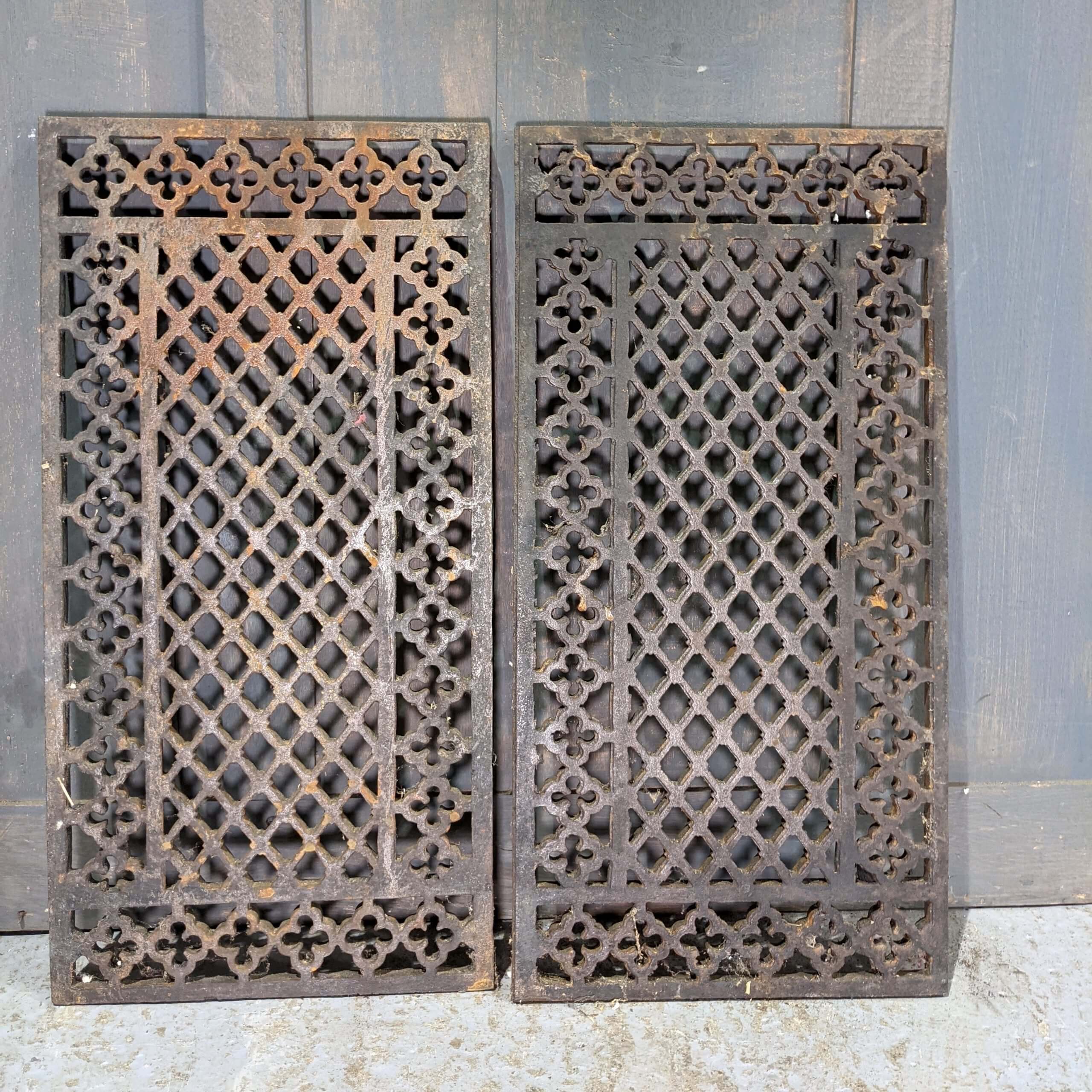 Two Smaller ‘Framed’ Antique Cast Iron Church Grills Gratings Panels (SOLD)