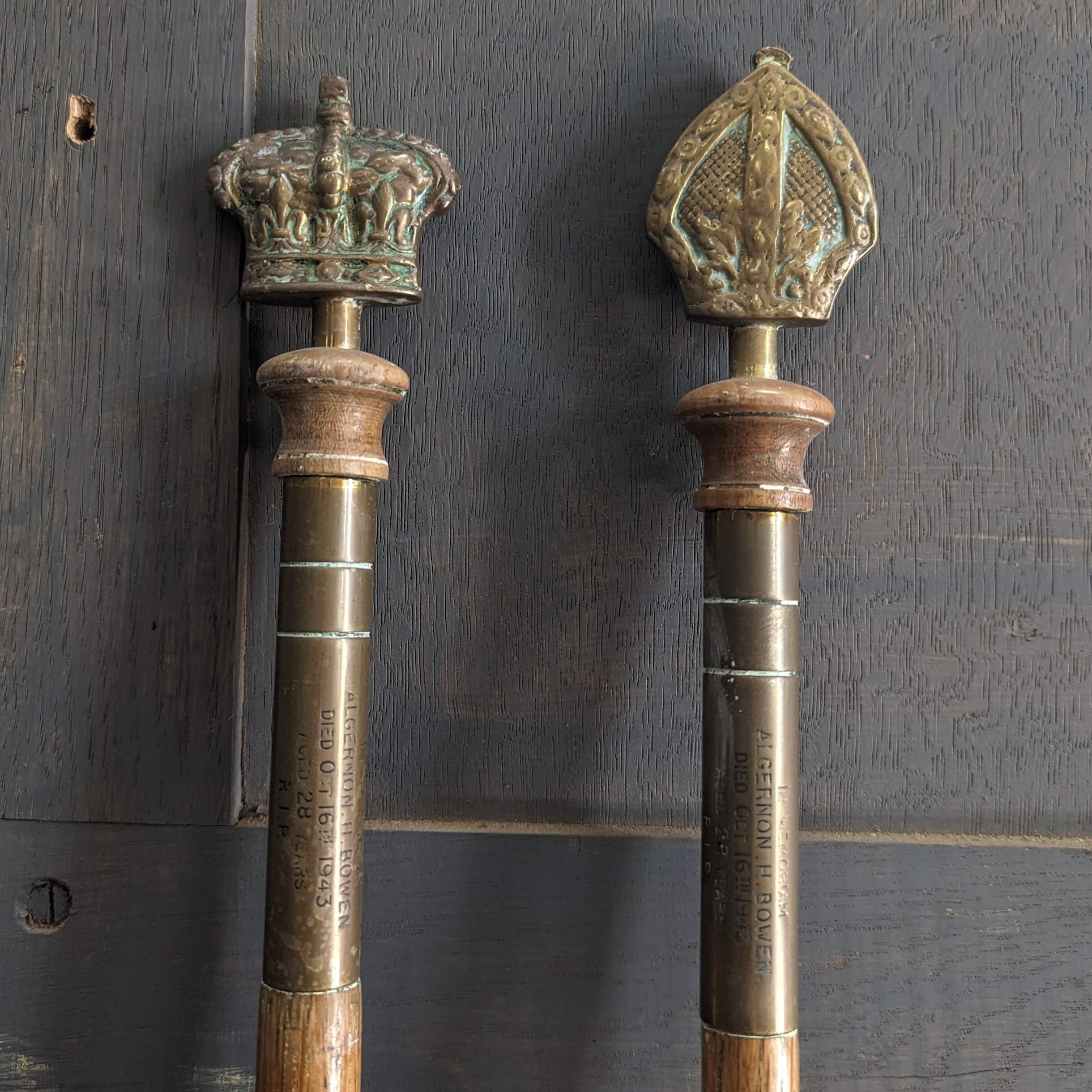 Our product shown on this page Unusual 1940’s Vintage Memorial Oak & Brass Wardens Staves Virges Verges (SOLD) is currently available for hire.