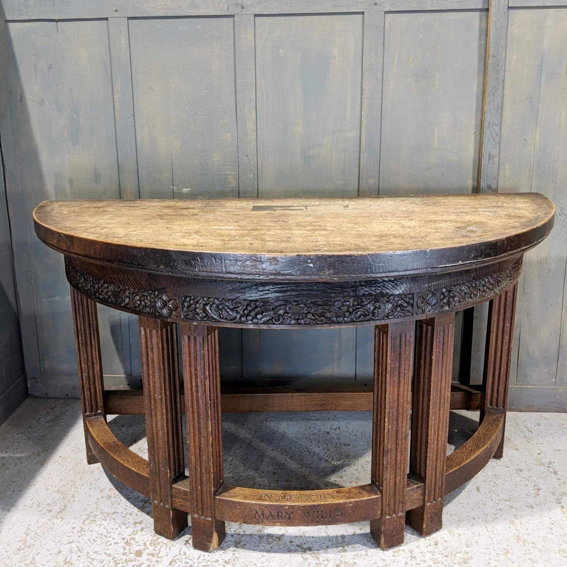 Unusual Antique Carved Demi Lune Heavy Oak Altar Sidetable from Plymouth (SOLD)