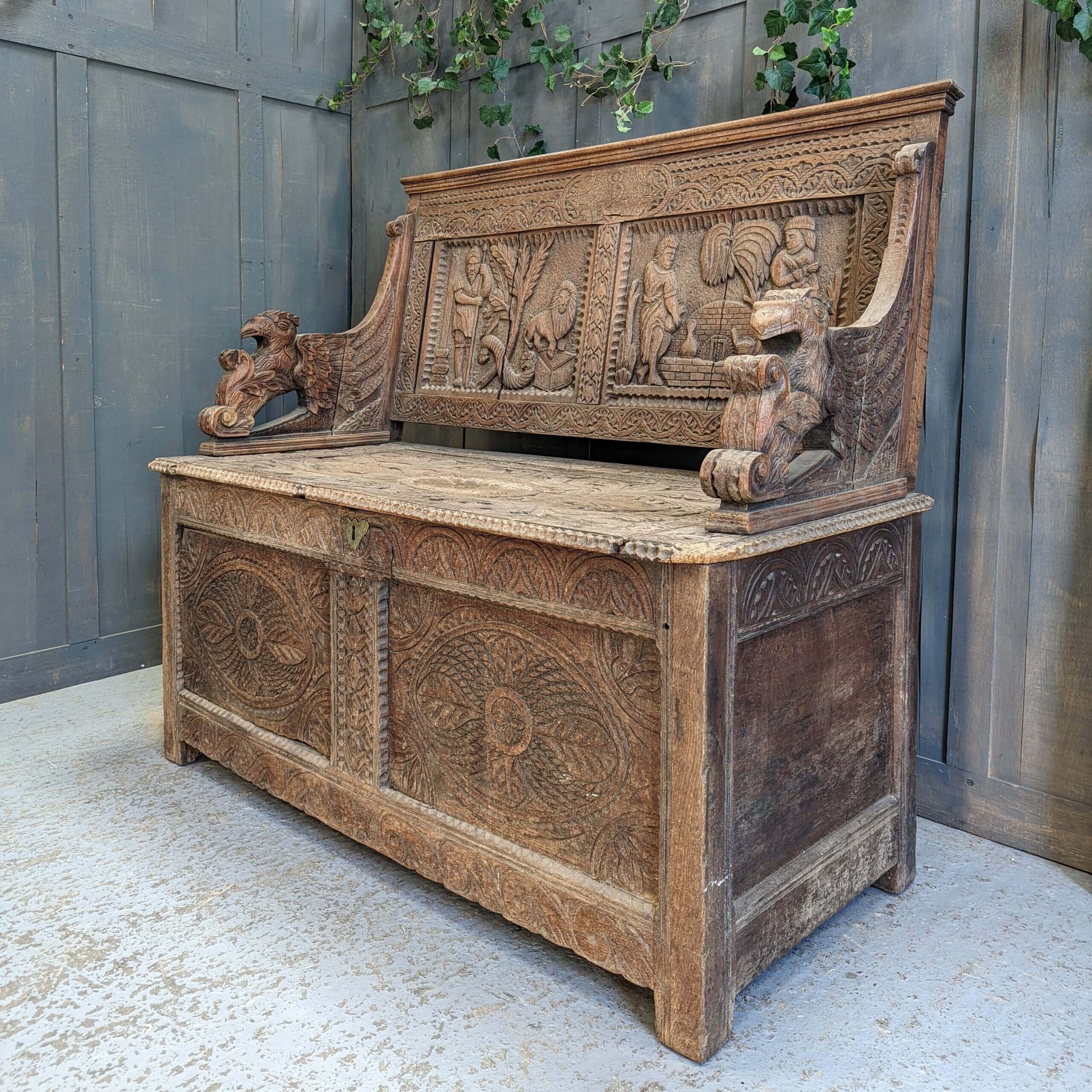 Our product shown on this page Unusual Antique Carved Oak ‘Sumerian Scenes’ Monks Bench with Slide Out Seat (SOLD) is currently available for hire.