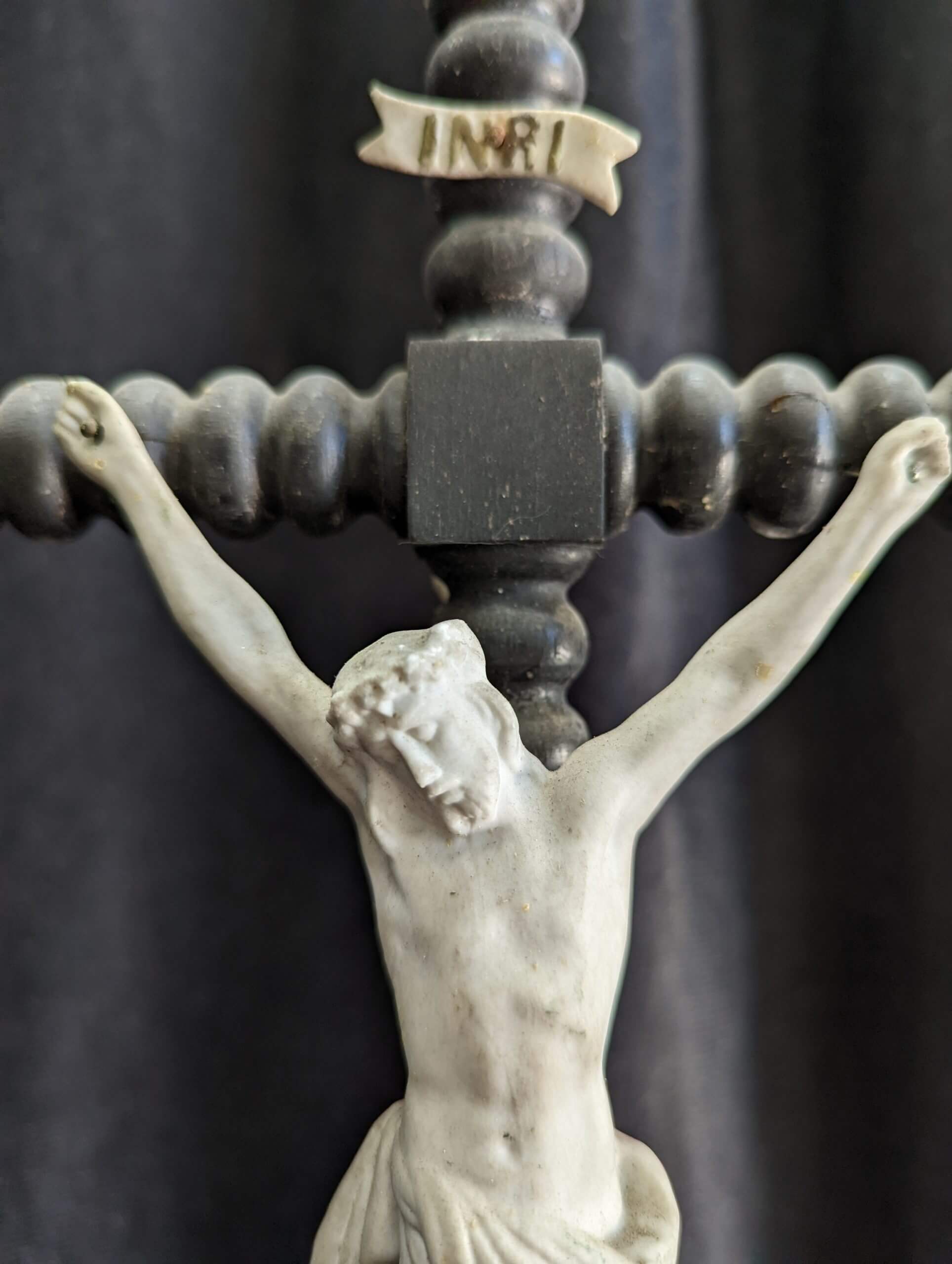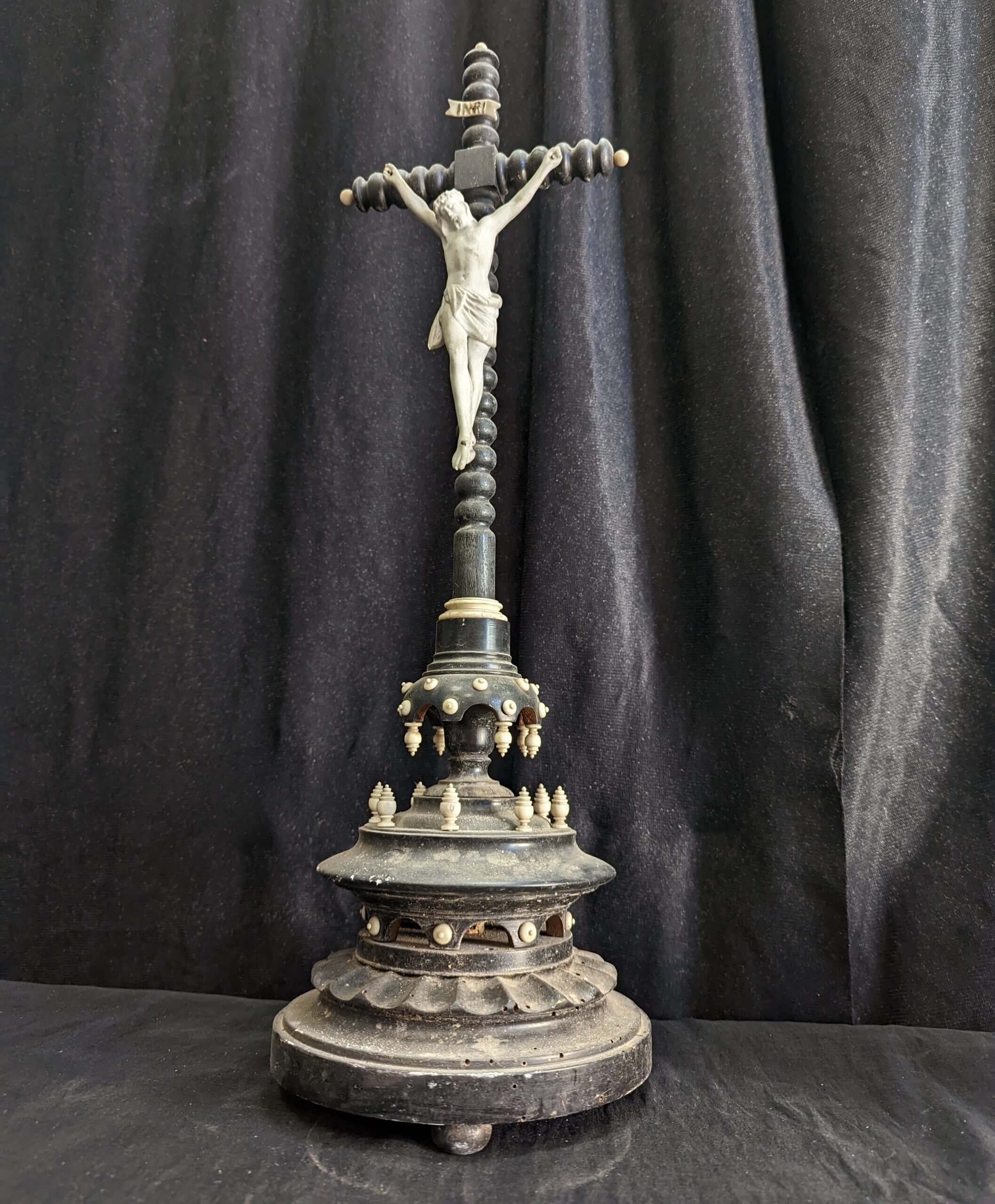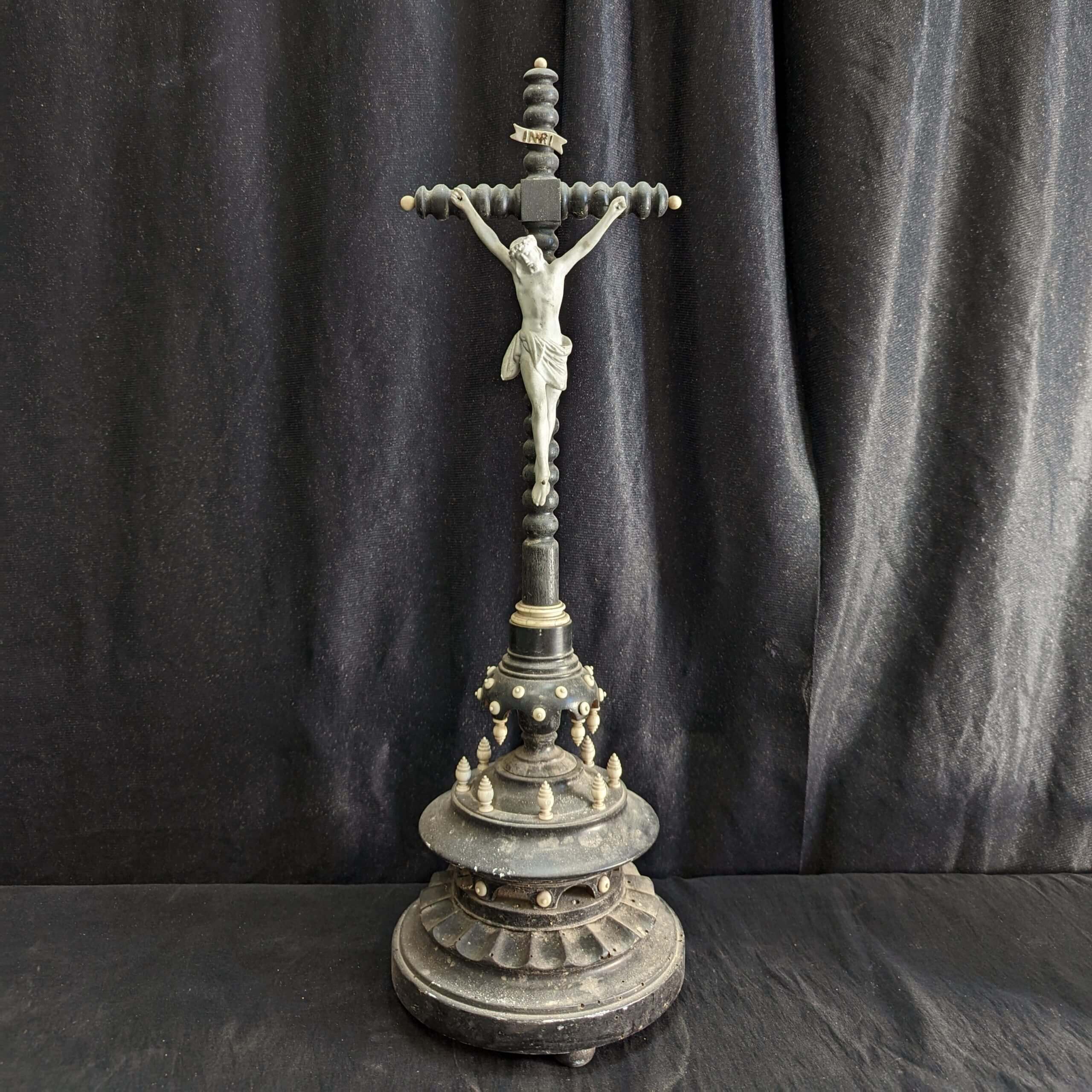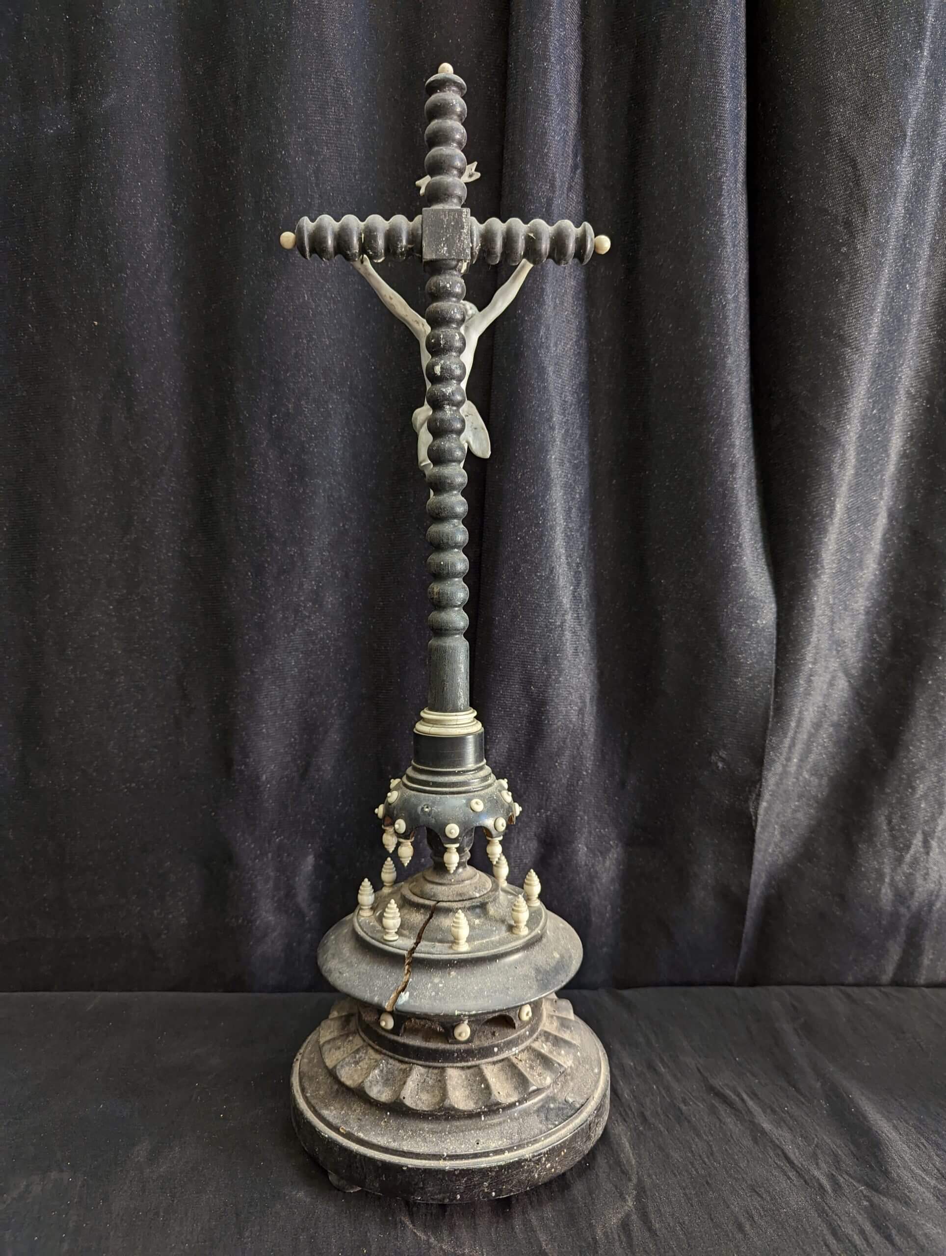 Our product shown on this page Unusual Antique French Black & White Crucifix with Bobbin Cross is currently available for hire.