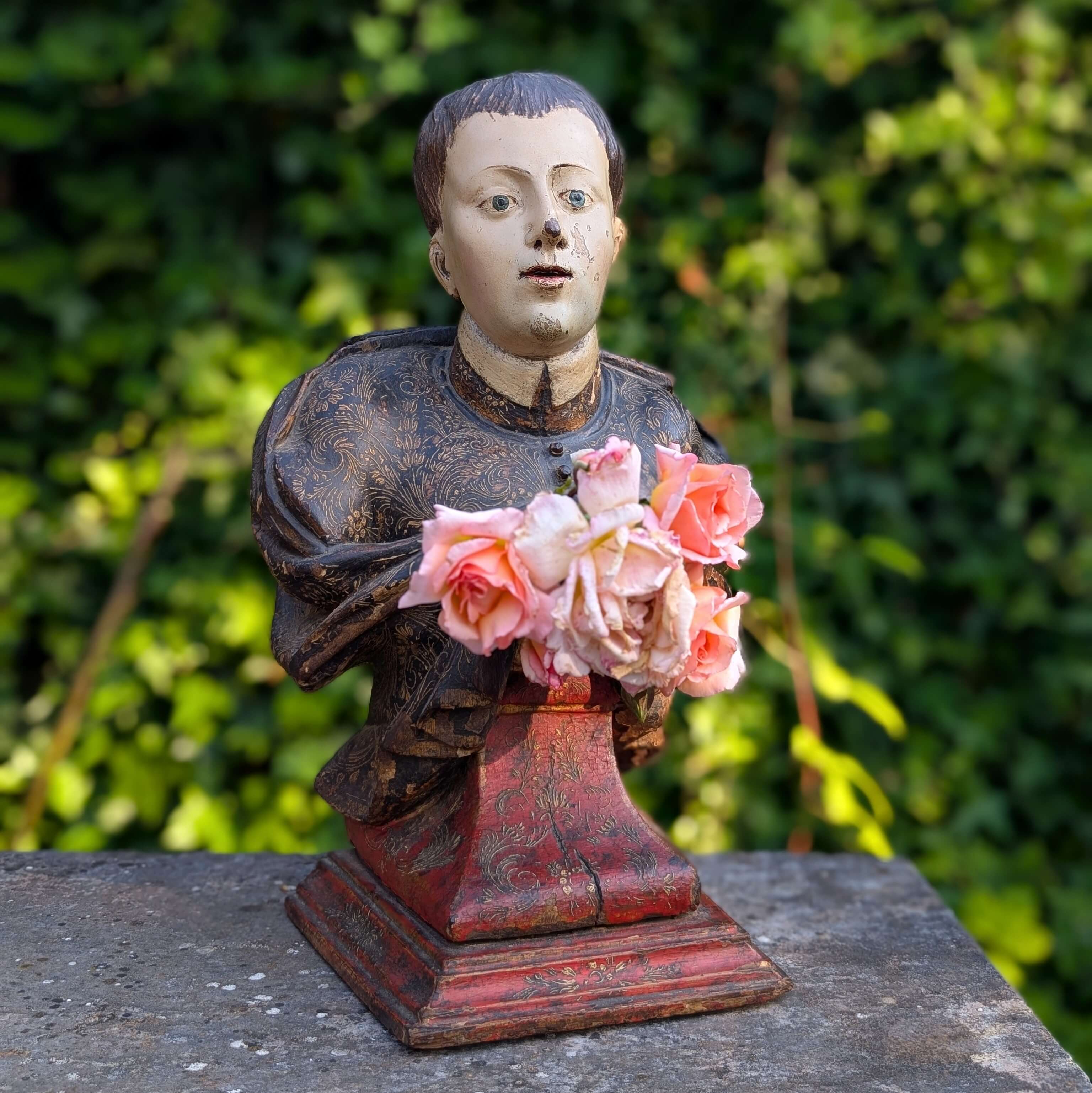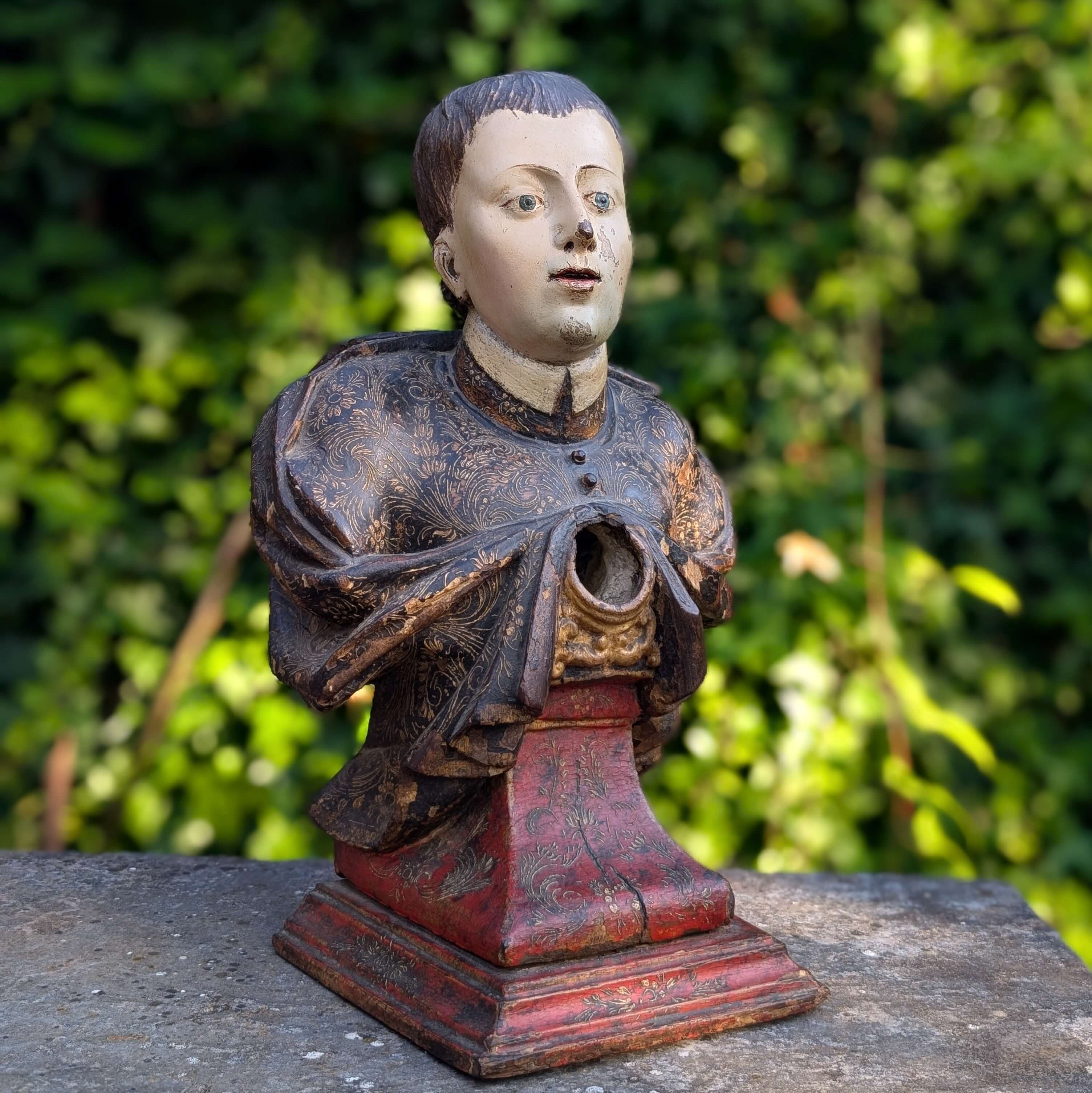 Our product shown on this page Unusual Early 19th Century Carved Polychrome Reliquary Bust of St Dominic is currently available for hire.