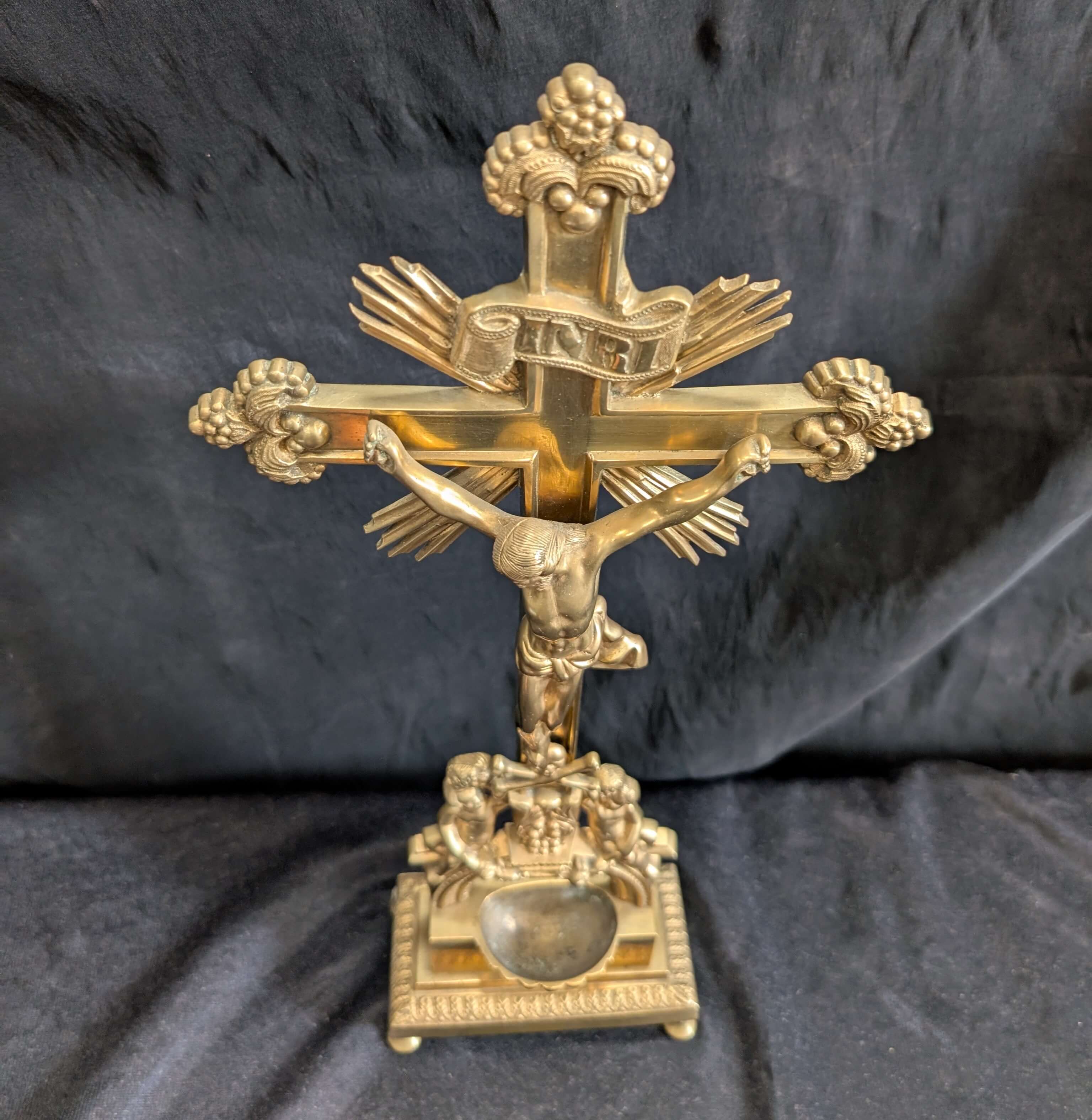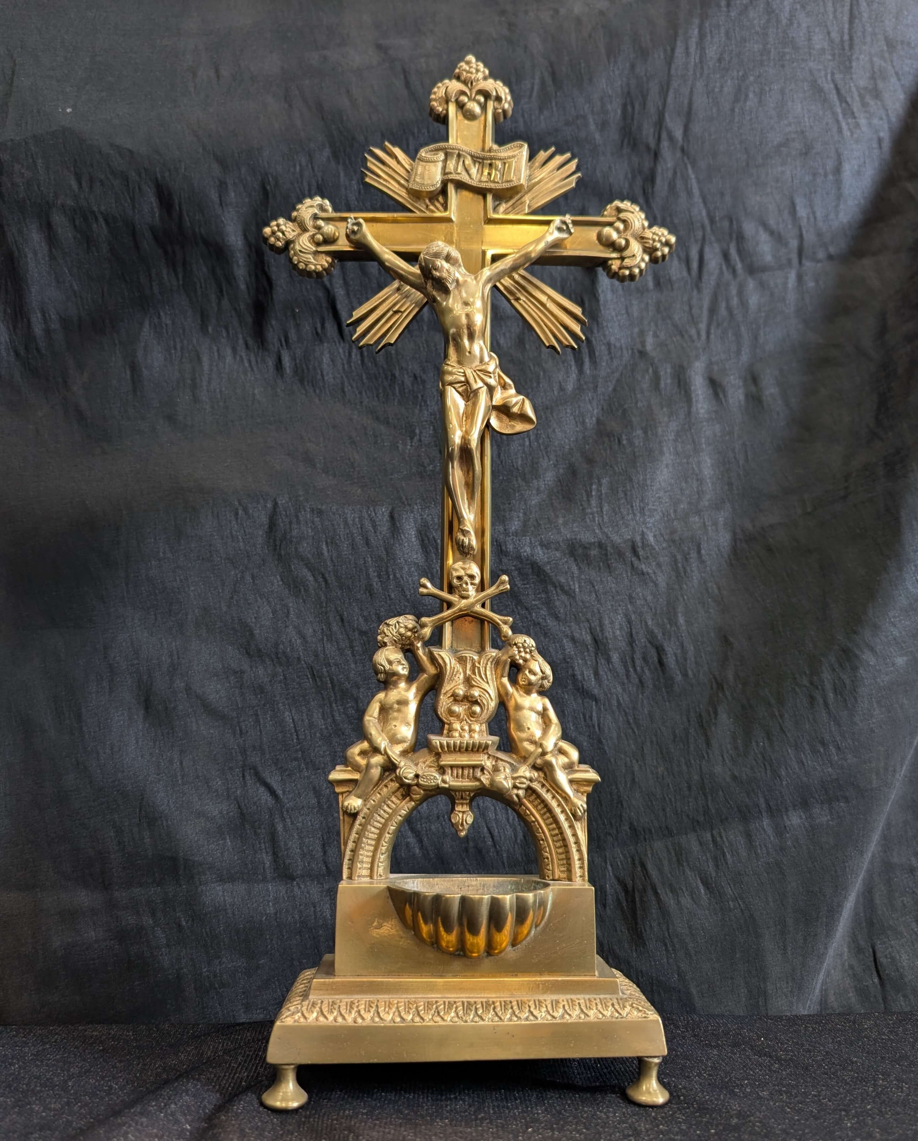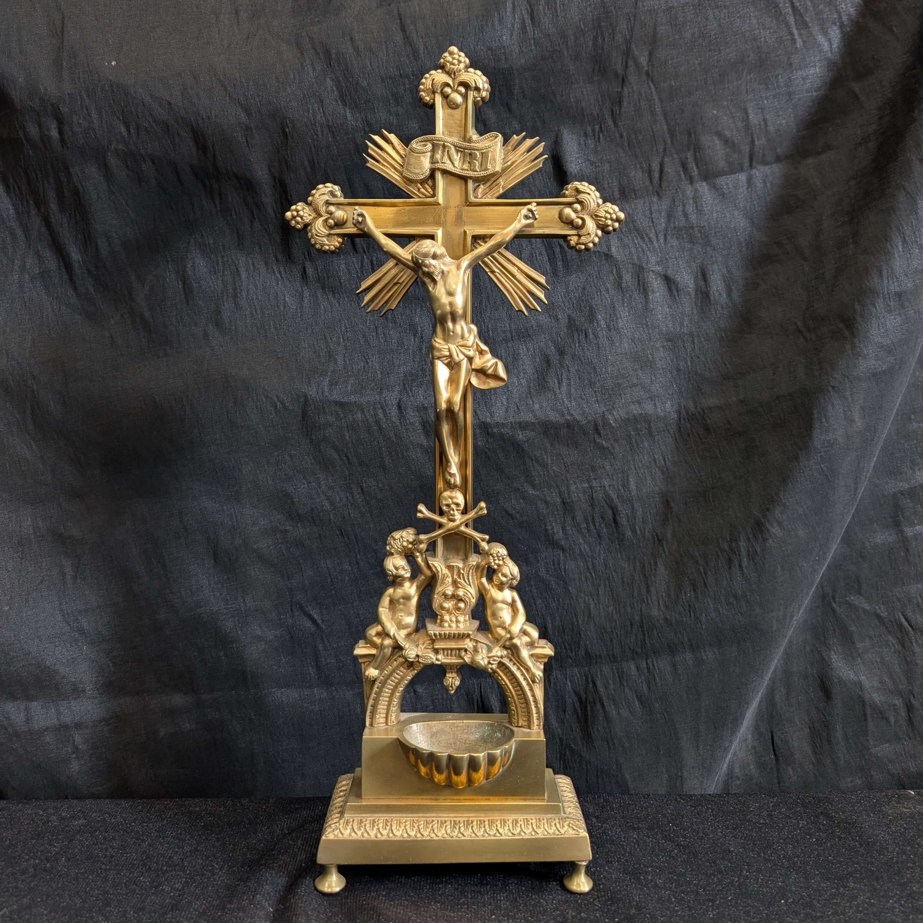 Our product shown on this page Unusual High Quality Late 19th Century Brass & Gilt Bronze Ormolu Standing Holy Water Font Piscina is currently available for hire.