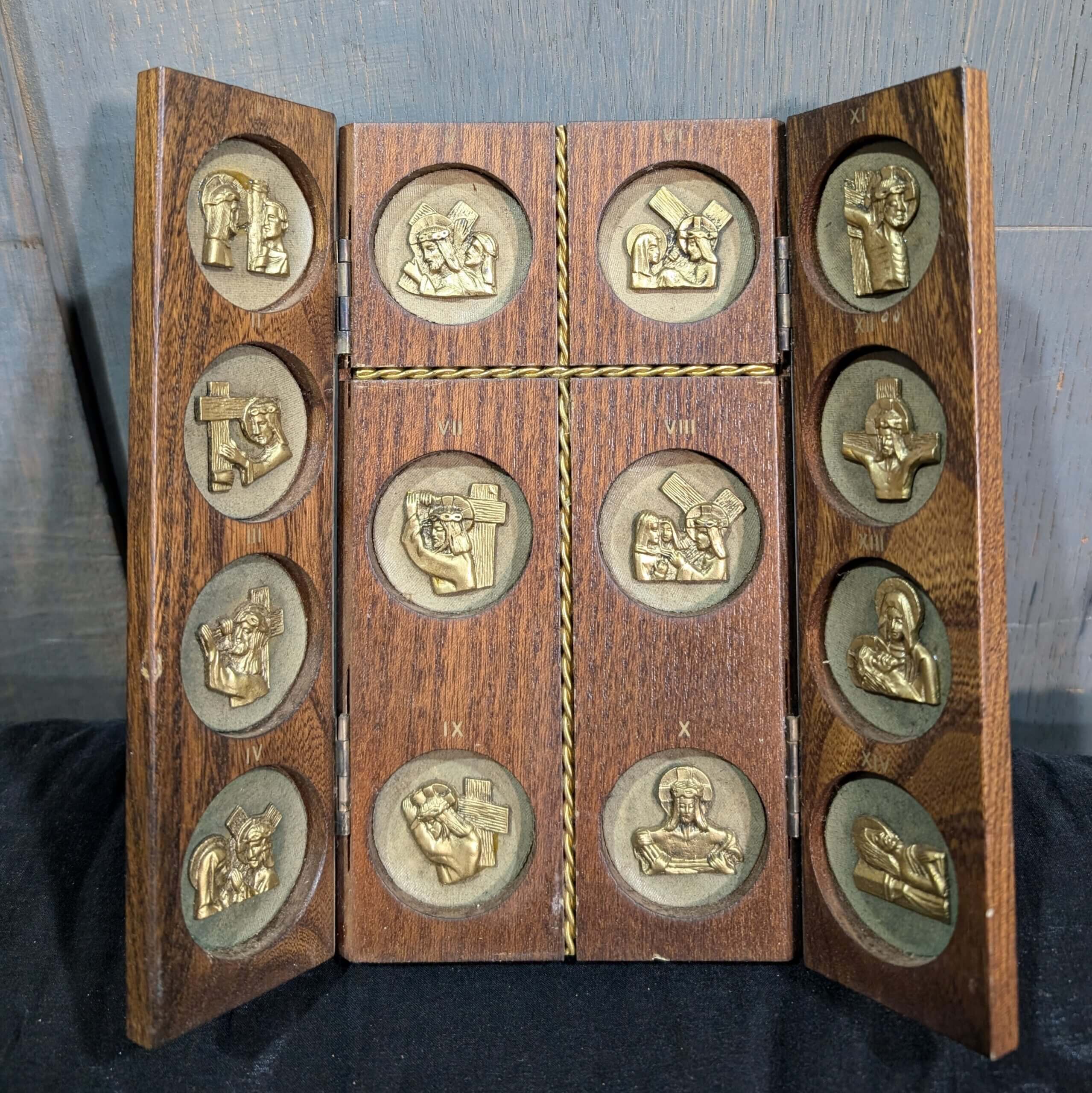 Our product shown on this page Unusual Italian Teak & Metal Pocket Triptych Stations of the Cross (SOLD) is currently available for hire.