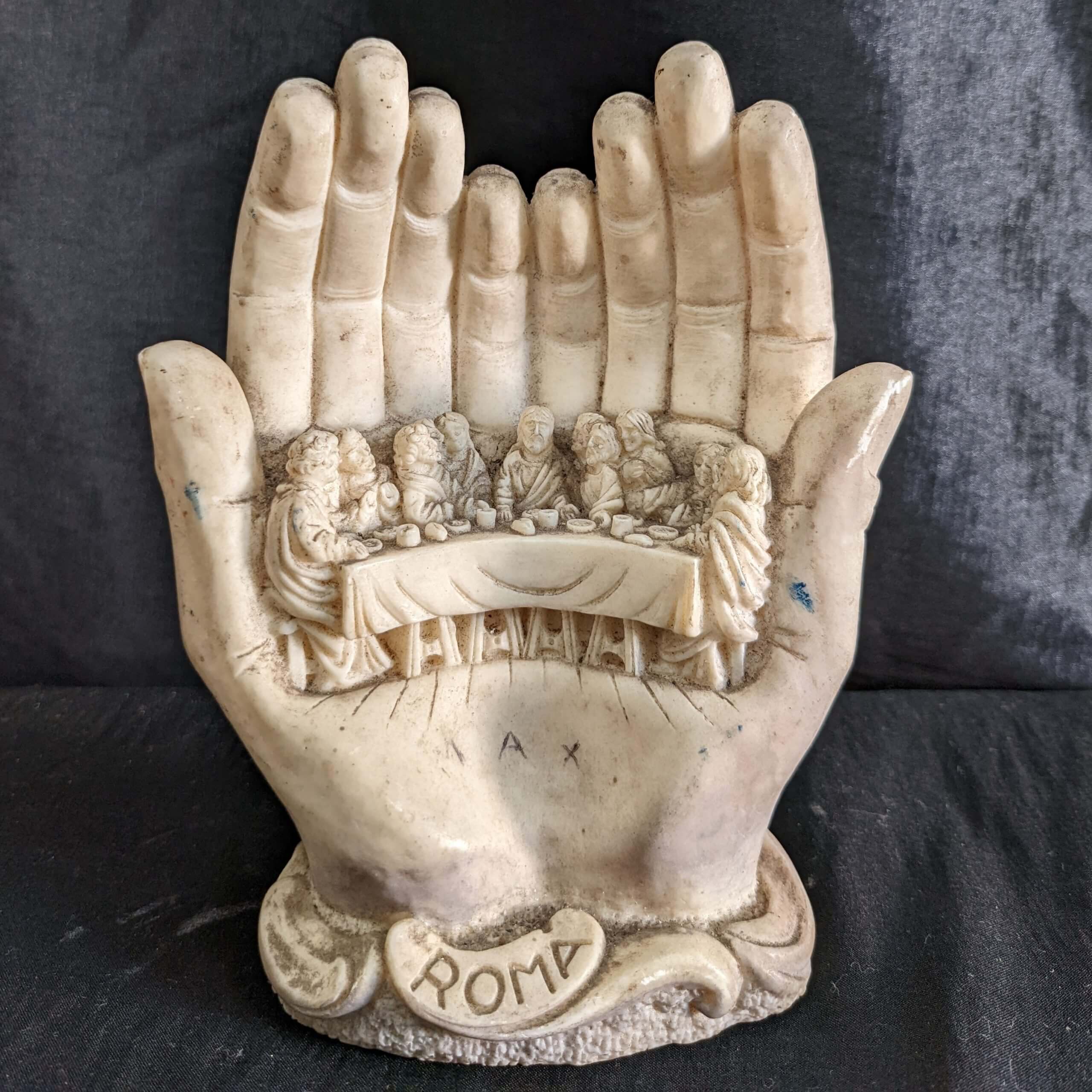 Our product shown on this page Unusual Vintage Souvenir of Rome Last Supper in Cupped Hands (SOLD) is currently available for hire.