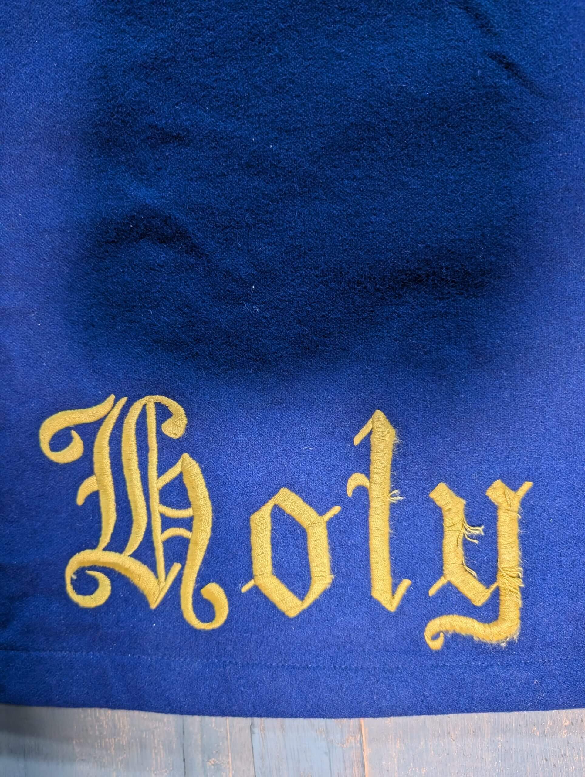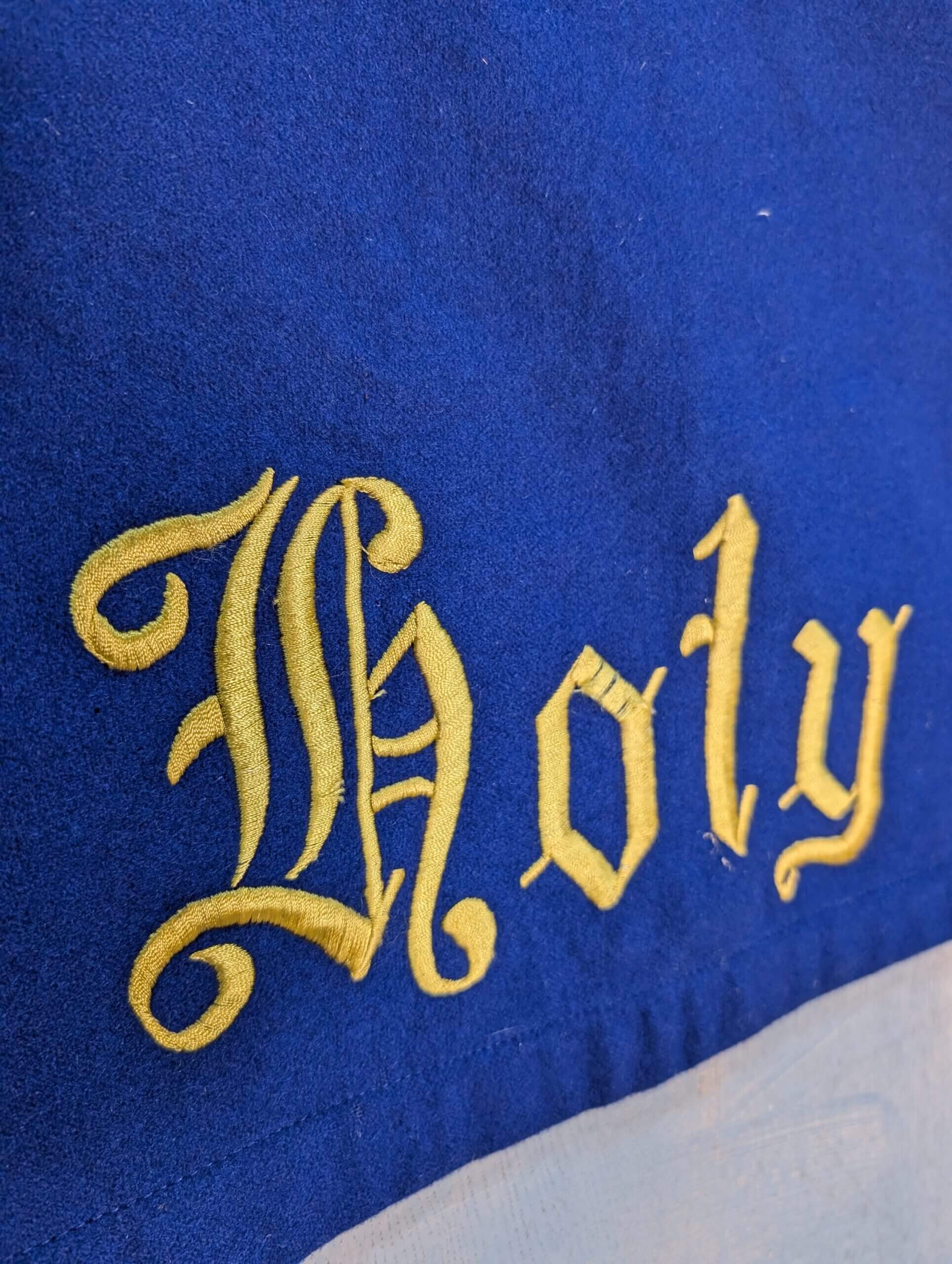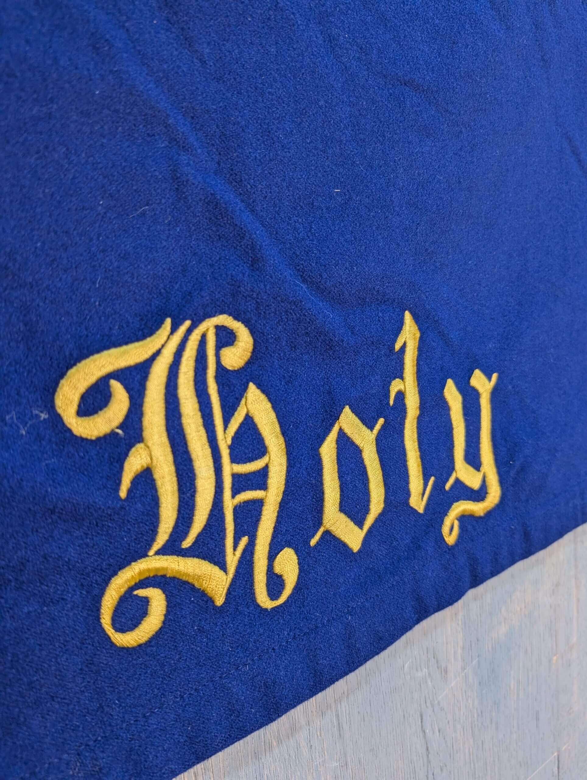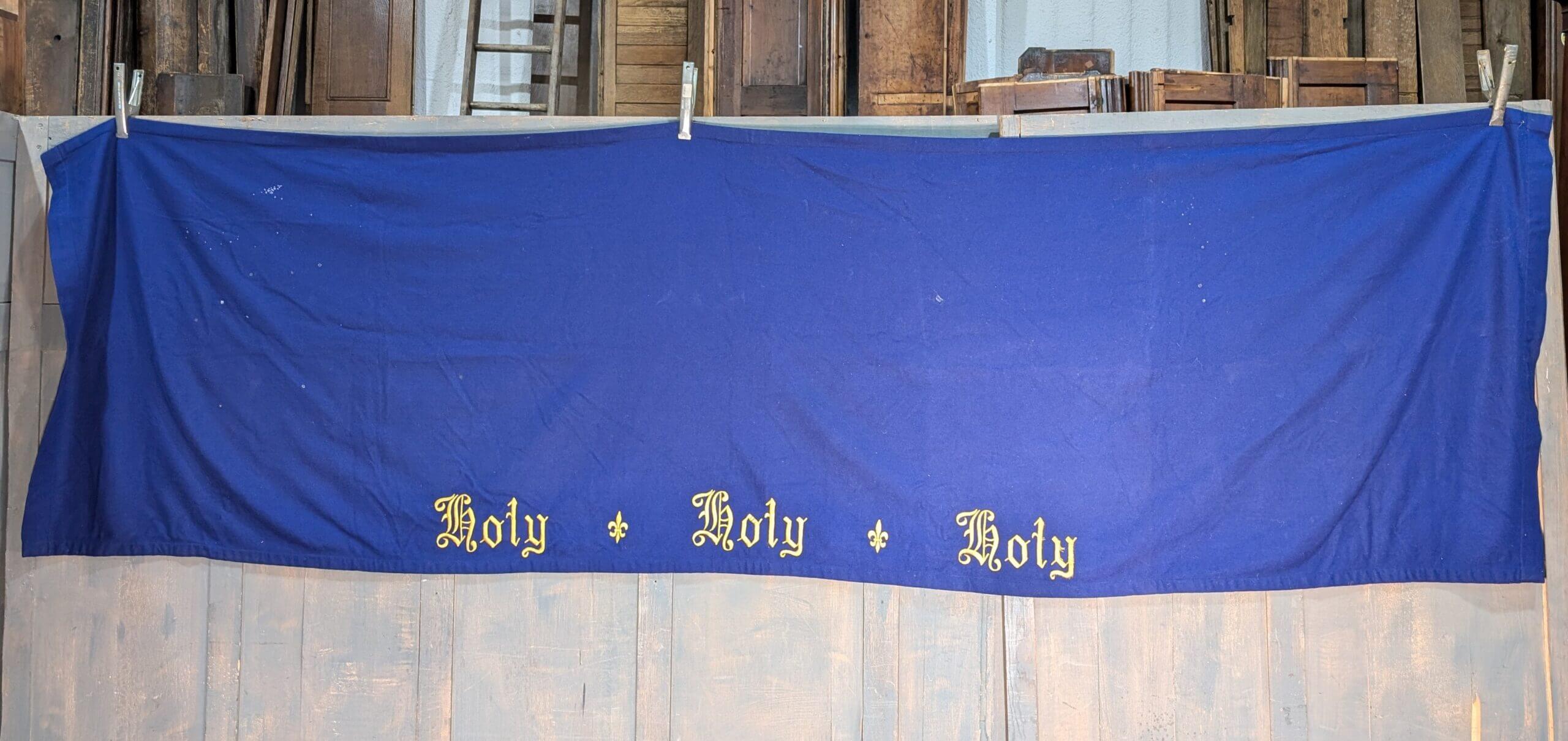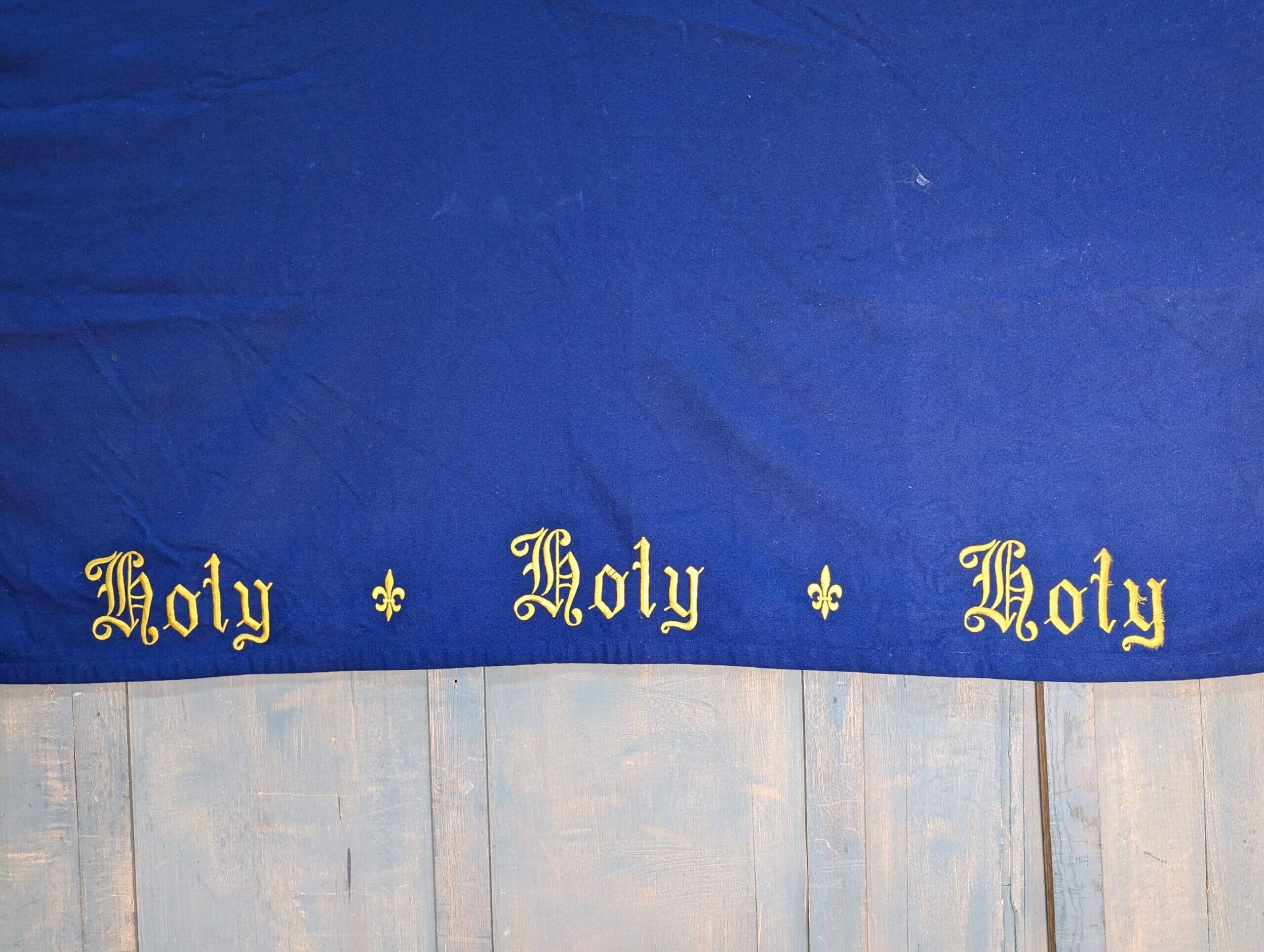 Our product shown on this page Very Large Holy Holy Holy Blue Altar Hanging Project is currently available for hire.