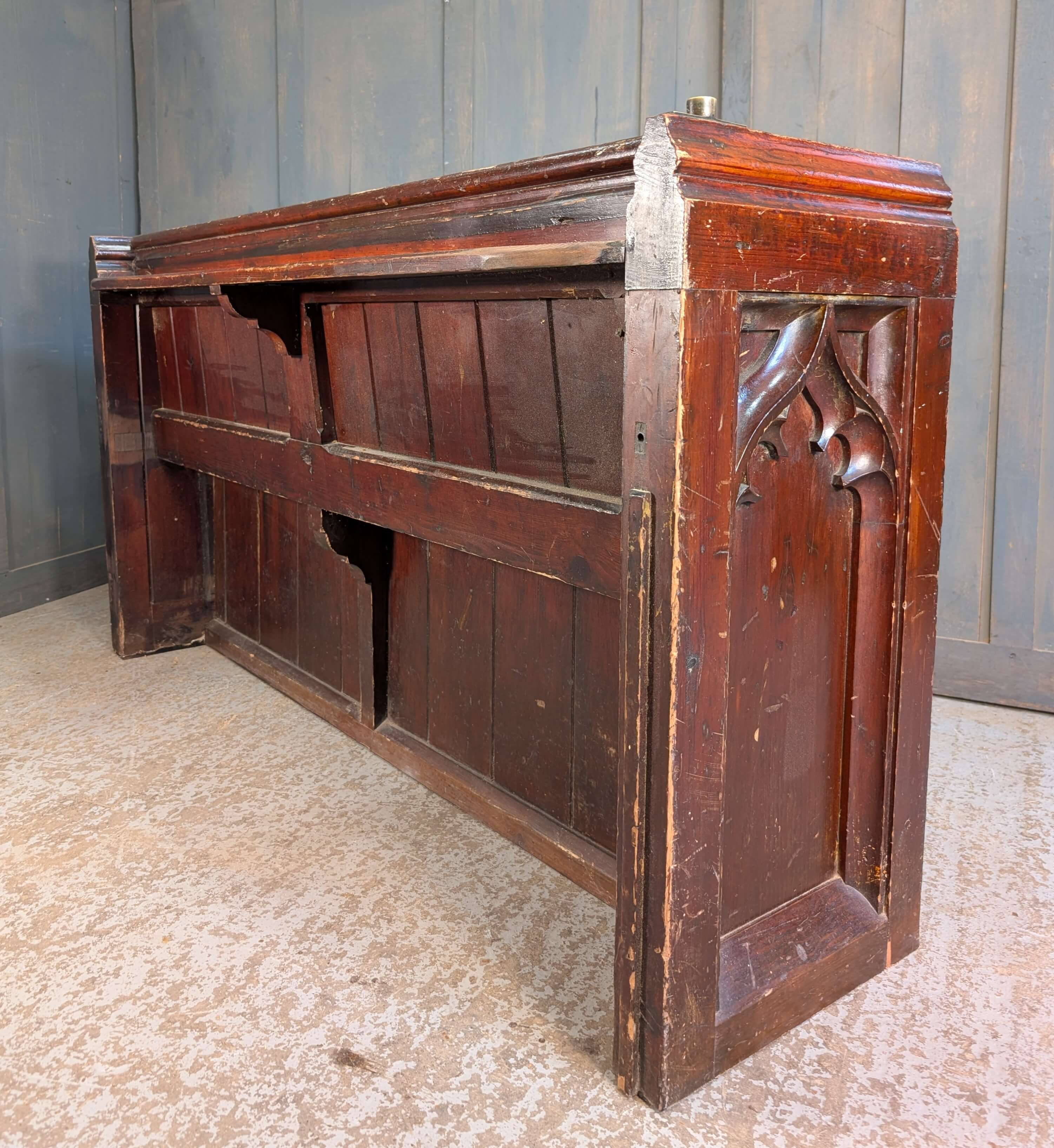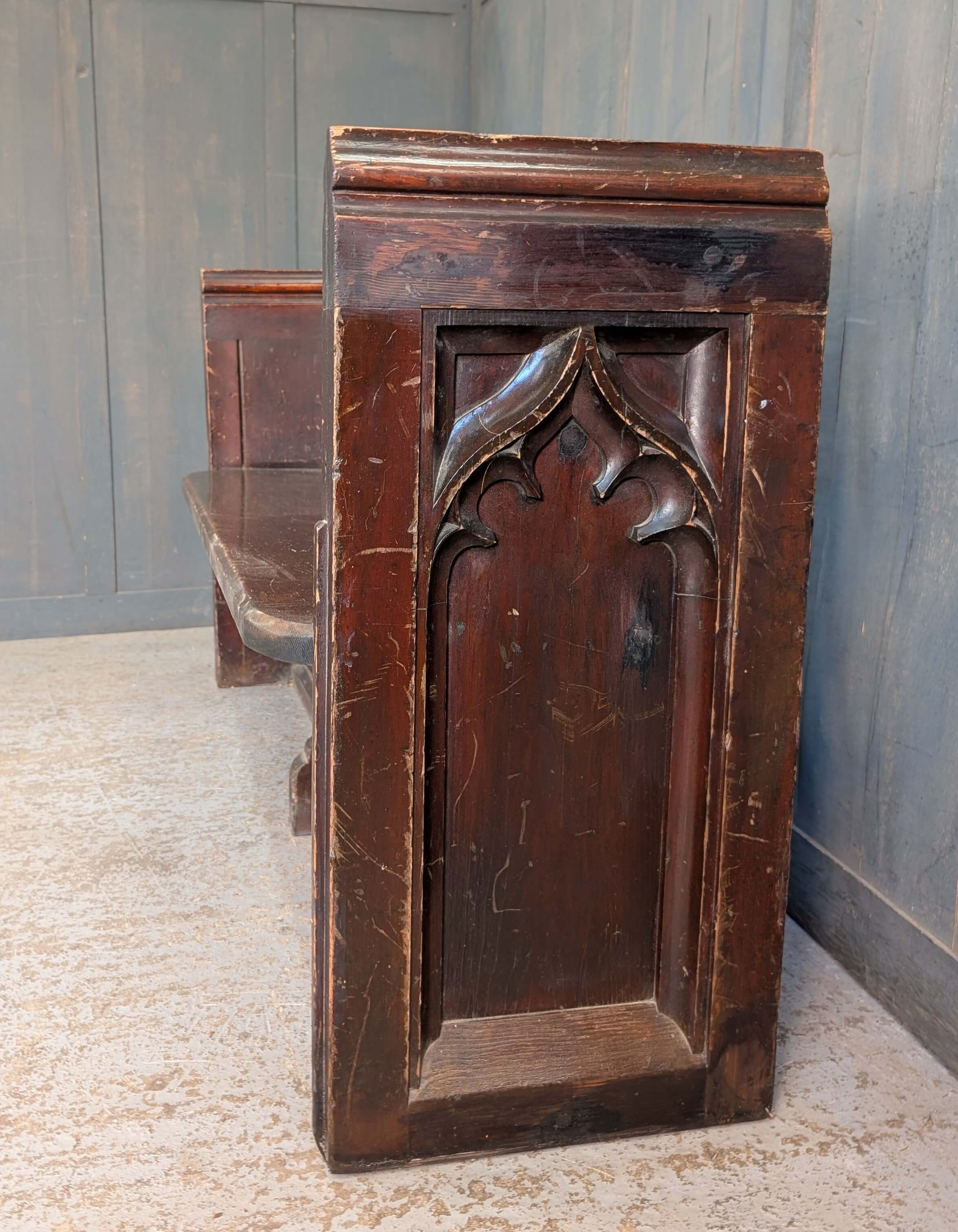 Our product shown on this page Victorian Pine Gothic Square Ended Solid Back Church Chapel Pews Benches is currently available for hire.