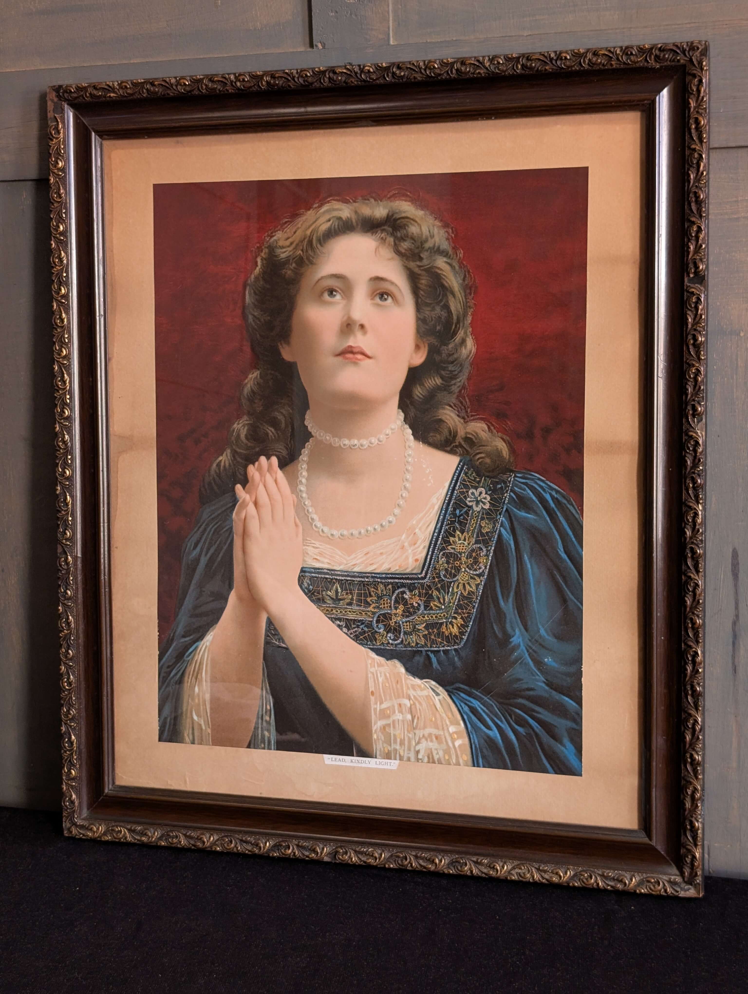 Our product shown on this page Victorian Praying Woman Religious Pin-Up ‘Lead Kindly Light’ is currently available for hire.