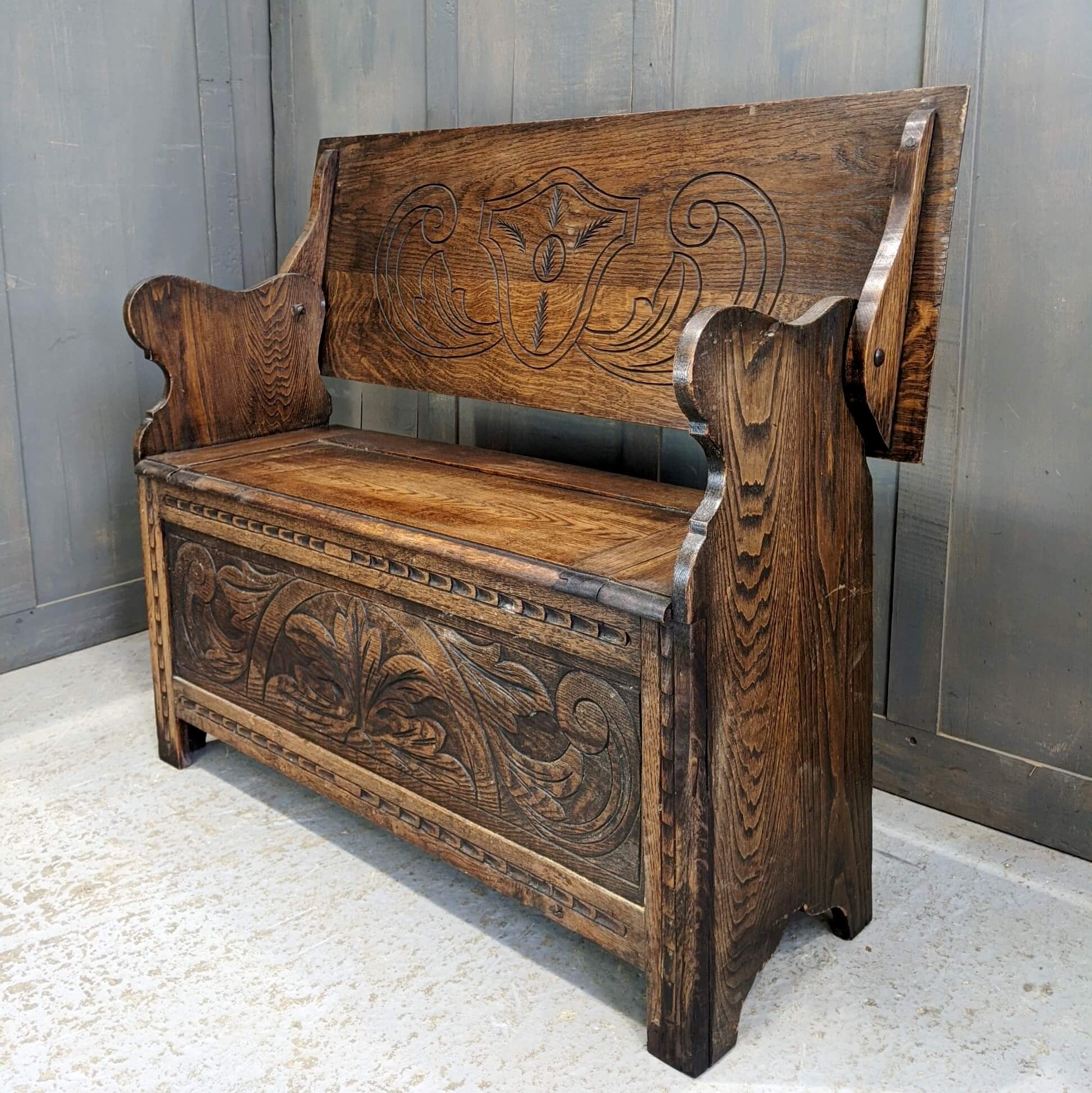 Our product shown on this page Vintage 18th Century Style Oak Monks Bench with Shaped Arm Rests (SOLD) is currently available for hire.