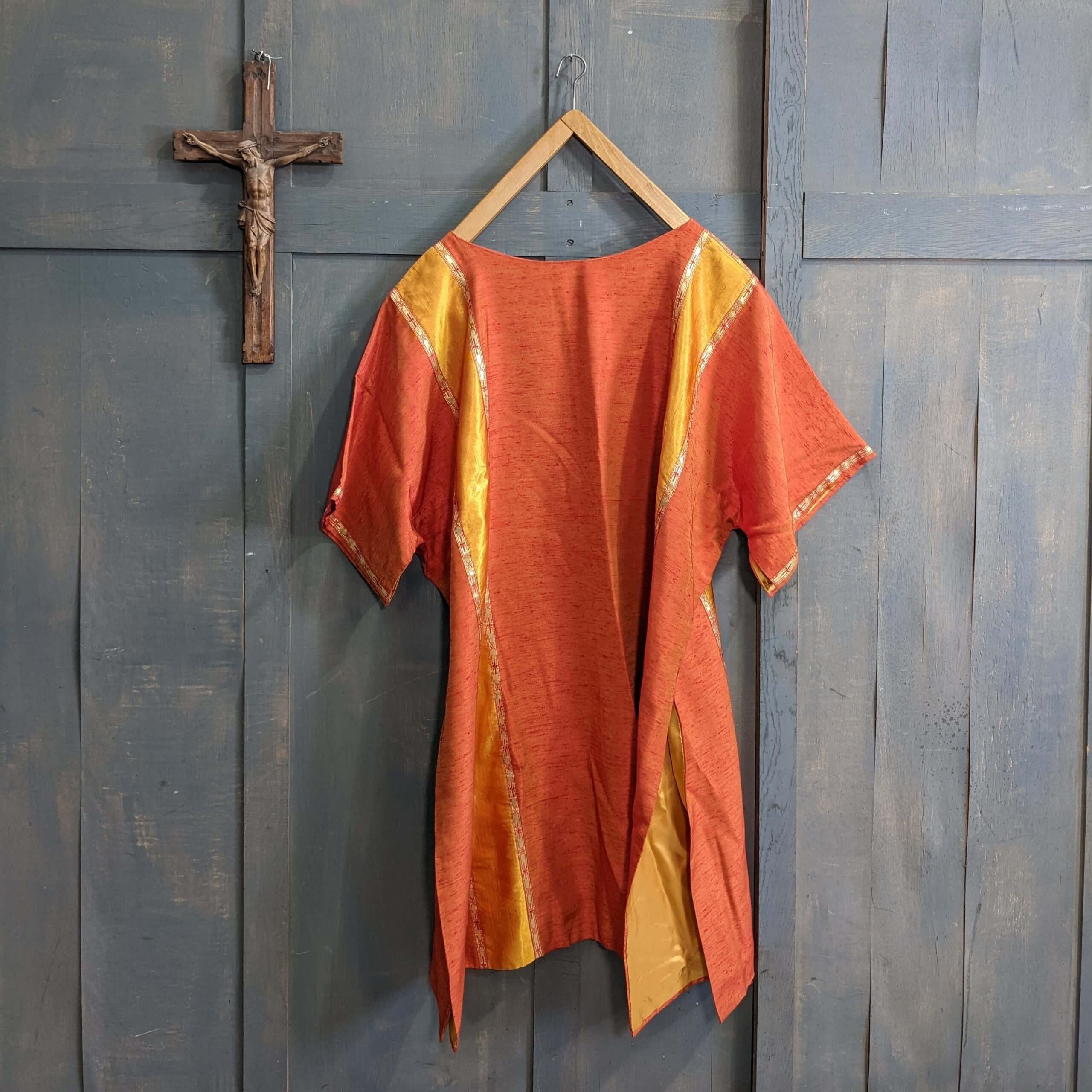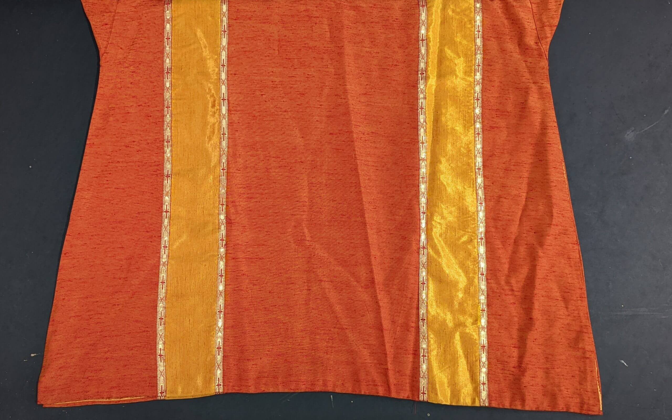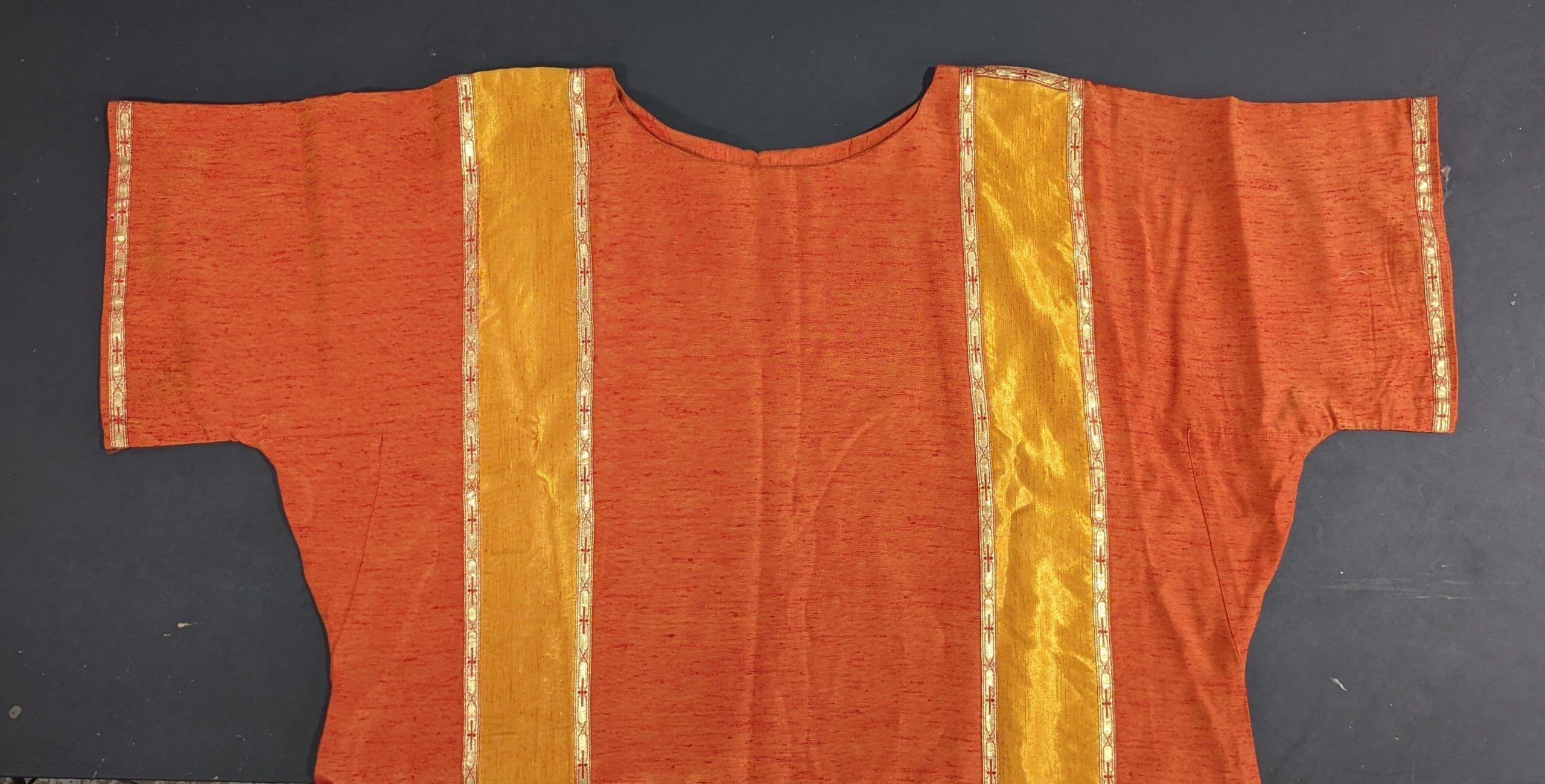 Our product shown on this page Vintage 1970’s Orange & Yellow Shot Silk Dalmatic with Orphreys is currently available for hire.