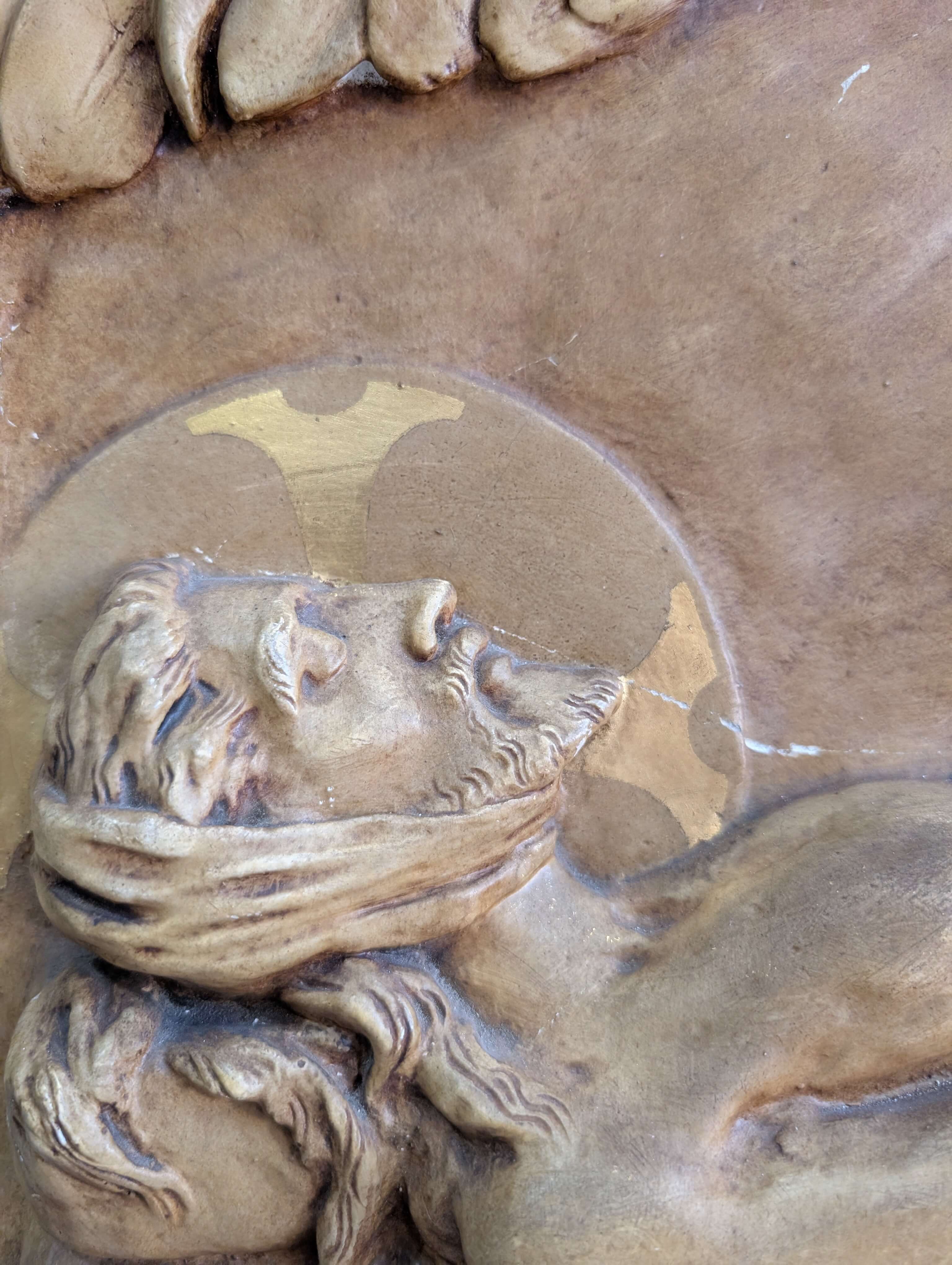 Our product shown on this page Vintage Decorative Framed Plaque of Christ in the Tomb Prayed for by an Angel is currently available for hire.