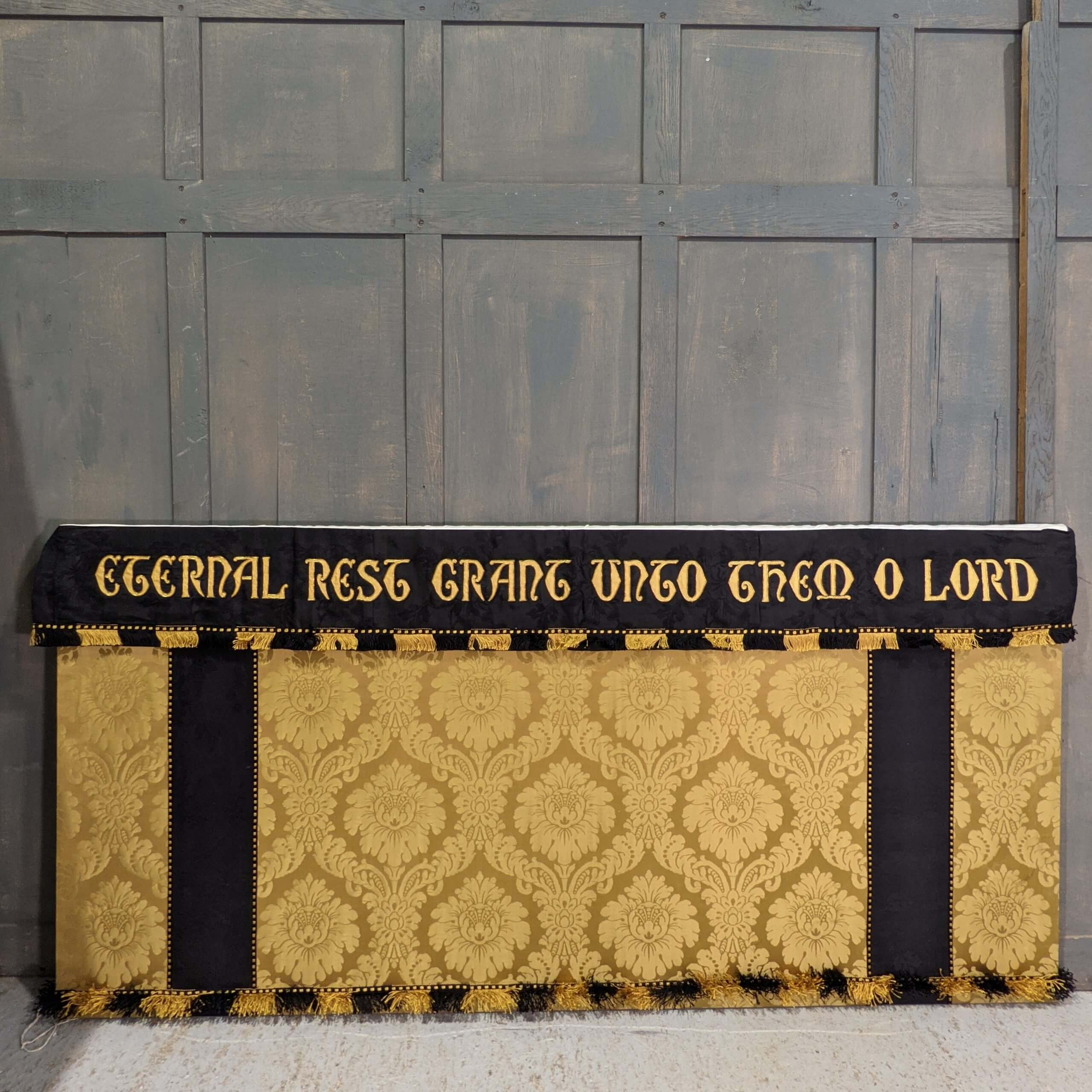 Our product shown on this page Vintage Gold & Black Damask Silk Funeral Altar Cloth with Superfrontal (SOLD) is currently available for hire.