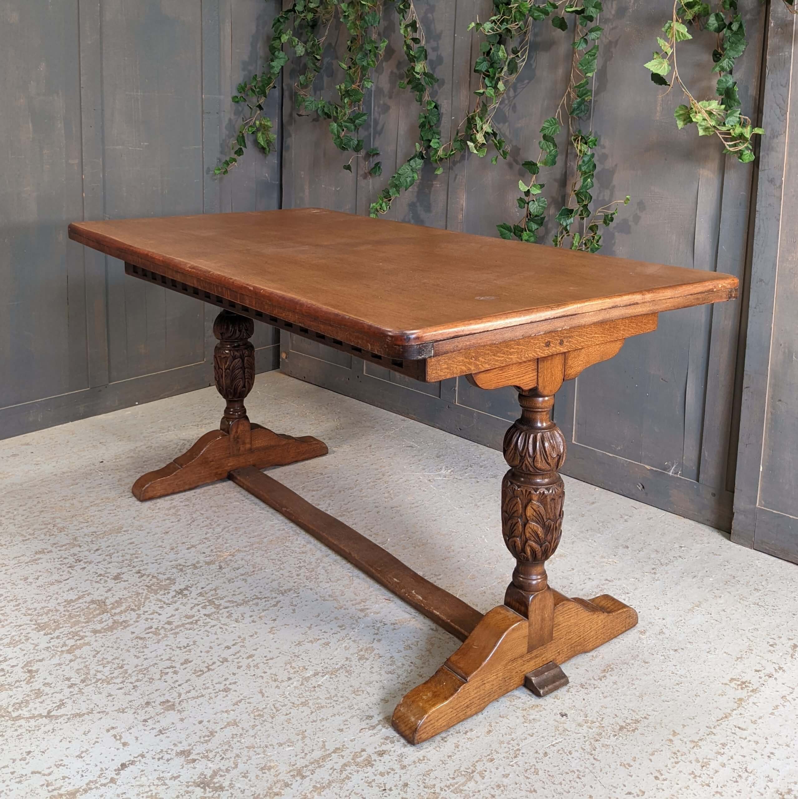 Our product shown on this page Vintage Solid Oak Refectory Dining Table with Carved Acanthus Baluster Legs (SOLD) is currently available for hire.