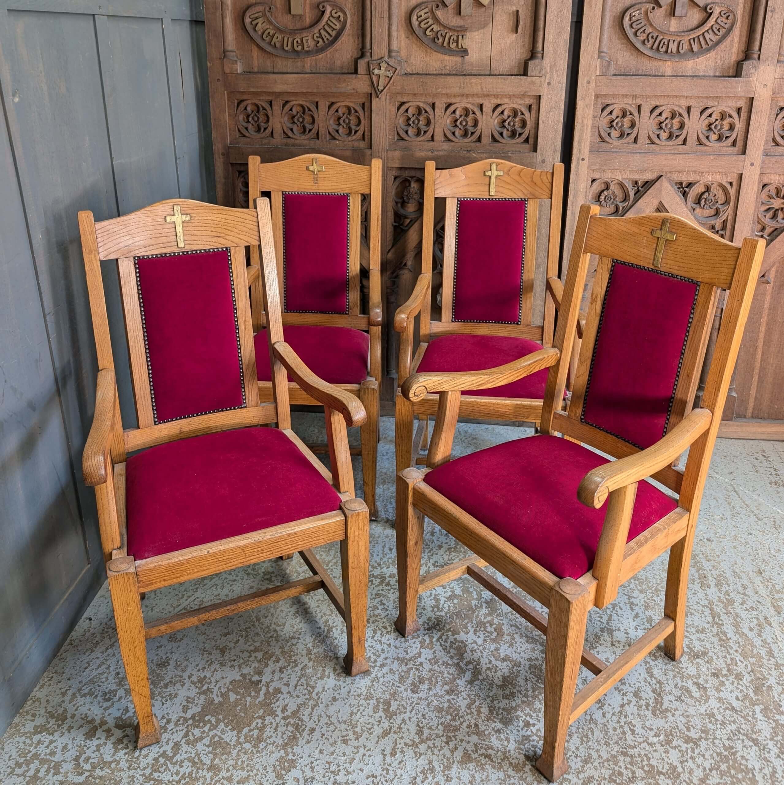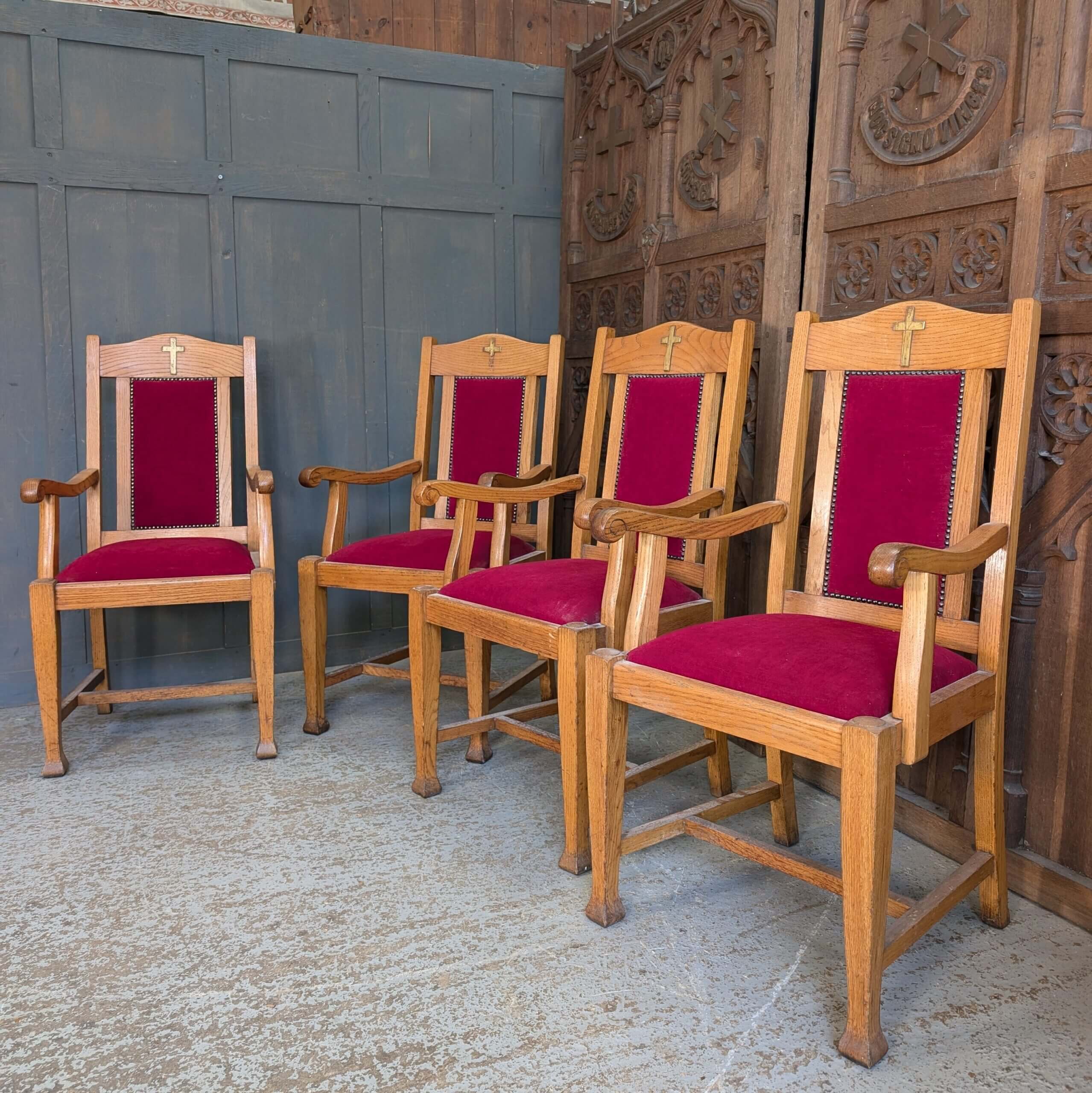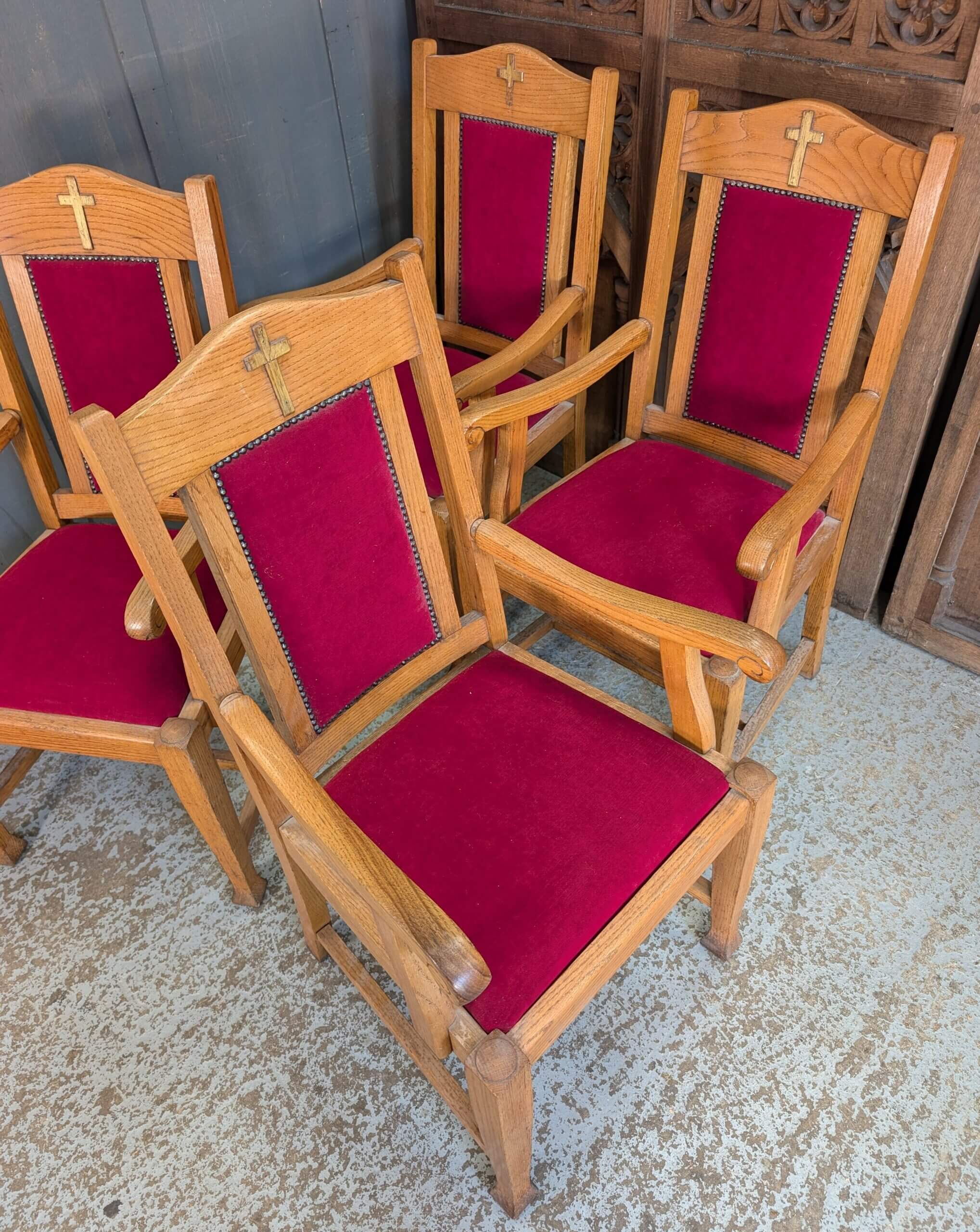 Our product shown on this page Well Made Mid-Century Oak Red Upholstered Clergy Chairs is currently available for hire.