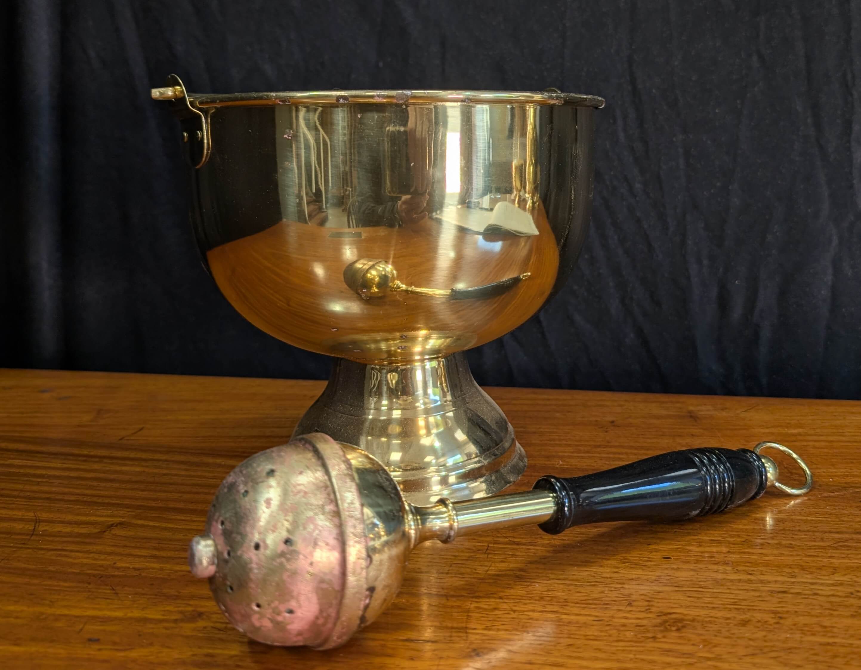 Our product shown on this page Well Used Large Holy Water Vat Pail Pot with Large Black Handled Holy Water Sprinkler Aspergillum is currently available for hire.