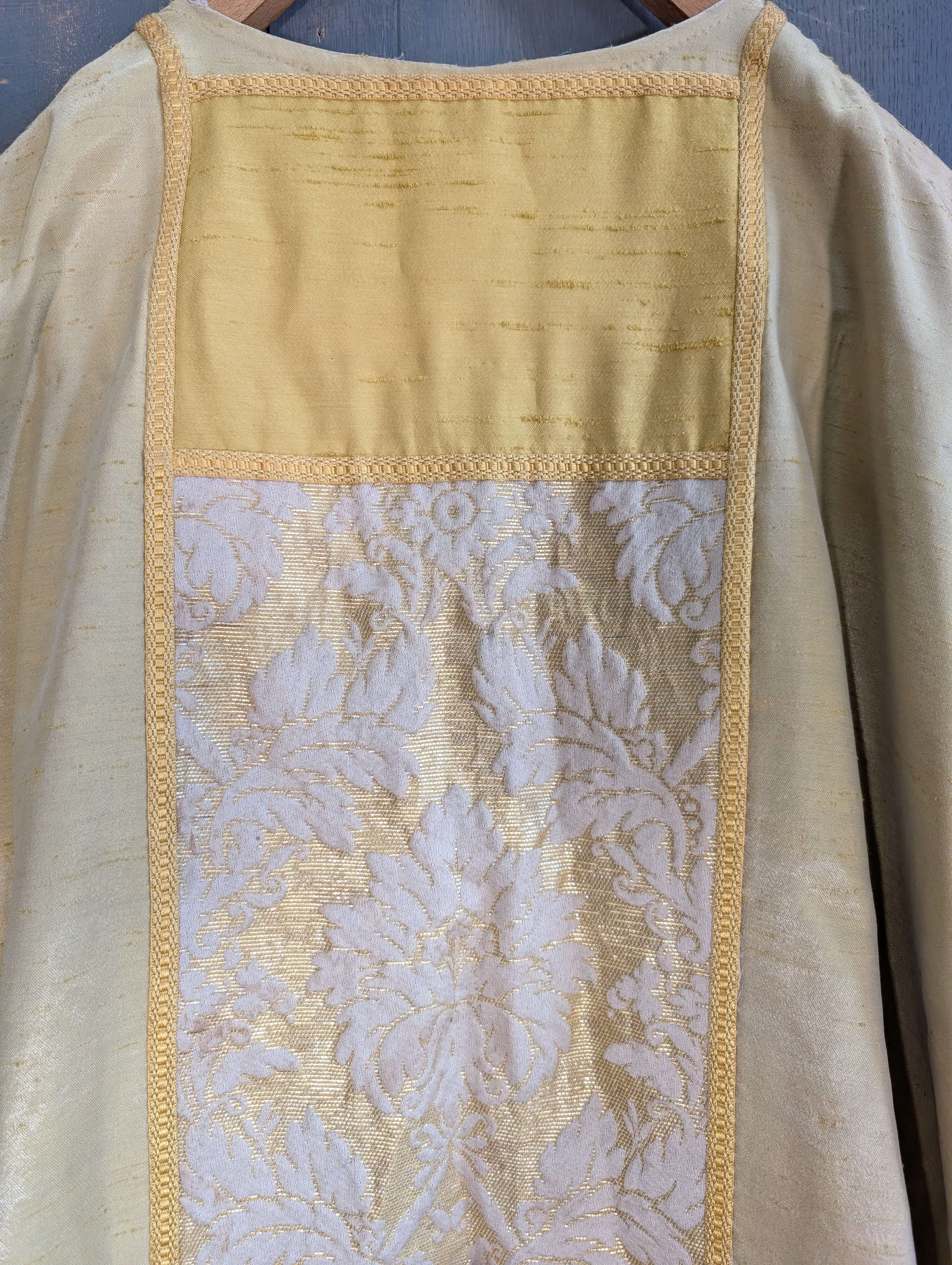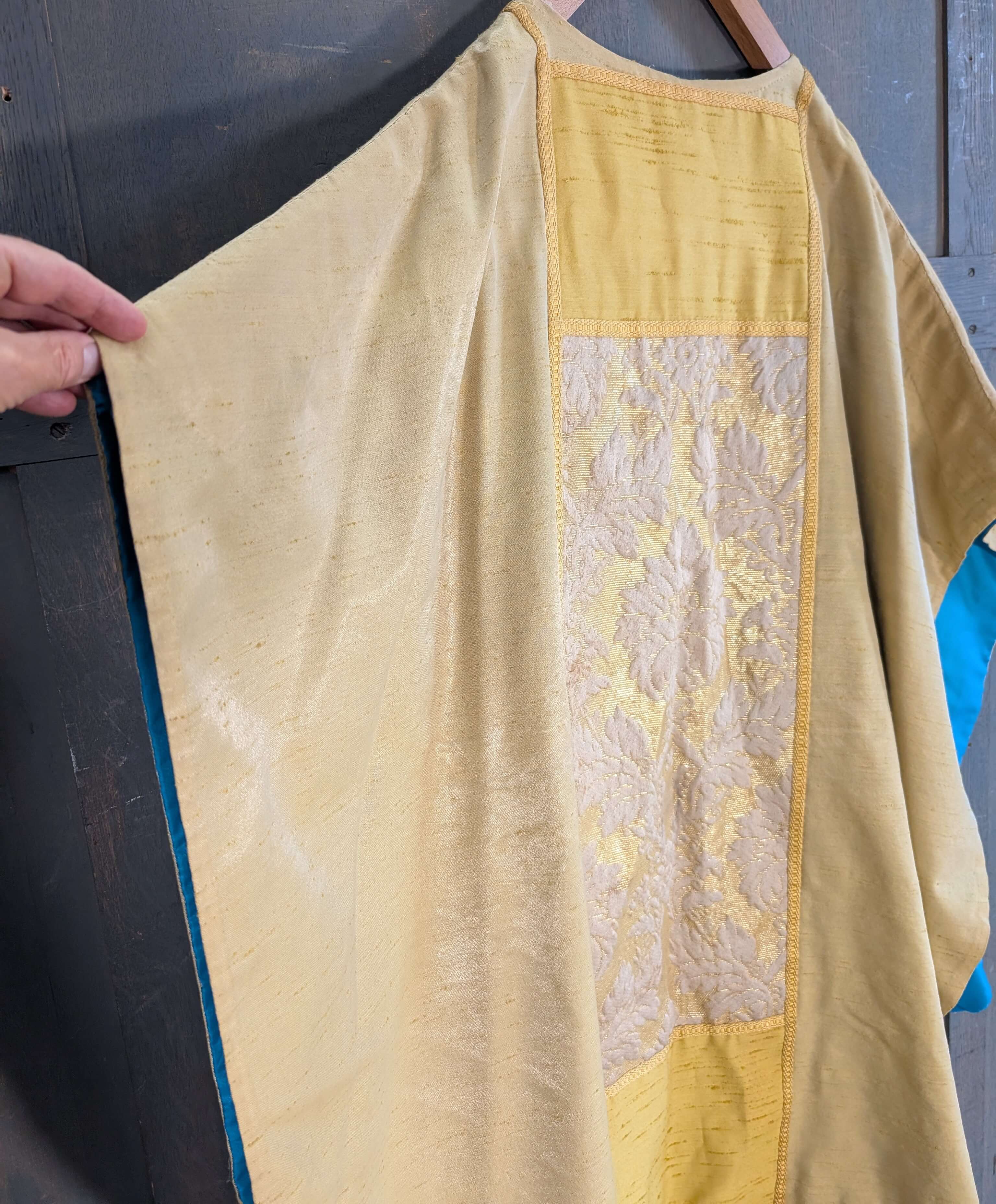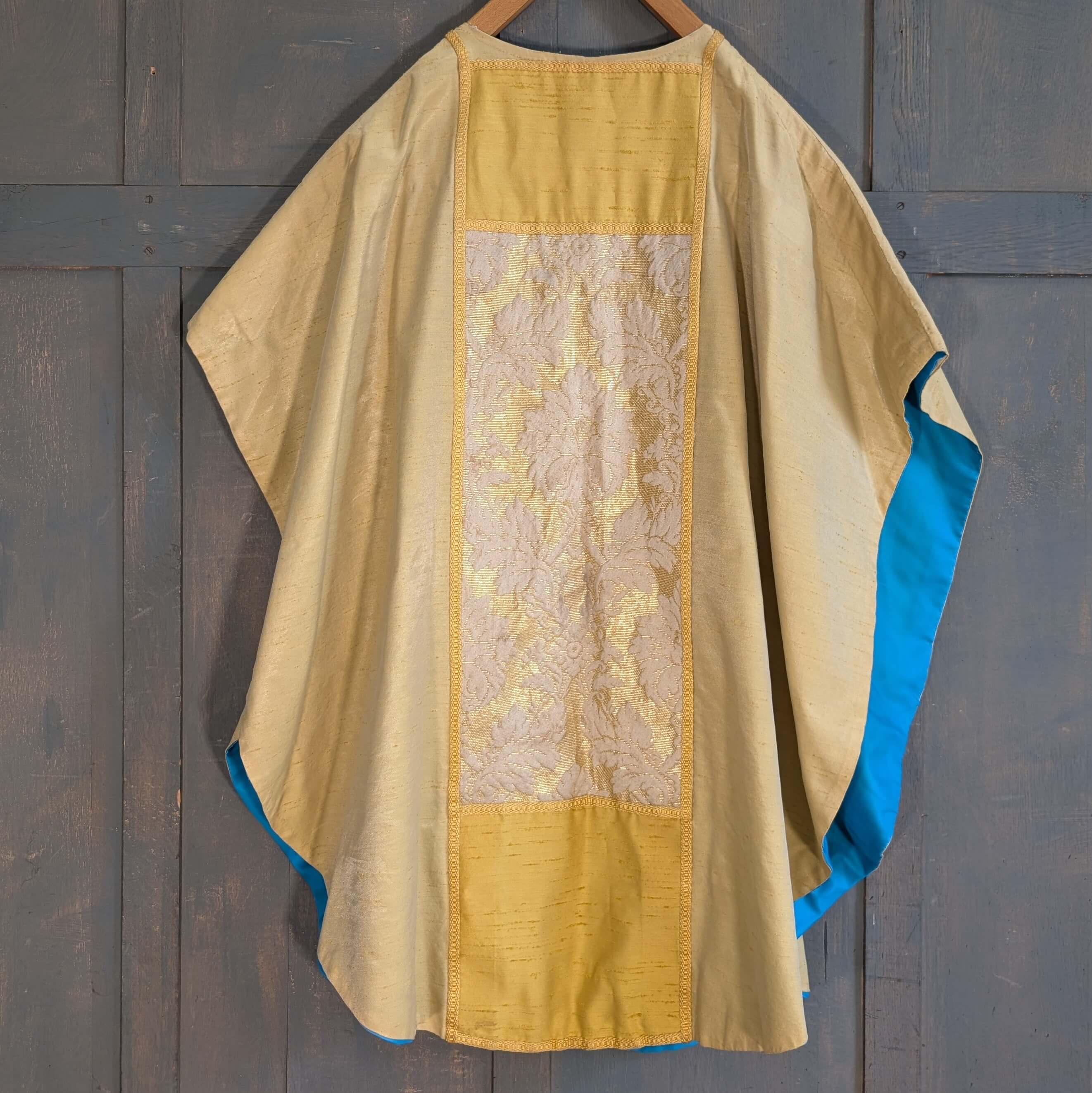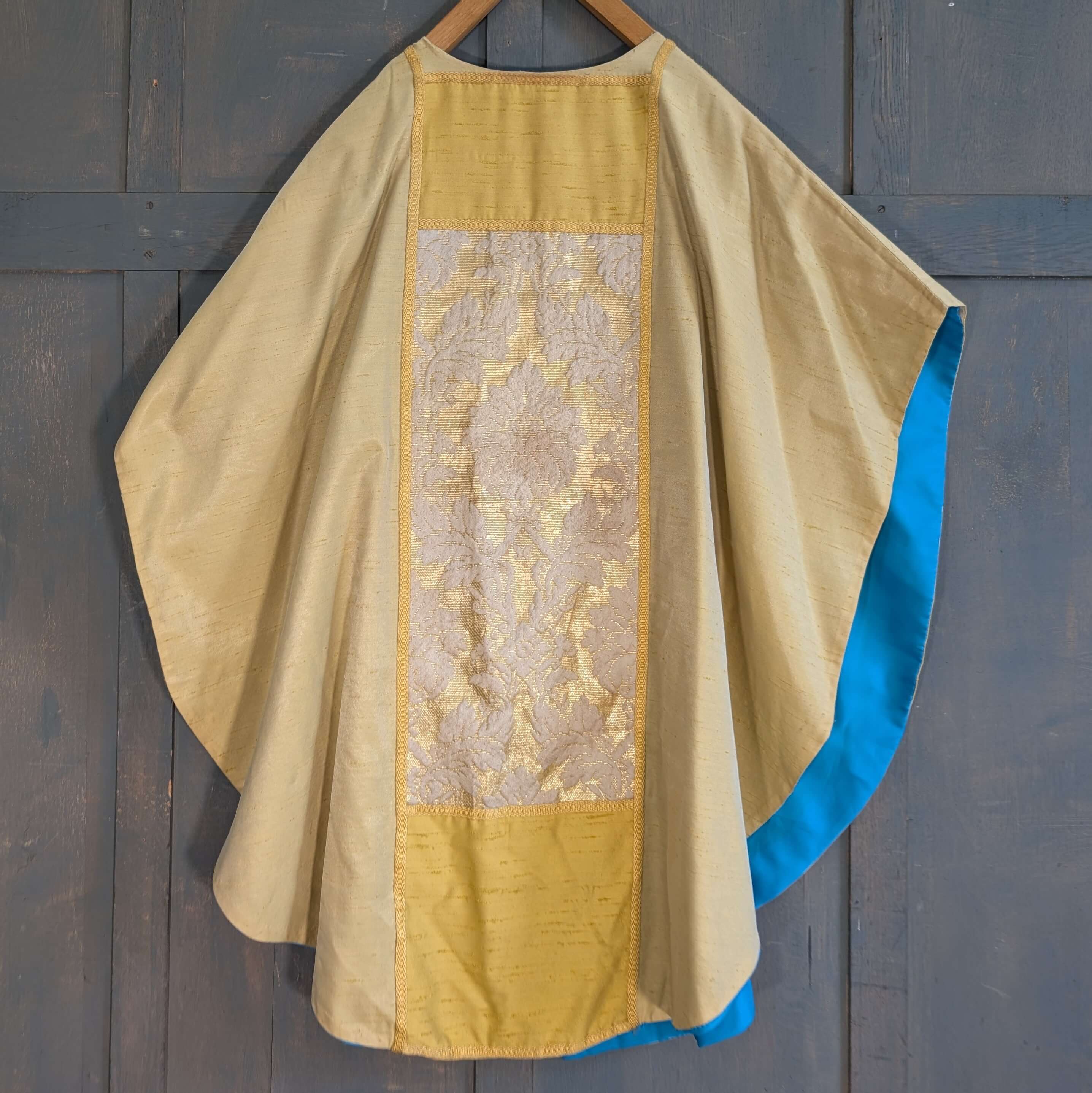Our product shown on this page Yellow & Gold Silk Contemporary Chasuble with Blue Lining is currently available for hire.